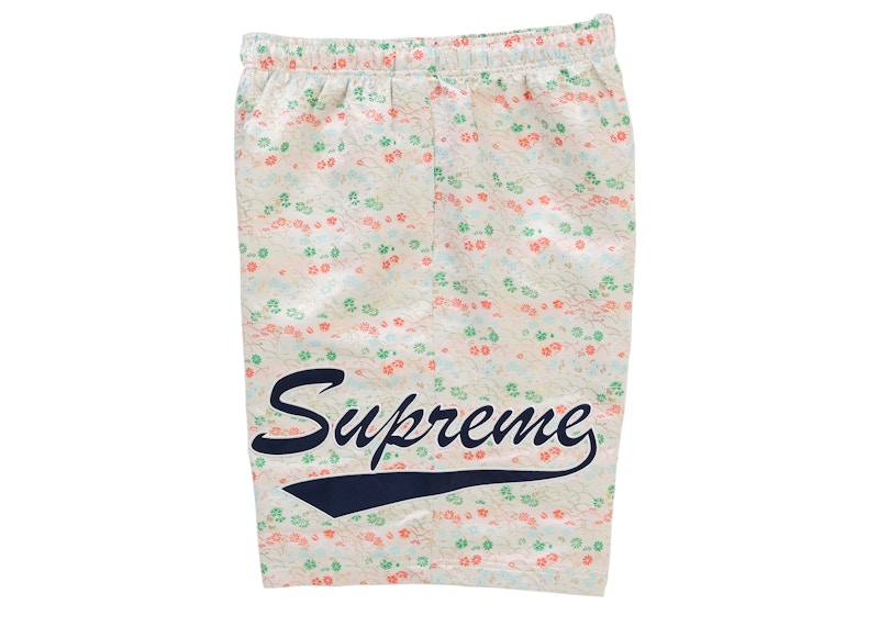 La Supreme Floral Jacquard Short White è un paio di pantaloncini della linea streetwear di Supreme, marchio noto per le sue collaborazioni uniche e i design innovativi. Questo modello, rilasciato il 26 marzo 2026, presenta un design jacquard con un motivo floreale su sfondo bianco. La stampa, caratterizzata da piccoli fiori verdi e rosa, dona ai pantaloncini un tocco estivo e fresco. La trama jacquard conferisce un look unico e texture interessante al tessuto. Sul fianco sinistro è presente un logo circolare con il numero "32", mentre sul davanti, in corrispondenza della gamba destra, campeggia il logo Supreme in scrittura corsiva nera. Questo capo è ideale per chi cerca un look estivo con un tocco di eleganza informale.