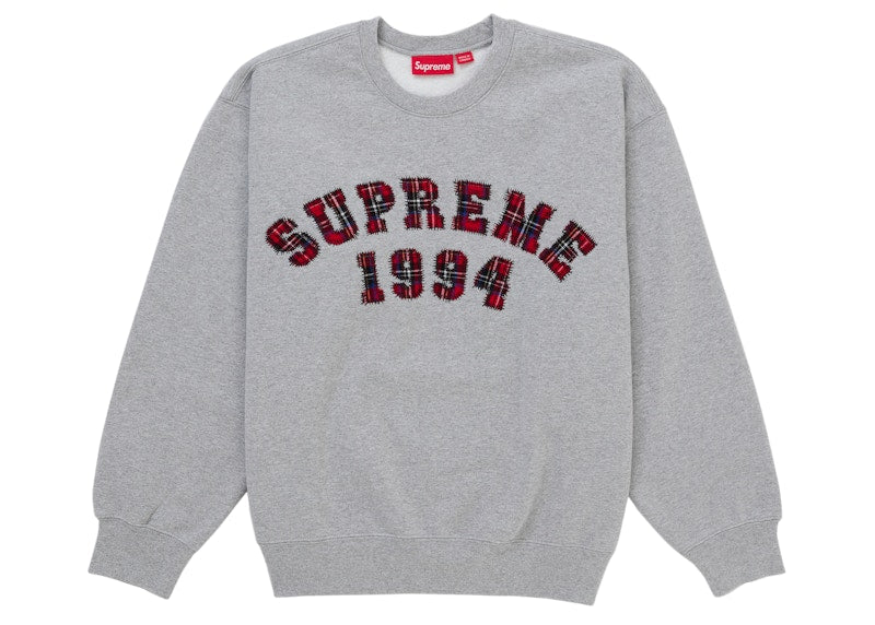 La Supreme Plaid Arc Crewneck Heather Grey è una felpa con cappuccio della collezione streetwear del marchio Supreme, prevista per il rilascio il 26 marzo 2026. Questo modello presenta un design accattivante con un motivo a quadri rossi, bianchi e neri sulla parte frontale, con la scritta "SUPREME 1994". La felpa è disponibile nella colorazione Heather Grey, un tono grigio chiaro che si abbina bene con vari stili. Costruita con materiali di qualità, garantisce comfort e durata, rendendola ideale per l'uso quotidiano.