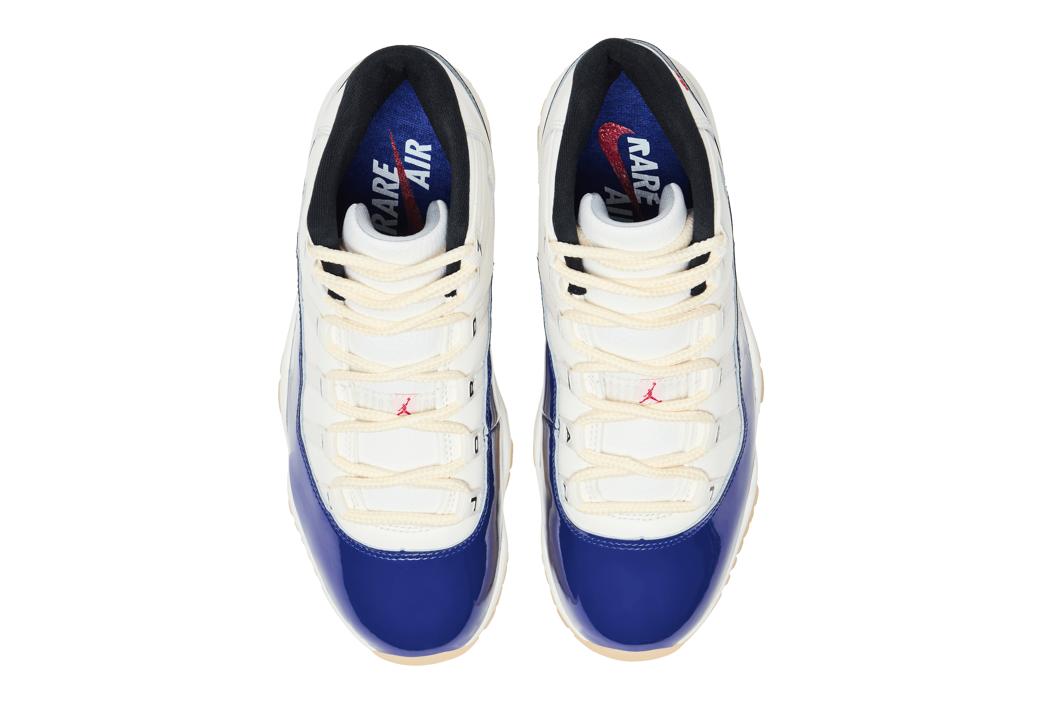La Air Jordan 11 Retro Rare Air (2025) torna con un mix di stile e eredità. Vestita in blu reale, rosso fuoco, sail, nero e mussola, la caratteristica principale è il parafanghi in pelle lucida blu reale, che la distingue dalle altre versioni della AJ11. La parte superiore in pelle bianca classica offre un contrasto pulito, mentre le inserzioni rosse fuoco e la suola trasparente con tonalità di mussola aggiungono un tocco vintage. Presenta dettagli unici come la scritta "JORDAN" sulle linguette e richiami stilistici ai prototipi, rendendola un must per gli appassionati di design e della storia Jordan.