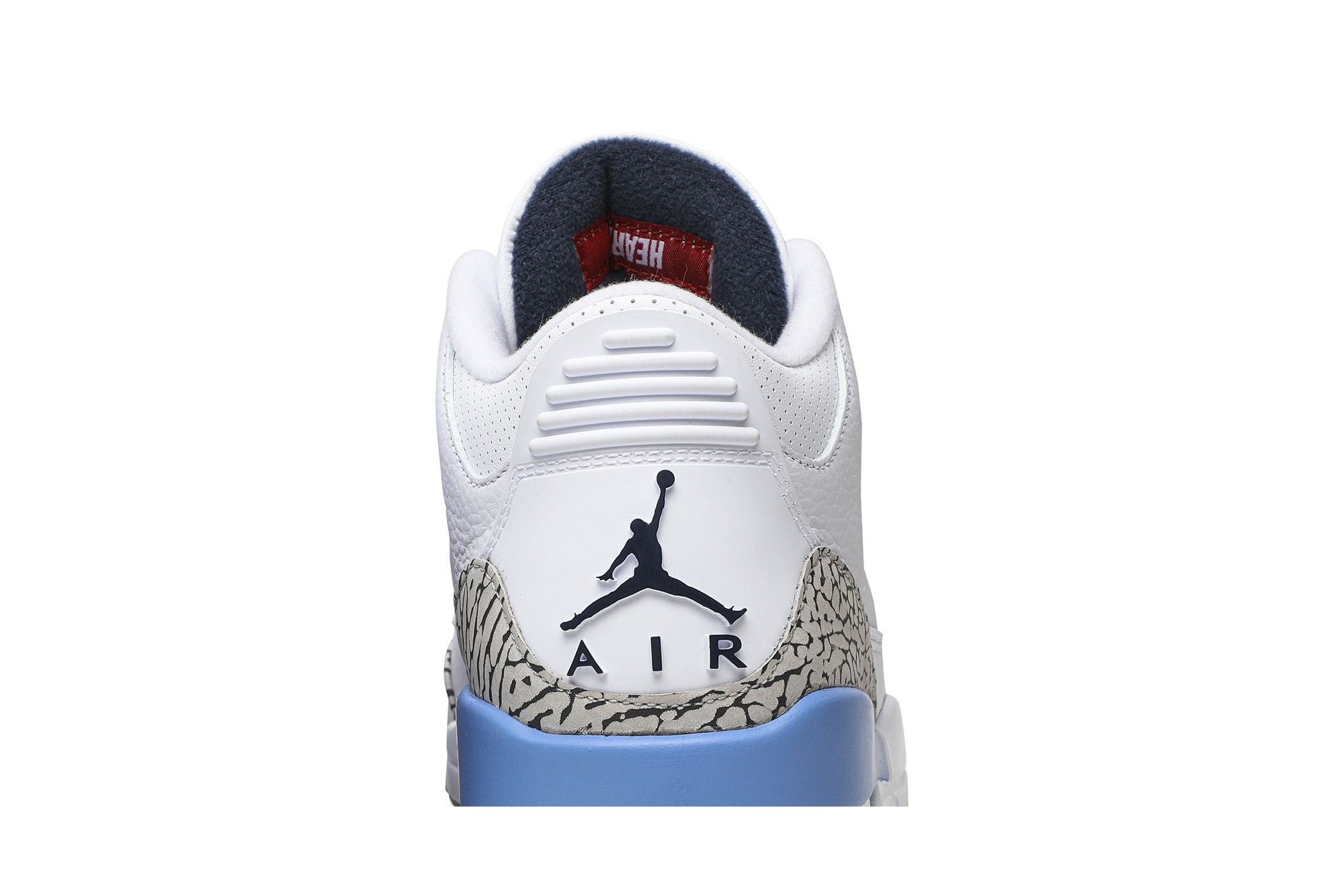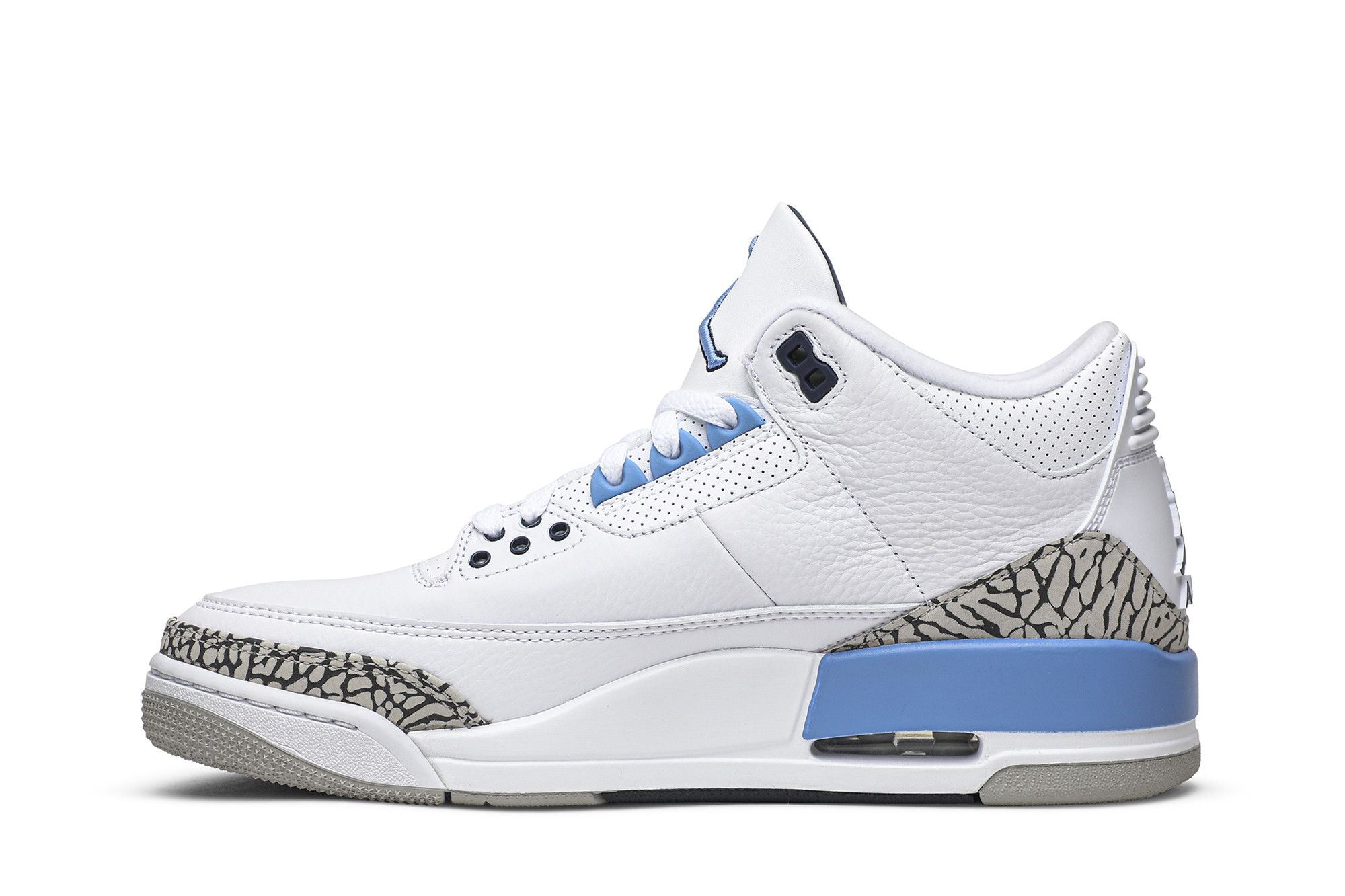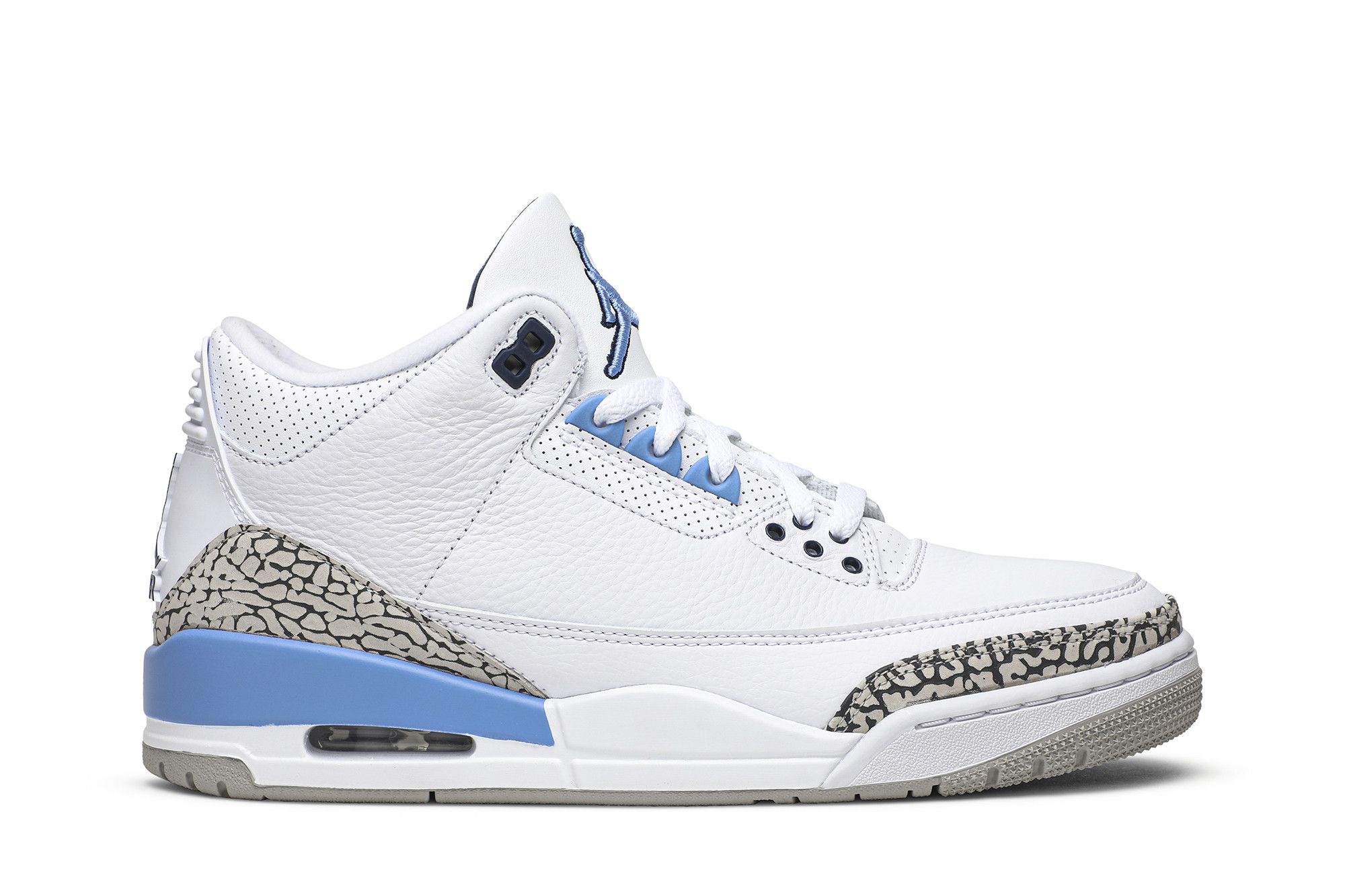 La Jordan 3 Retro UNC è un omaggio alla carriera universitaria di MJ, caratterizzata da un'unione di stile e prestazioni. Questa colorazione esclusiva, inizialmente creata per gli atleti dell'Università della Carolina del Nord, presenta un'upper in pelle bianca lavorata con inserti grigi in stile "elephant print" e dettagli in blu valor. La calzatura è completata da un tallone in gomma bianca, un'unità Air visibile e una suola grigia. La Jordan 3 Retro UNC è un capolavoro di design che combina eleganza e tecnologia.