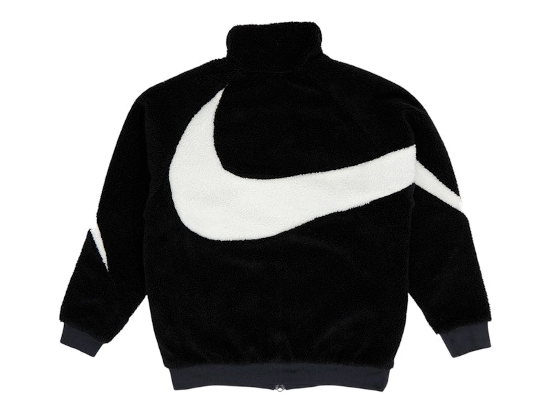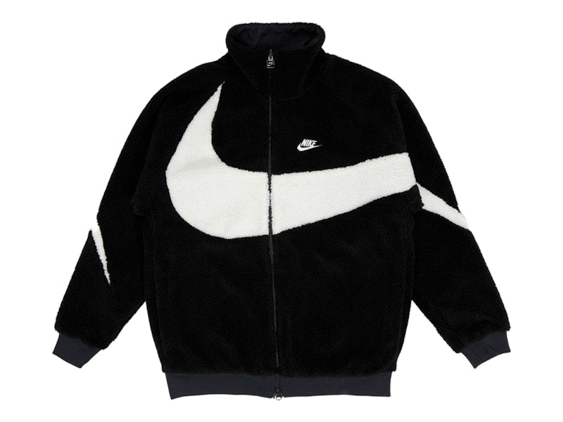 La Nike Big Swoosh Reversible Boa Jacket Asia Sizing Black White è una giacca unisex dalle molteplici funzionalità. Realizzata con materiale foderato per trattenere il calore, presenta un grande logo Nike su tutto il corpo di un colore diverso rispetto al resto della giacca. La parte interna è composta al 100% di nylon, mentre la parte esterna è costituita dall'83% di poliestere e dal 17% di acrilico.