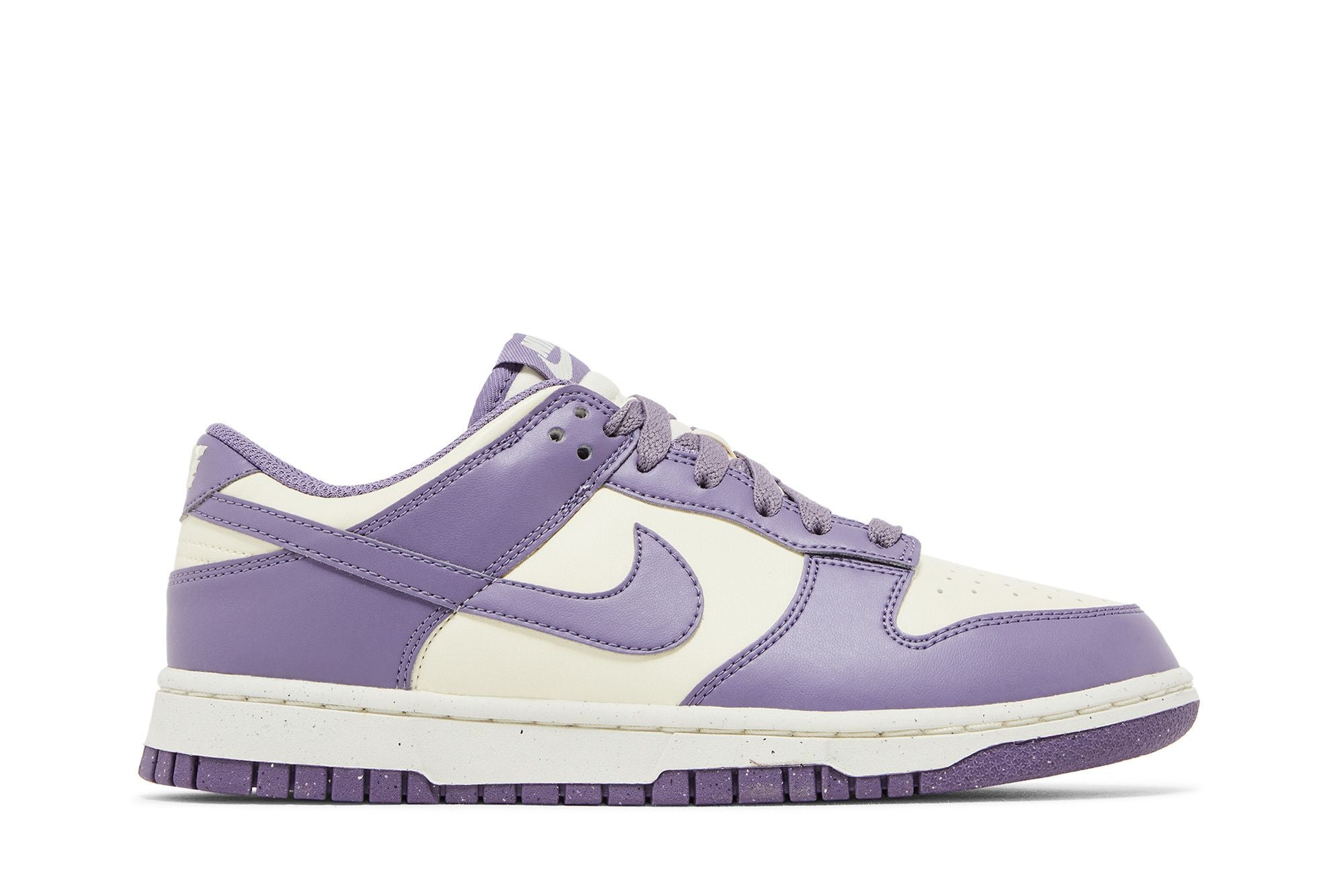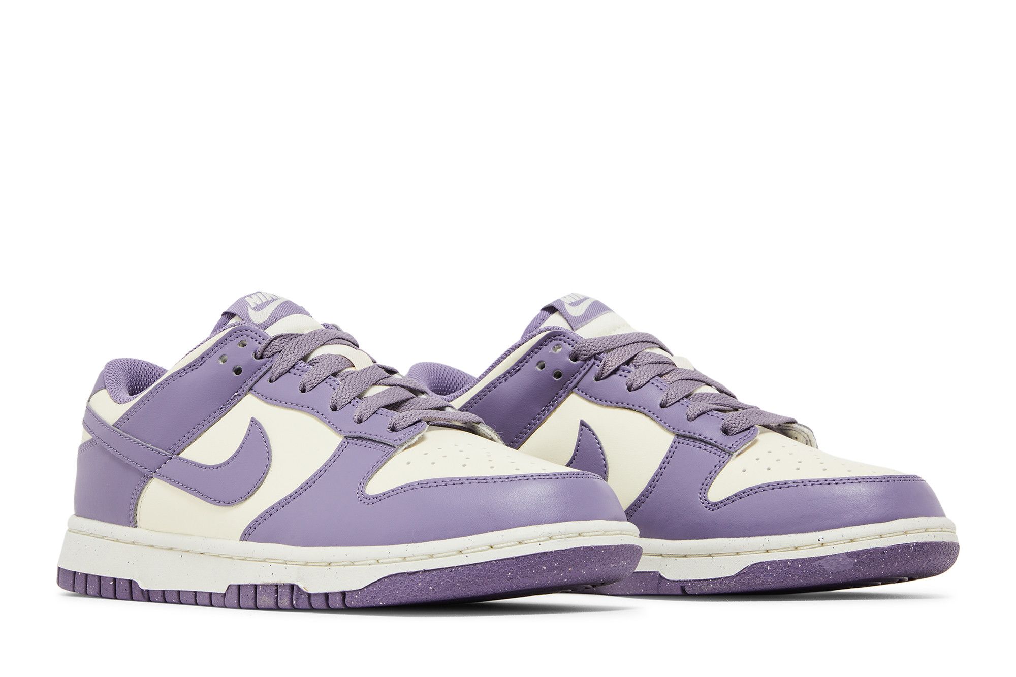 Dieser Dunk Low Next Nature Daybreak weist ein Farbblocking in Weiß und Lila auf. Es verfügt über eine weiße Lederbasis mit lila Overlays, Swooshes, Schnürsenkeln und Gummilaufsohlen. Weiß setzt sich auf den Zungen, der Zwischensohle und dem Nike-Branding fort, um das Design zu vervollständigen. Alle Spezifikationen finden Sie unter Nike