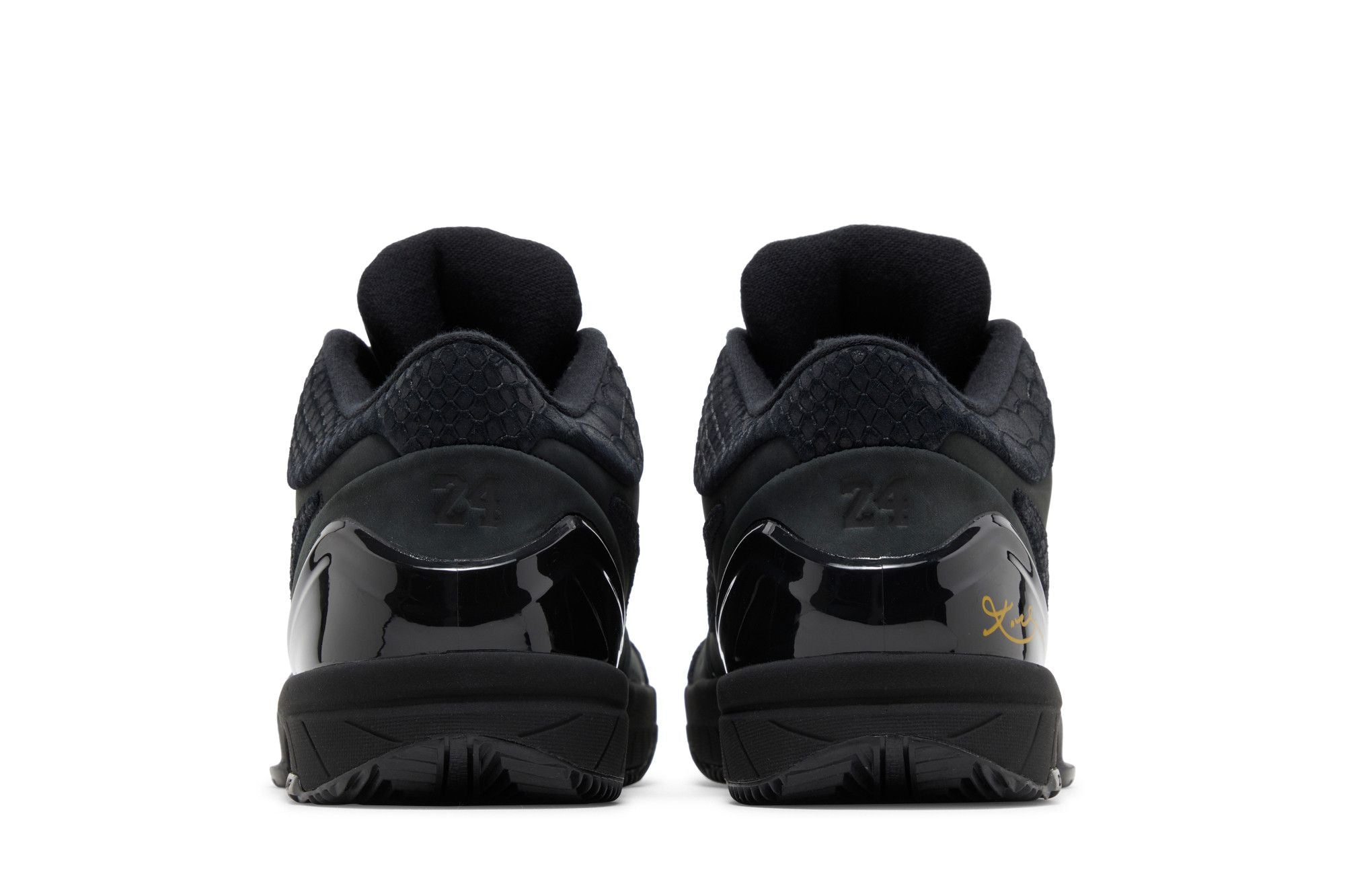 La Nike Kobe 4 Protro Gift of Mamba si distingue per il suo colore nero/oro universitario, che combina lusso e prestazioni. La sua parte superiore è realizzata in camoscio nero leggero, abbinata a un motivo di finta pelle di serpente sulla parte posteriore, sul collo e sulla Swoosh, aggiungendo un tocco di eleganza e stile. Il design è un tributo a Kobe Bryant, con il suo logo iconico e la sua firma in oro universitario per un effetto regale. La controferma del tallone presenta il numero "24" in rilievo, simbolo dell'eredità di Kobe. La Nike Kobe 4 Protro Gift of Mamba è una vera esperienza di stile e prestazioni.