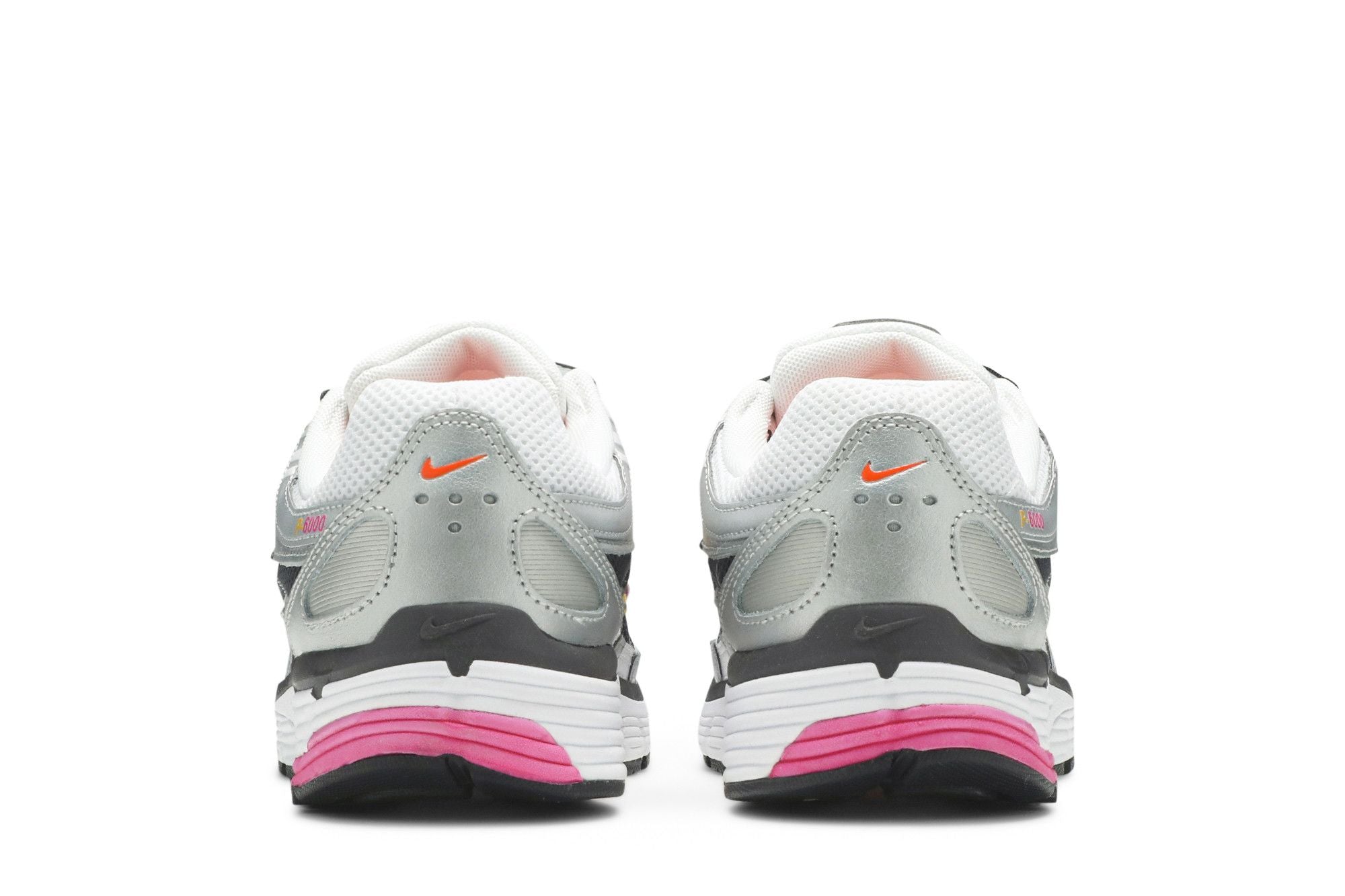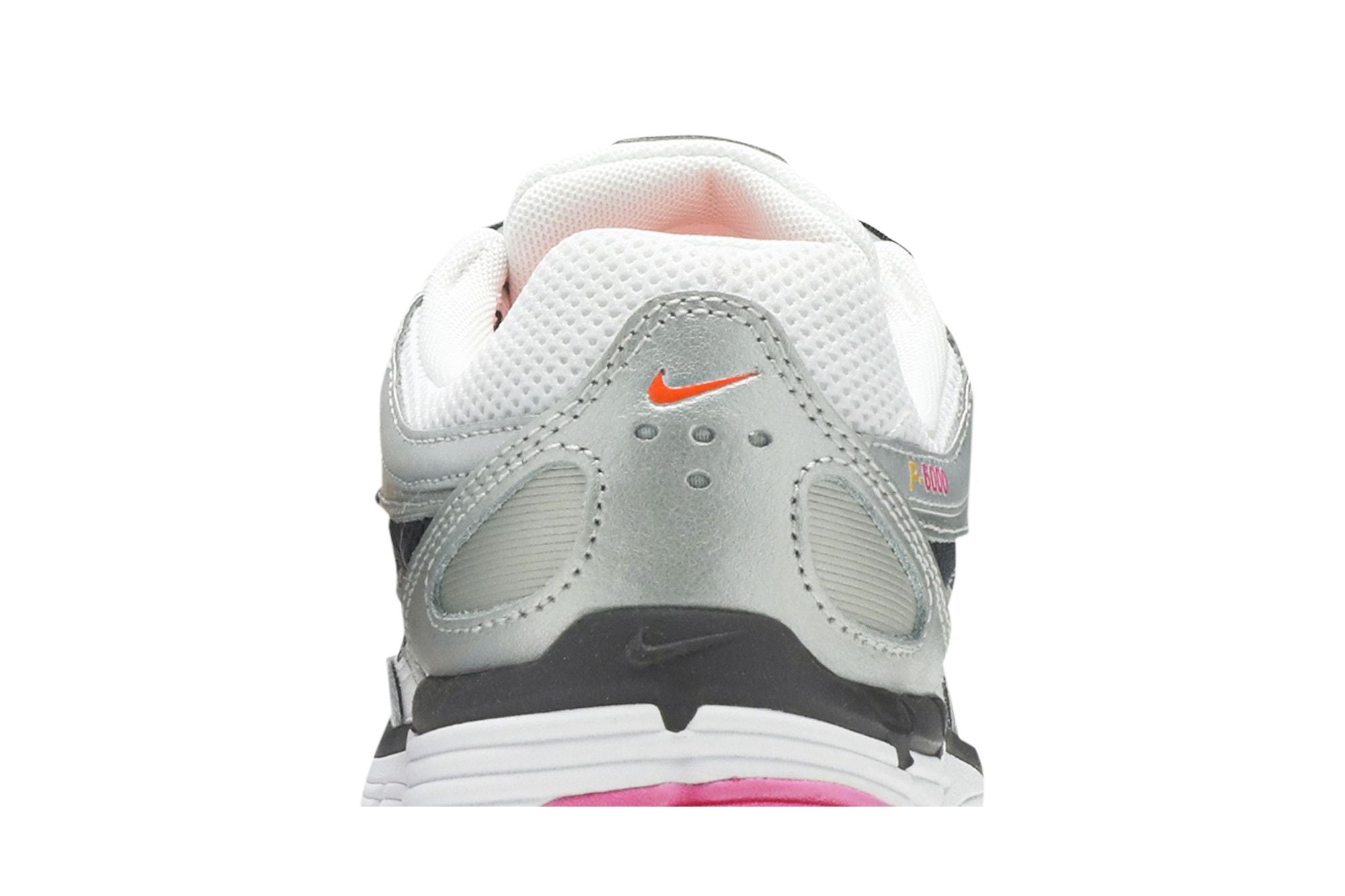 La Nike P-6000 Laser Fuchsia è un'esclusiva edizione caratterizzata da un tema tricromatico con vivaci accenti arancioni e rosa. La parte superiore è realizzata in mesh con inserti in pelle che aggiungono interesse visivo al design, mantenendo la struttura leggera e traspirante. La mesh grigia è abbinata a inserti in pelle bianchi e argentati metallici, con alcuni accenti scuri che accentuano l'effetto di contrasto. La tecnologia di ammortizzazione nella suola intermedia in schiuma offre un'ammortizzazione mirata e un migliore assorbimento degli impatti ad ogni passo.