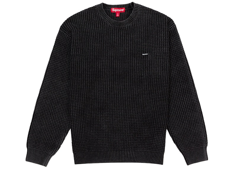 La Supreme Washed Small Box Waffle Sweater Black è un capo di abbigliamento della categoria streetwear, caratterizzato da un design waffle e una texture unica. La maglia è realizzata in materiale di alta qualità e presenta un colore nero uniforme. Sul davanti, è presente un piccolo logo Supreme. La data di rilascio di questo modello è il 26 marzo 2026.