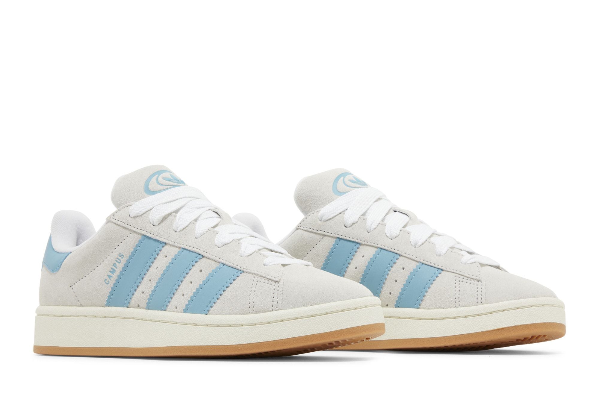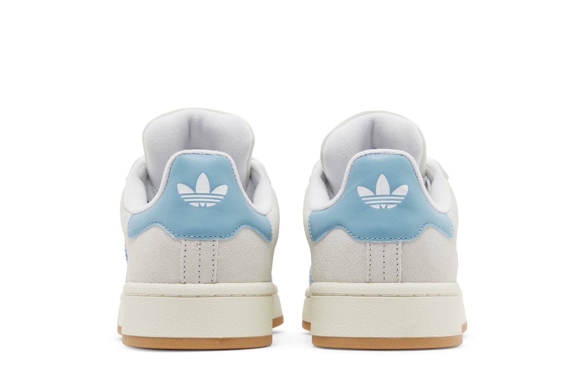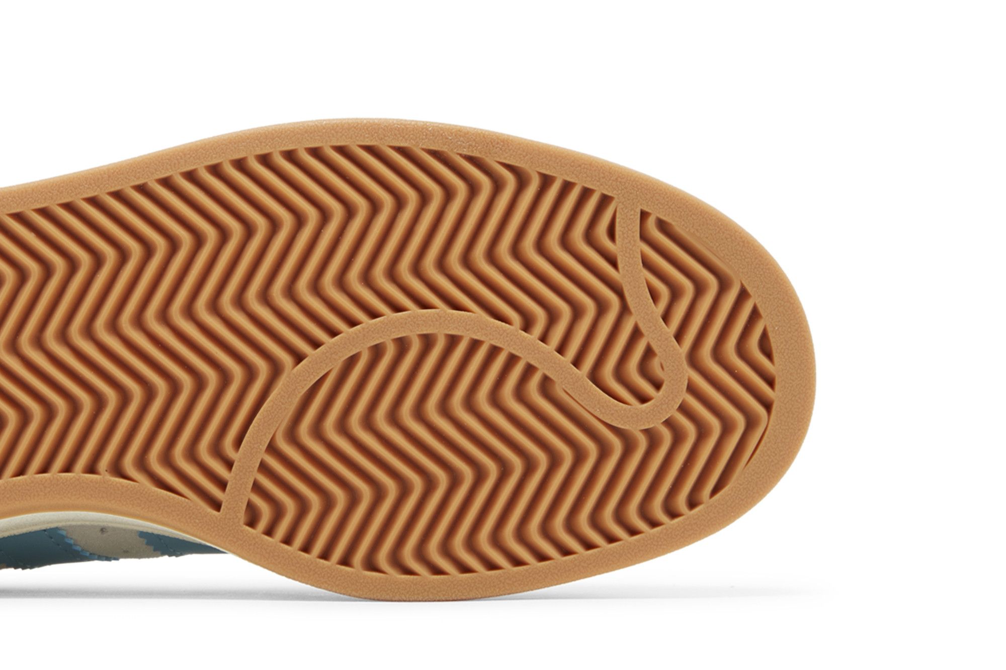 The Adidas Campus 00s Crystal White Preloved Blue features a grey suede base, accompanied by three thick blue leather stripes on the side panel, characteristic of the brand and combined with the heel tab. Close to the Campus 80s, this model also reveals a yellowed sole, to accentuate the vintage effect, accompanied by a rubber sole. Check the product specifications on Adidas