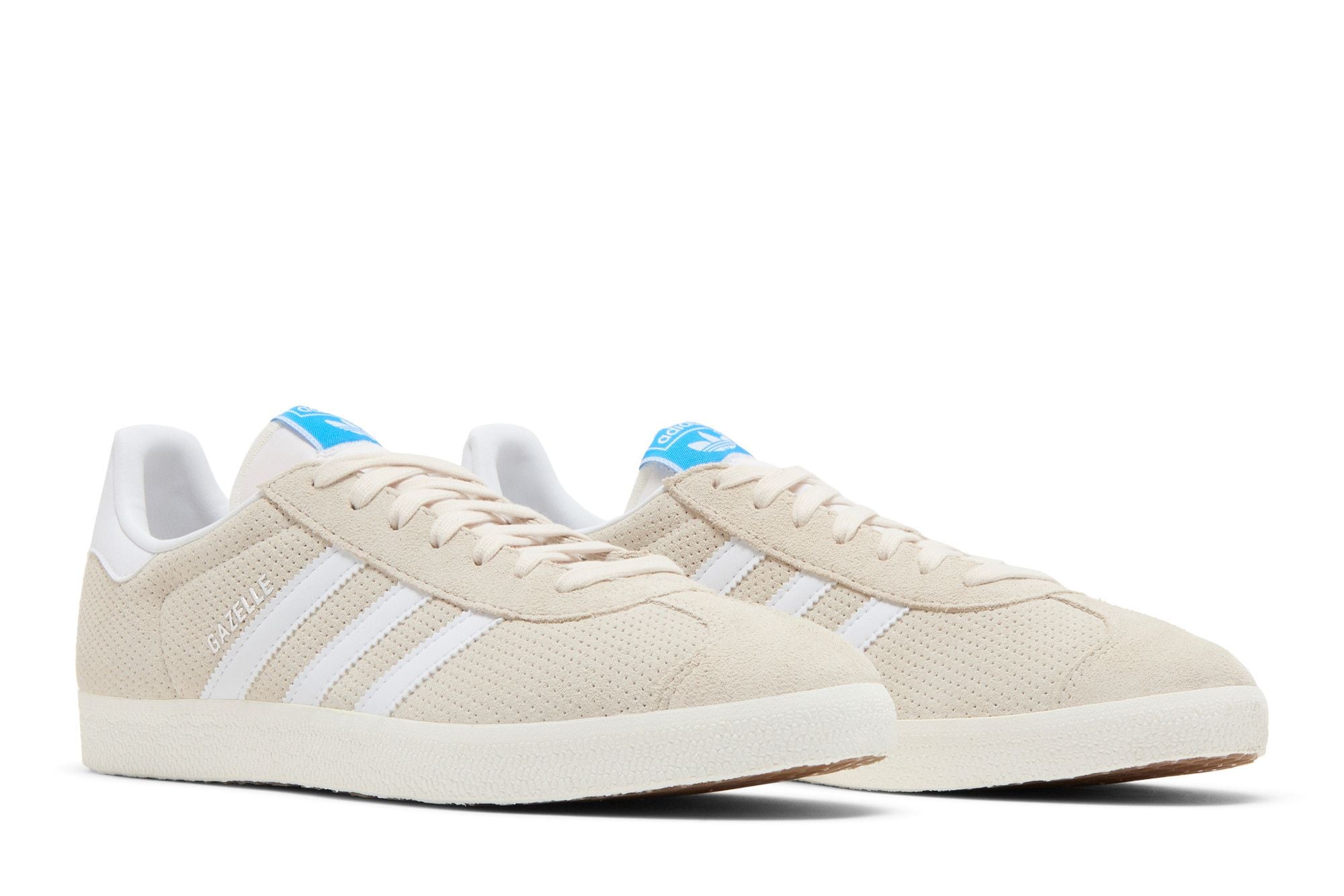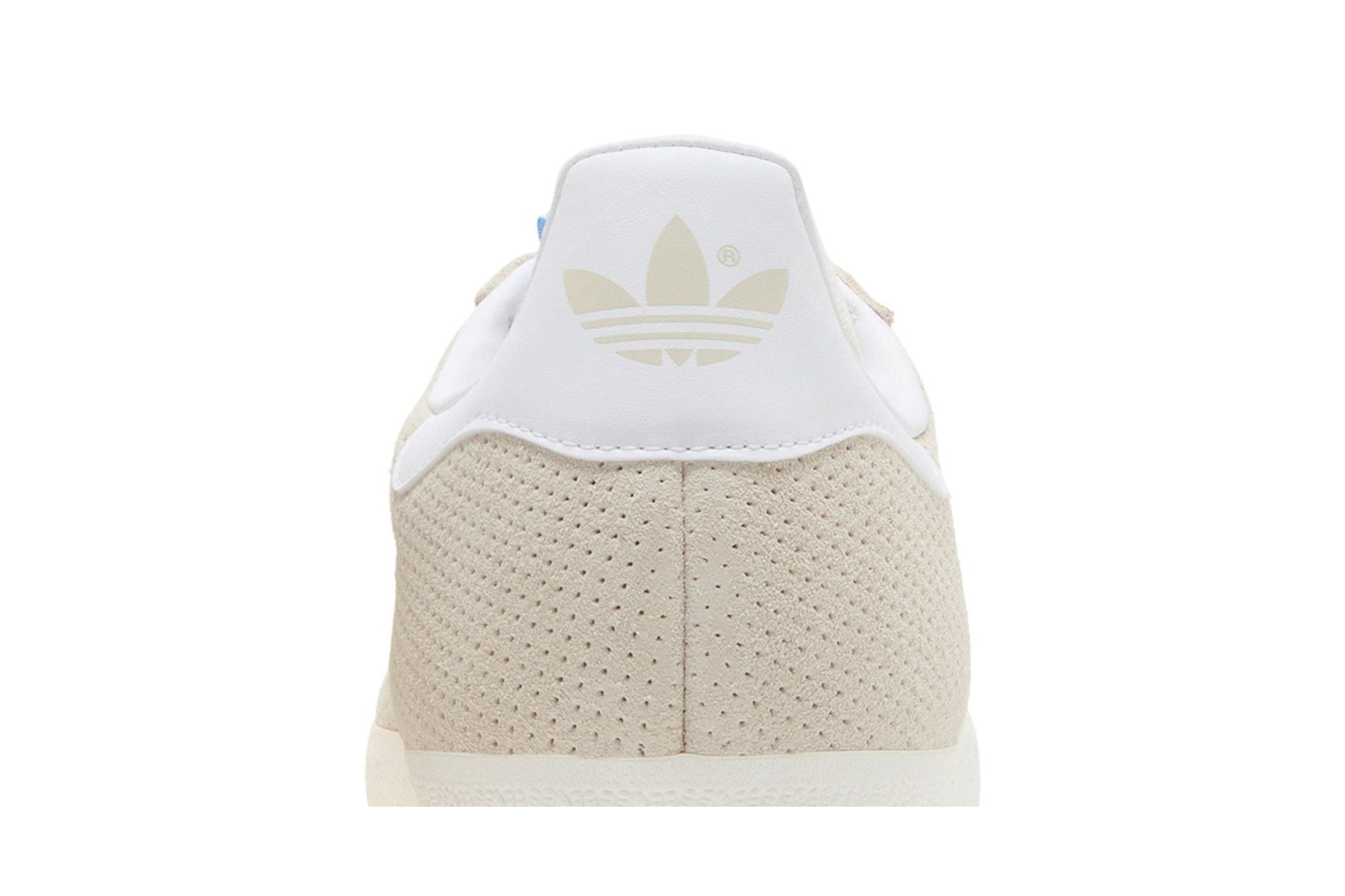 The adidas Gazelle Wonder White is a sneaker with clean, minimalist lines. Made of beige synthetic material, it features three white side stripes and a white outsole. The back of the shoe is embellished with a white insert and a light blue detail. The adidas Gazelle Wonder White is an elegant and versatile choice for those seeking a casual look.