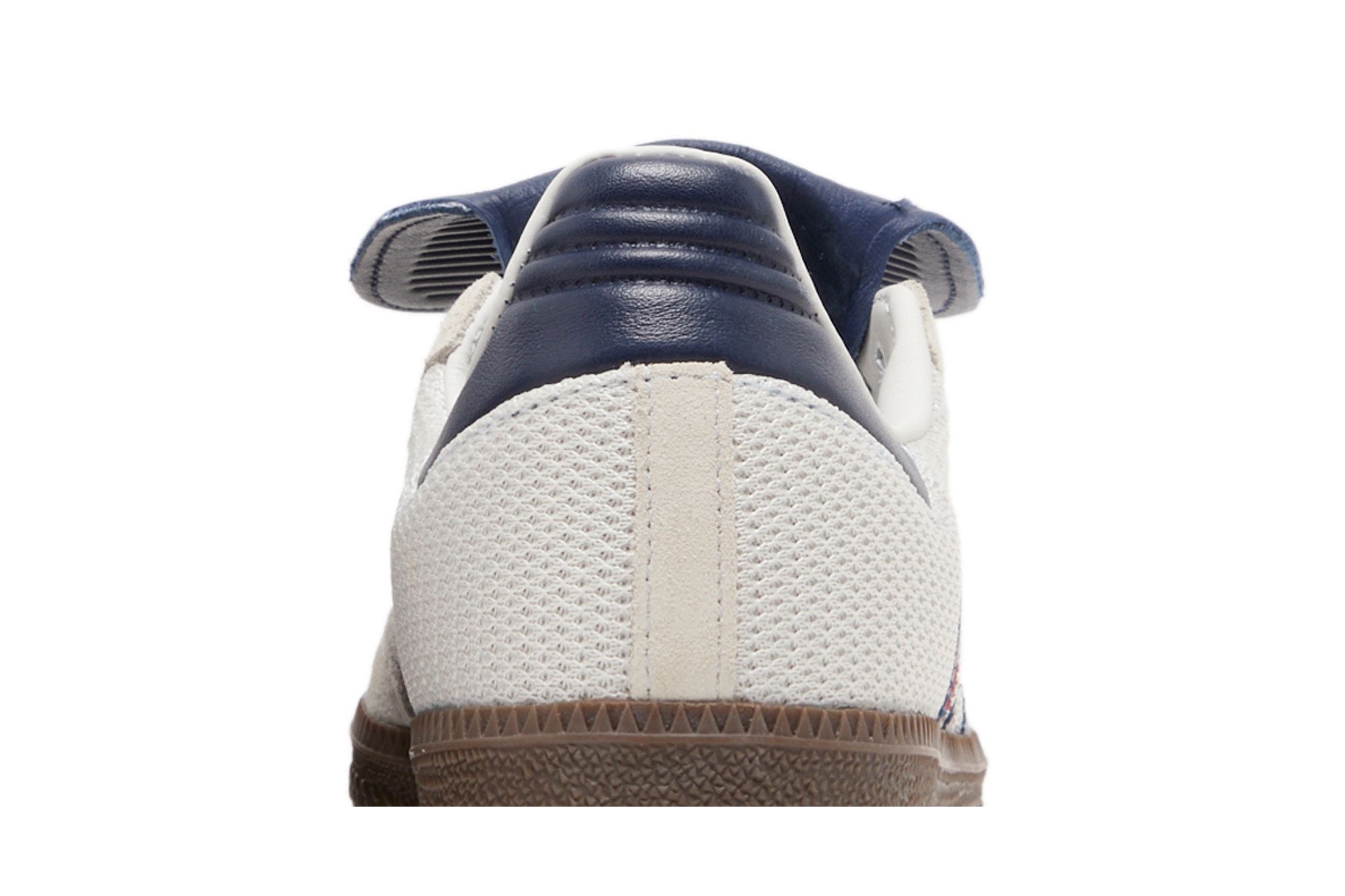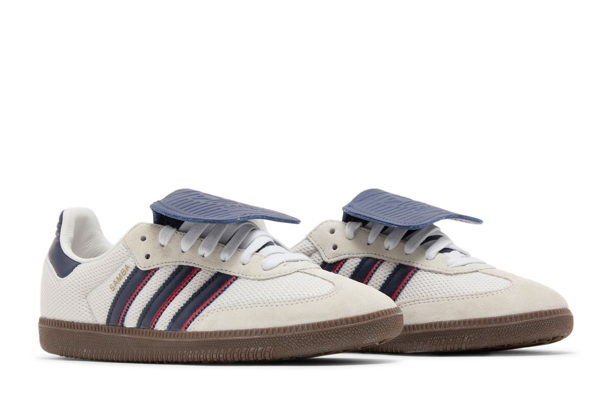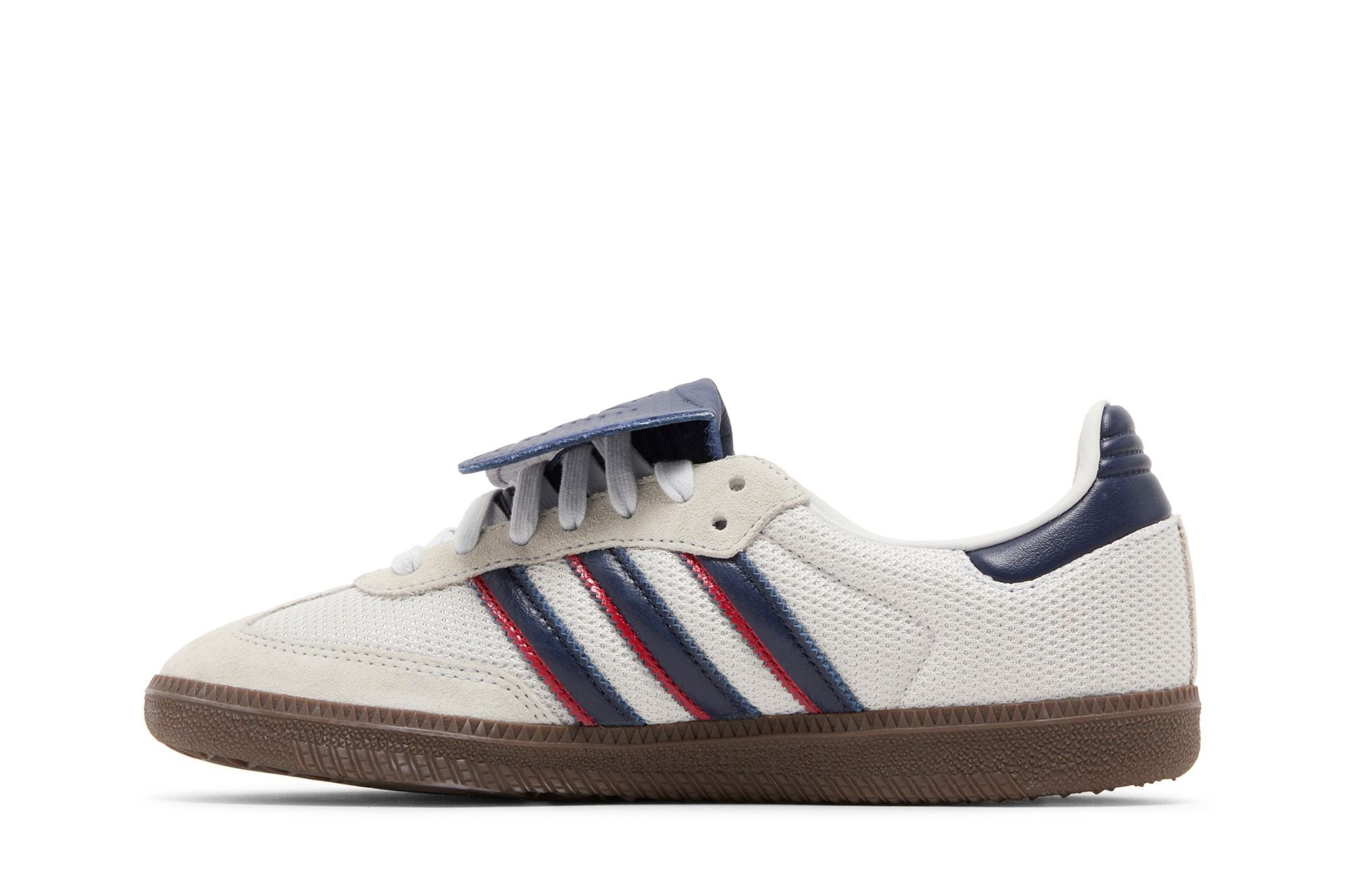The Adidas Samba LT Crystal White Dark Blue Gum are decorated with a white mesh upper accented with suede details and the three stripes in dark blue, embellished with red touches. The brown rubber sole guarantees optimal grip and comfort, perfect for the everyday use. The retro design is complemented by a dark blue fold-over tab, which adds a unique touch.