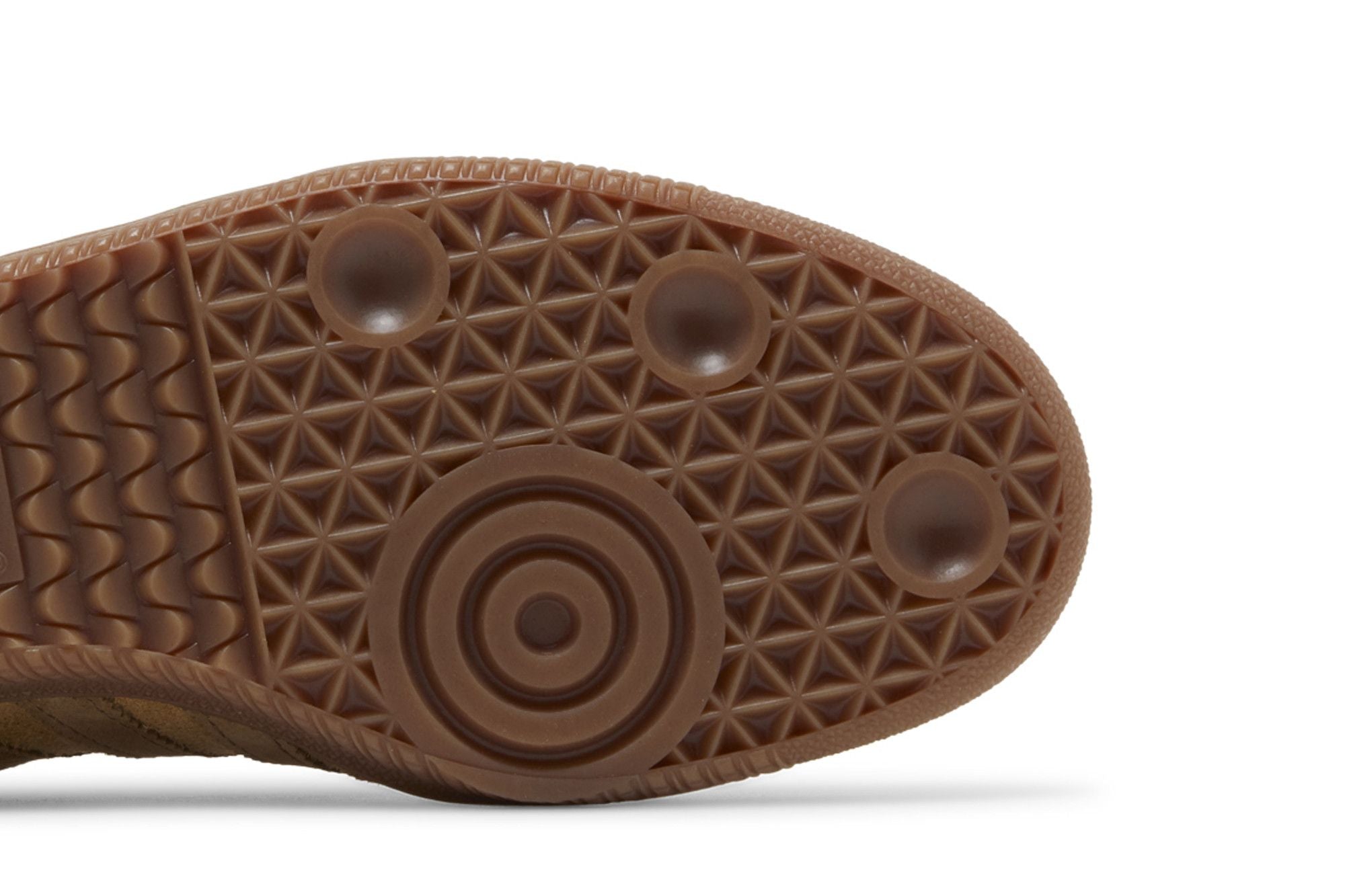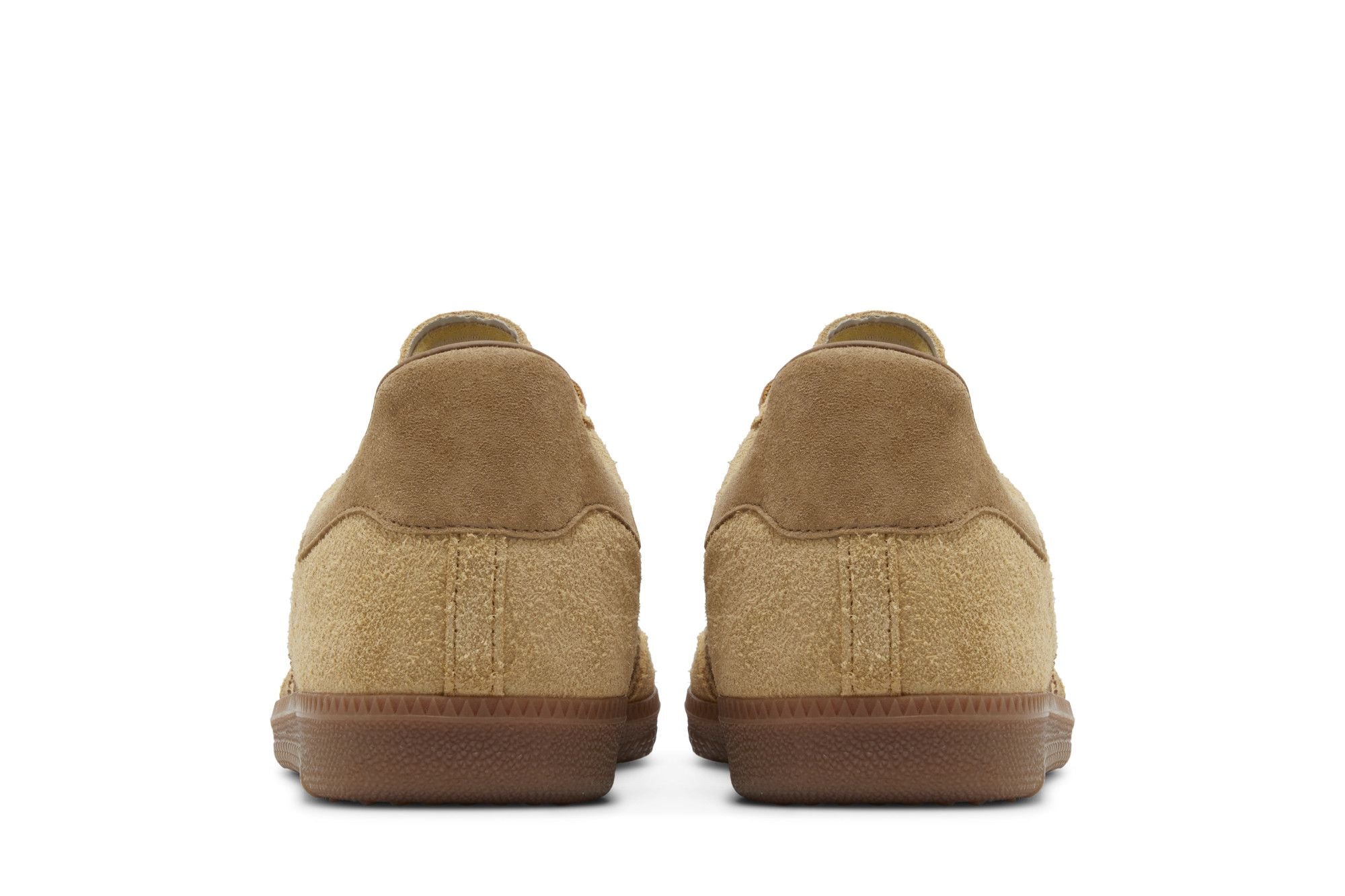 These Adidas Samba OG JJJJound Mesa feature a light brown furry suede upper, while the rubber sole ensures optimal grip. The iconic three stripes and tonal details add a sophisticated touch to the silhouette.