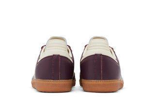 The Adidas Samba OG Maroon Gold Metallic features a metallic burgundy leather base, with a burgundy suede stripe on the underside. Gold details such as the "Samba" logo on the side panel and white Adidas three stripes add a distinctive touch to the upper. Finally, a rubber outsole completes the design. Check out the product specifications on Adidas
