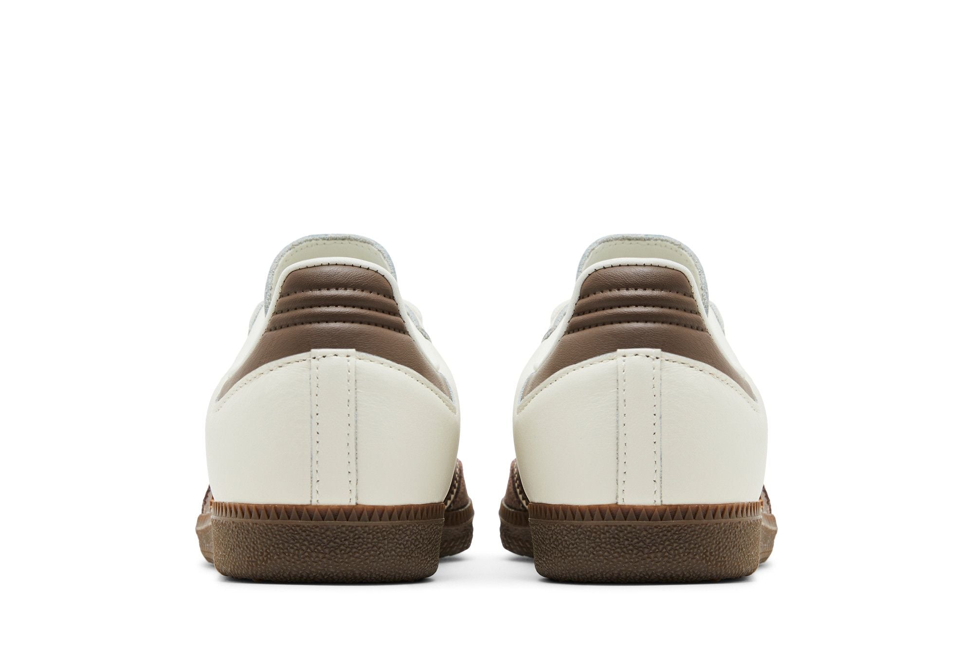 The adidas Samba OG Off White Earth Strata reimagines the iconic Samba design with a natural color palette and premium details. The upper is crafted from off-white leather, accented with brown suede overlays at the toe for a refined, textured look. Serrated Earth Strata 3-Stripes on the sides add depth to the design, while a black printed “Samba” logo adds a distinctive touch. The heel features a brown leather reinforcement with embossed details, completing the sneaker’s vintage aesthetic. A signature Samba rubber outsole provides durability and traction, making this shoe perfect for both everyday wear and casual, elevated style.