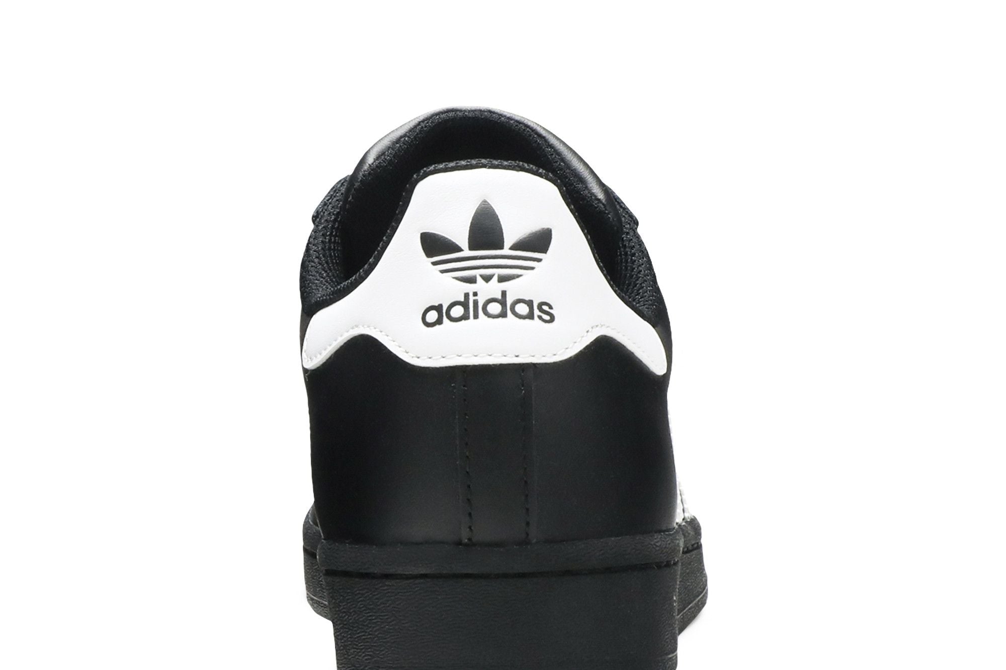 La adidas Superstar Core Black Cloud White Gold è caratterizzata da un design slip-on con una combinazione di colori nero e bianco. Presenta una costruzione con un design a "conchiglia" e una linguetta di trazione sul tallone. Sono presenti elementi di branding, tra cui i dettagli delle 3 strisce dentellate adidas e il logo sulla scatola Superstar. Sulla lingua sono presenti dettagli dorati. La parte superiore in elastane offre una vestibilità aderente, mentre la suola in EVA presenta profonde scanalature per una maggiore flessibilità. L'interno è dotato di un inserto OrthoLite, mentre la suola in gomma fornisce aderenza.