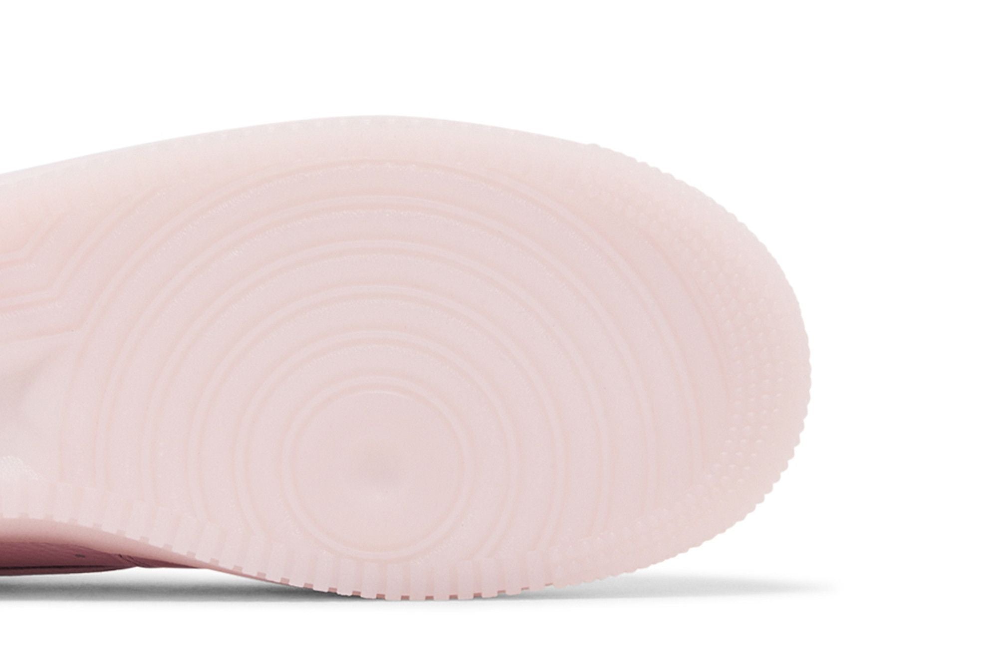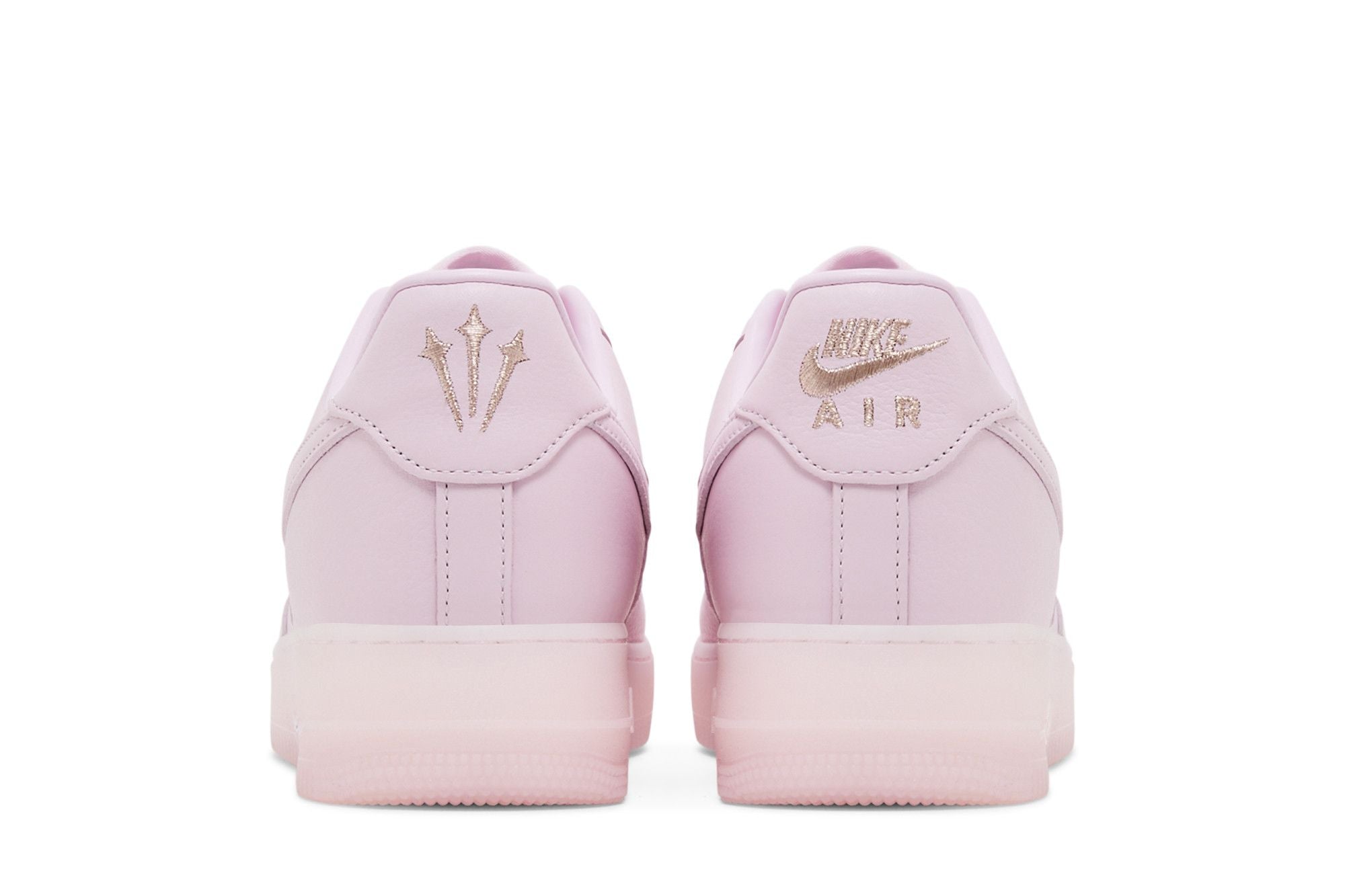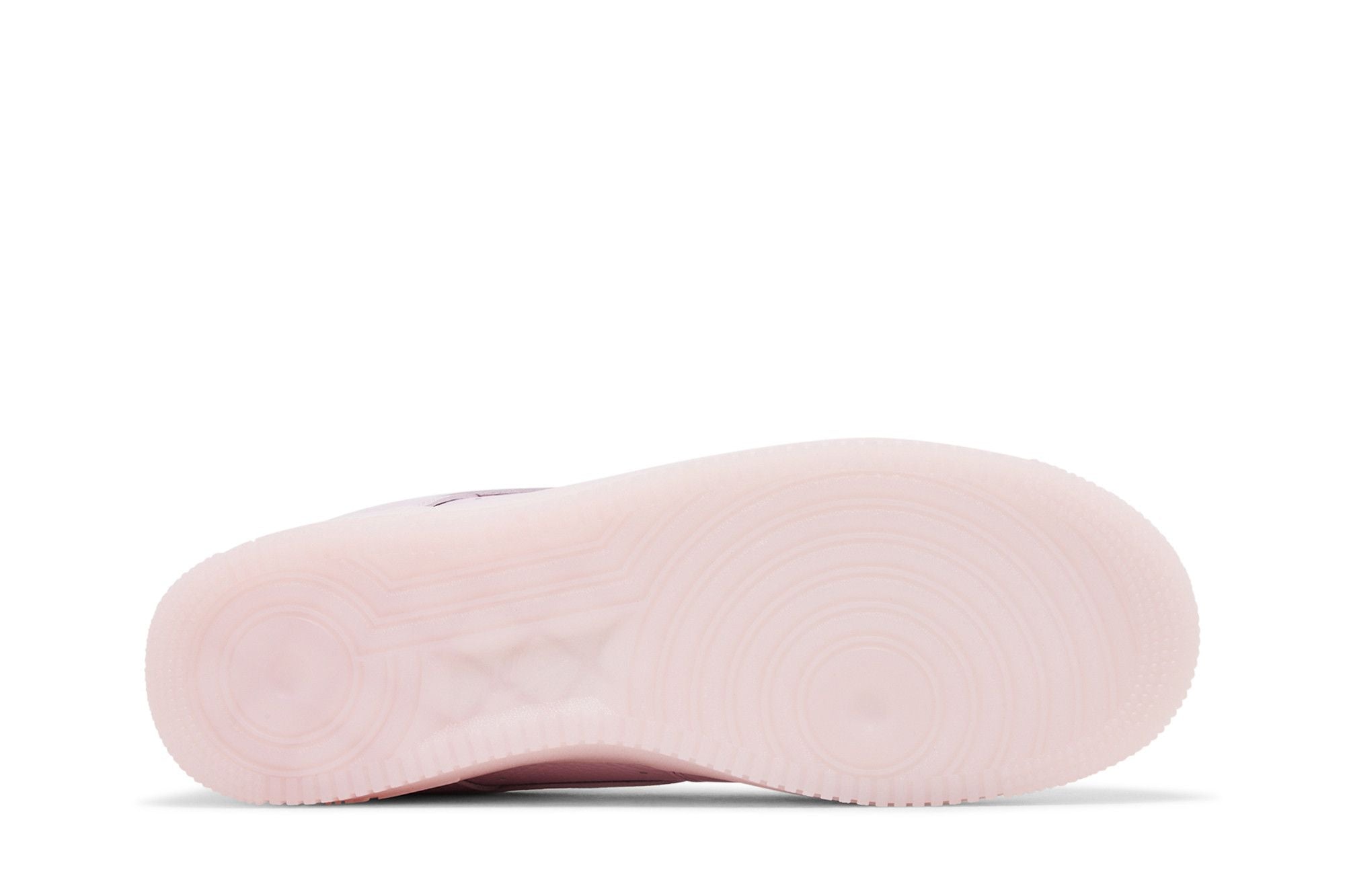 The NOCTA x Nike Air Force 1 Low 'Certified Lover Boy - Pink Foam' dresses the classic silhouette in soft tumbled leather in a pastel pink hue, enriched with Cobalt Tint details on the Swoosh and heel. Nike Air branding appears on the right shoe, while the NOCTA North Star logo decorates the left. The phrase Love You Forever is debossed on the midsole, while the rubber outsole replaces the traditional stars with embossed hearts, emphasizing the romantic theme of this exclusive collaboration.