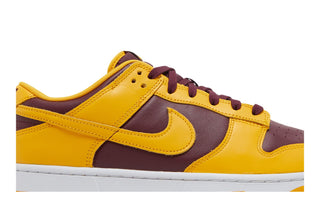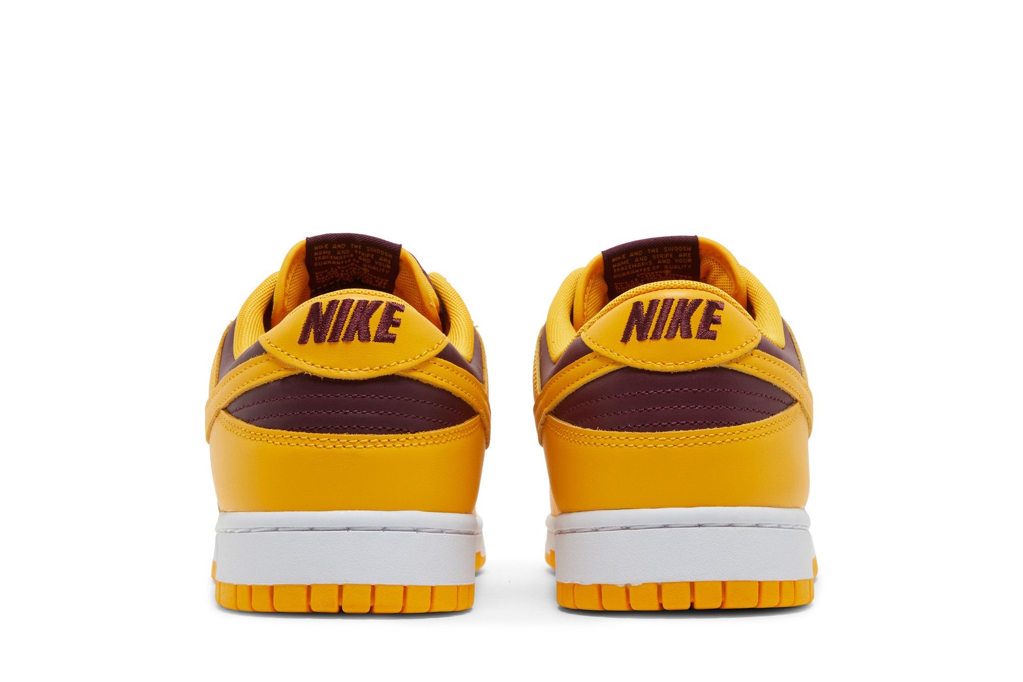 The Nike Dunk Low Arizona State features a burgundy leather base with yellow leather overlays. The color code refers to Arizona State University, located in the city of Tempe. One of the most iconic universities uses this color for its logo but also for the clothes of its athletes. See all the specs on Nike .