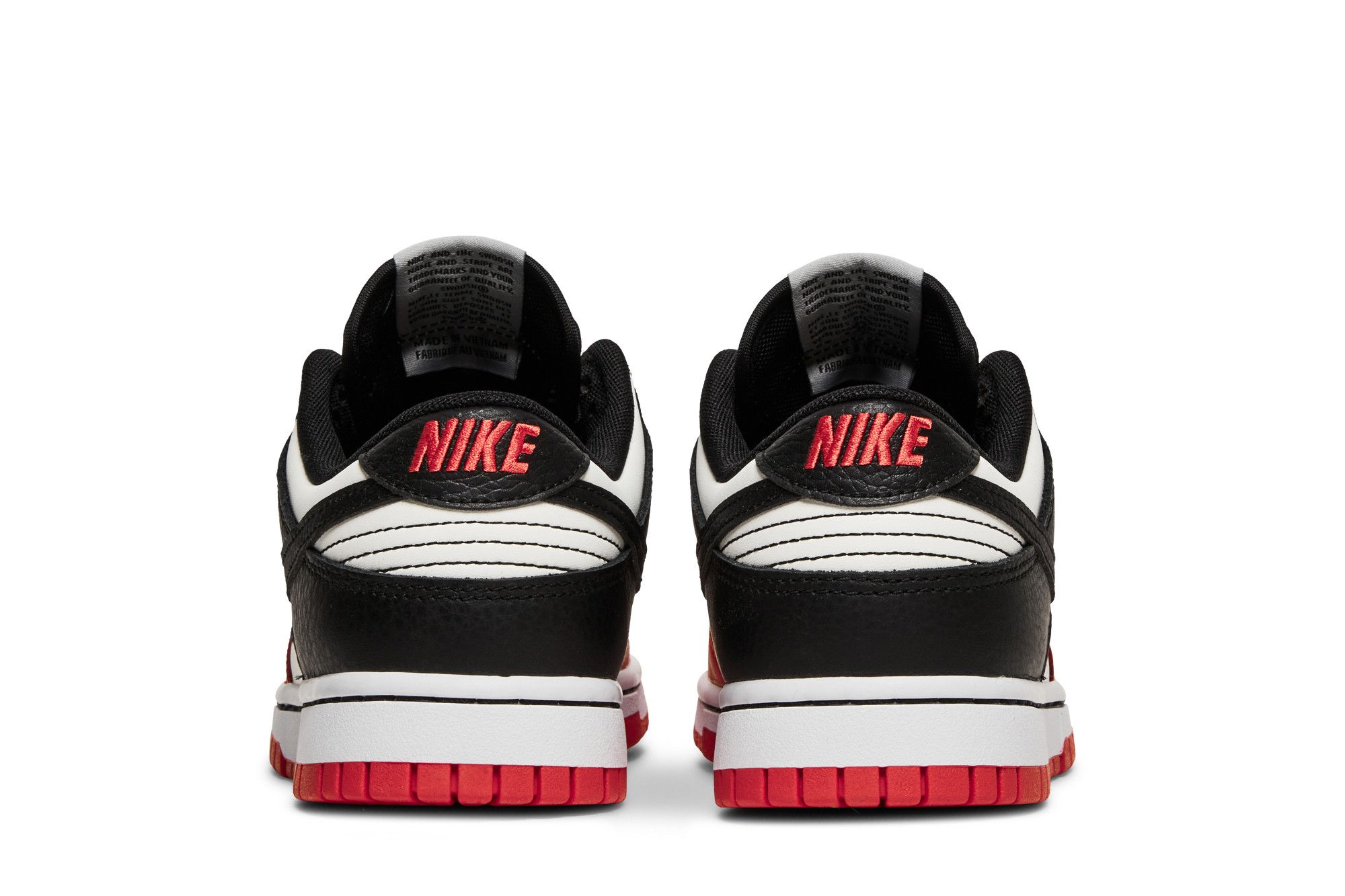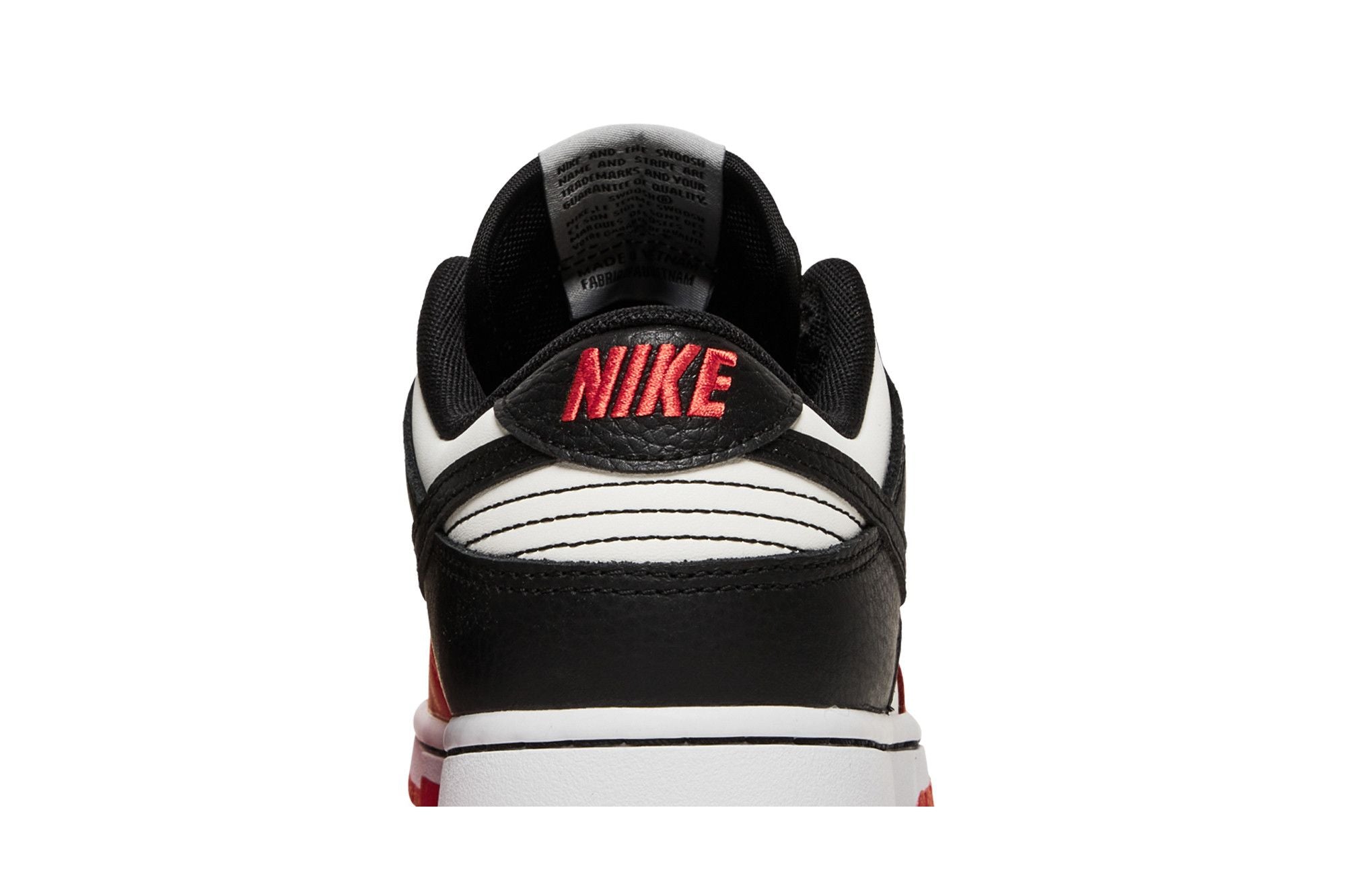The Nike Dunk Low Chicago features a Sail leather upper with a Red toe cap and Black overlays. From there, a commemorative NBA logo woven tongue and matching outsole completes the design. See all the specs on Nike
