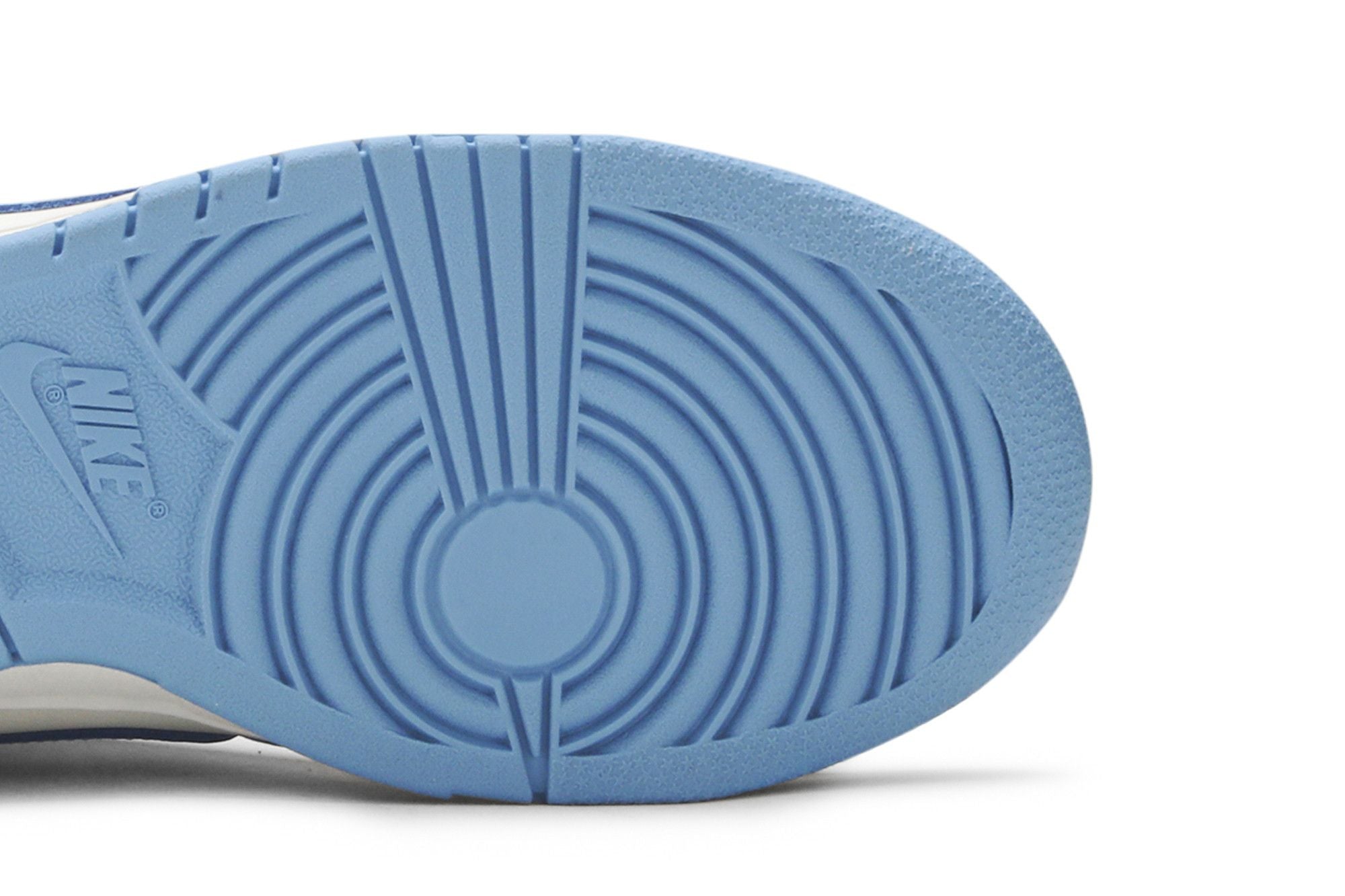 The Dunk Low Coast features an off-white leather upper accented with light blue leather panels. Pops of yellow on the tongue and heel offer a subtle play on contrast. A matching midsole and outsole complete the look.
