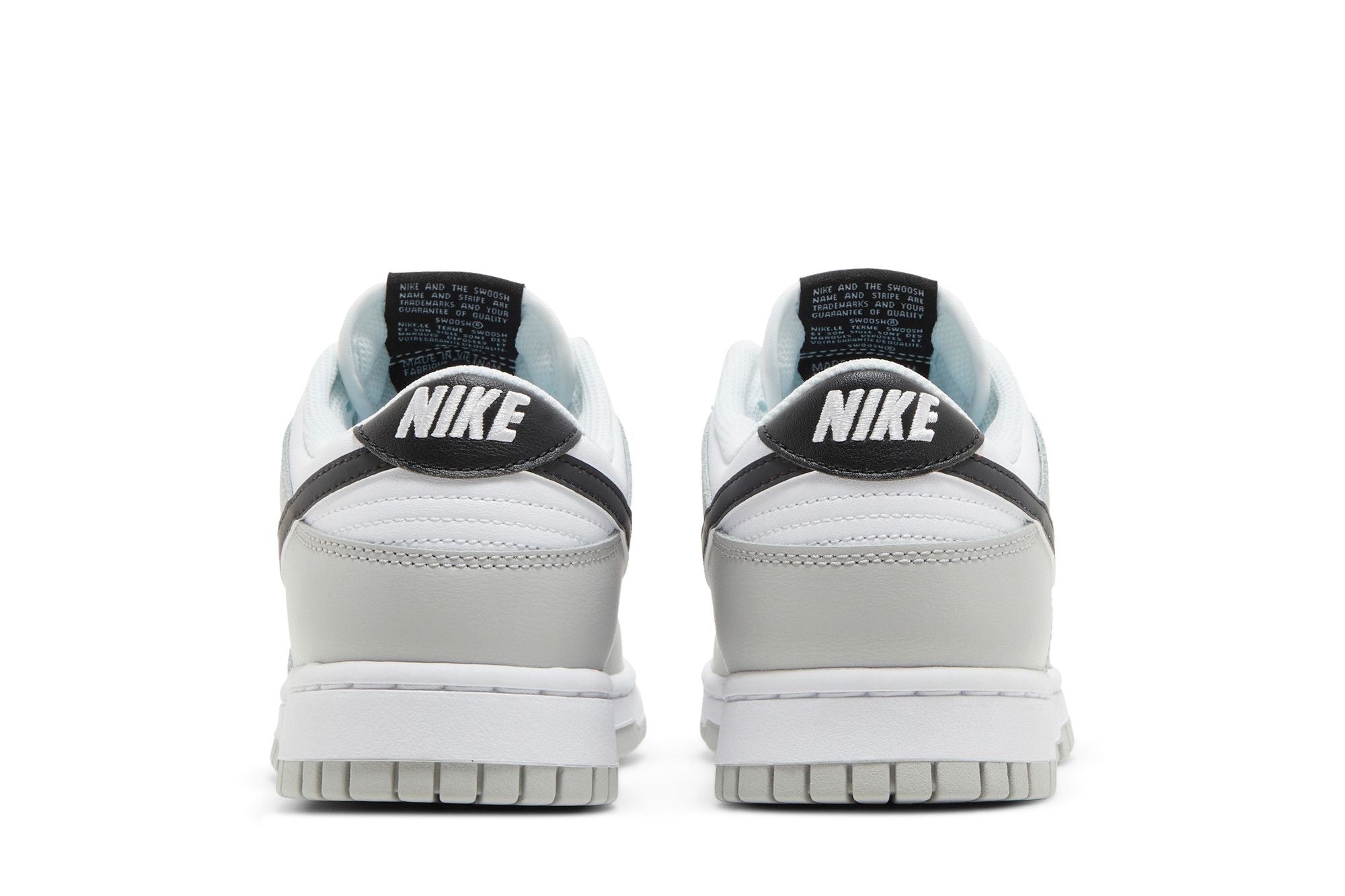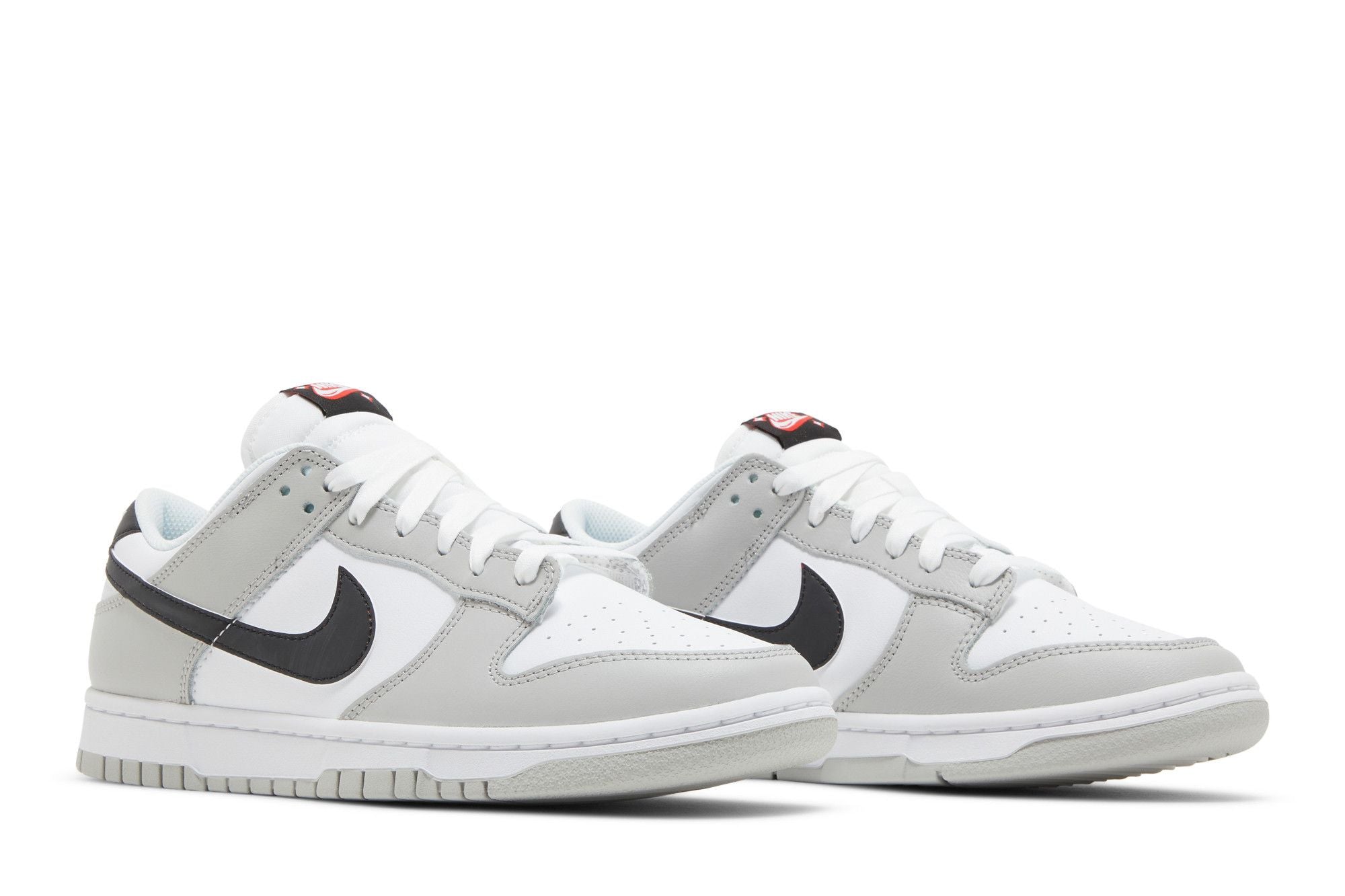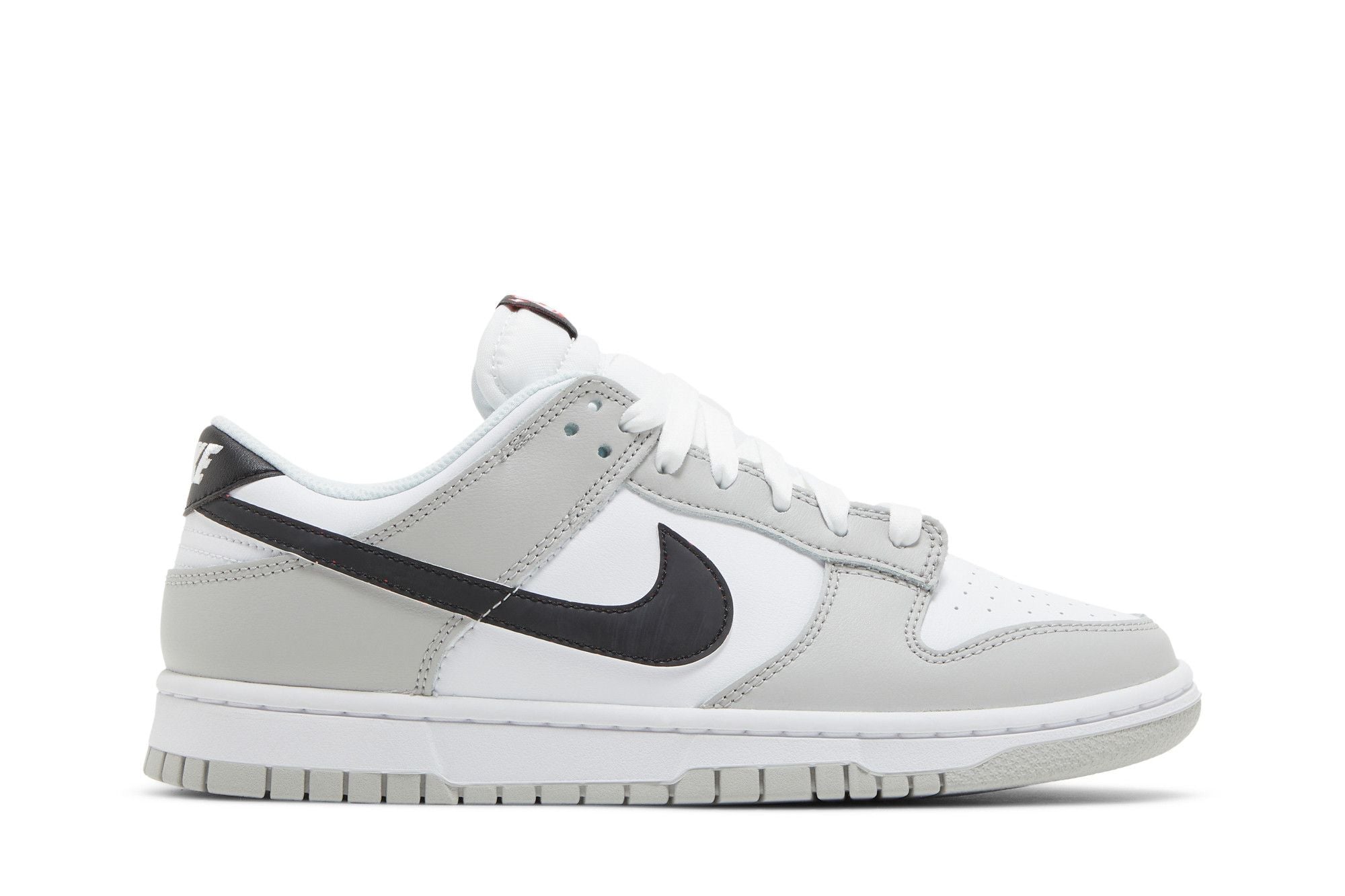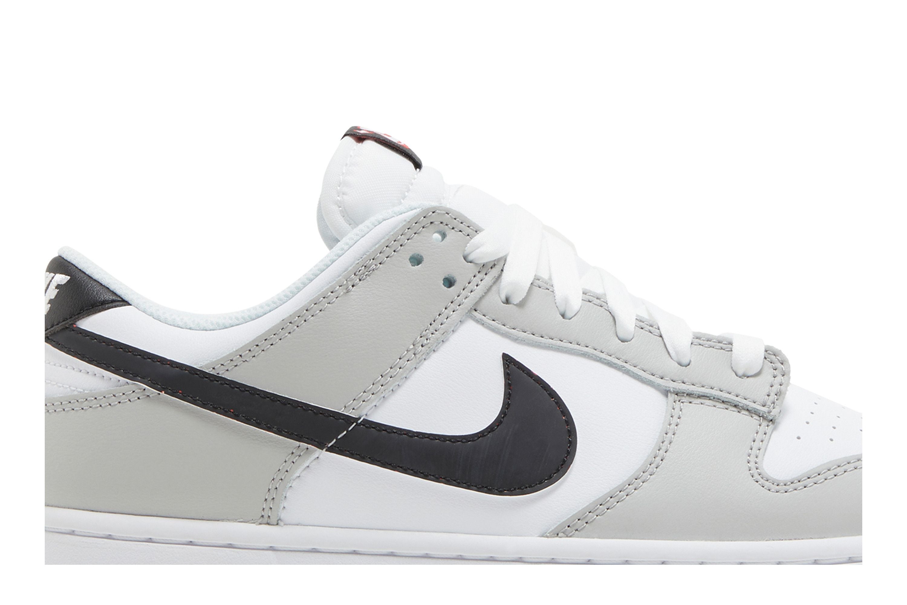 The Nike Dunk Low Jackpot is dressed in a light grey, white and black color scheme. This shoe features a white leather base with gray overlays and matching rubber sole. The black swoosh, if scratched, hides a red swoosh with the classic casino symbols that we also find on the box card. See all the specs on Nike .