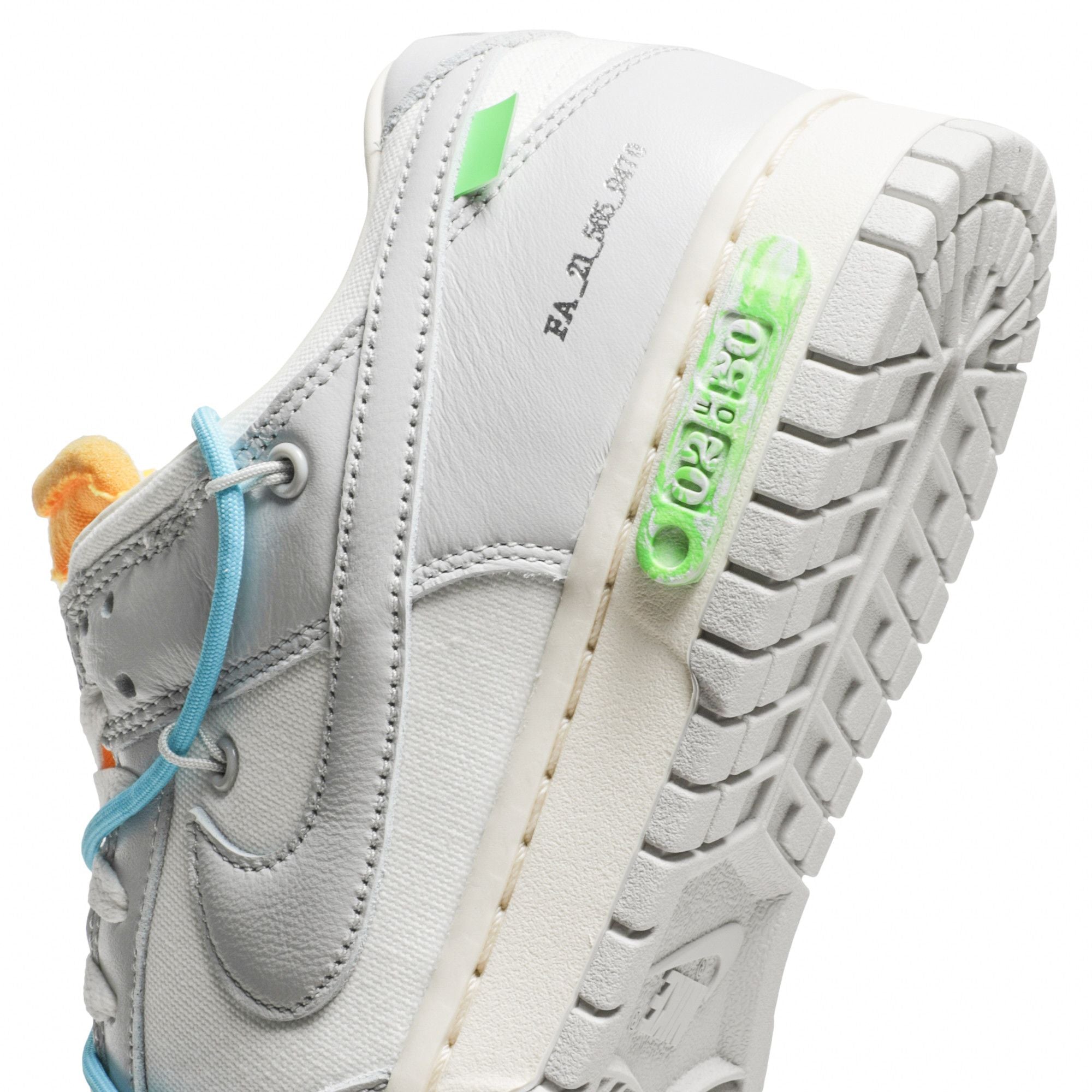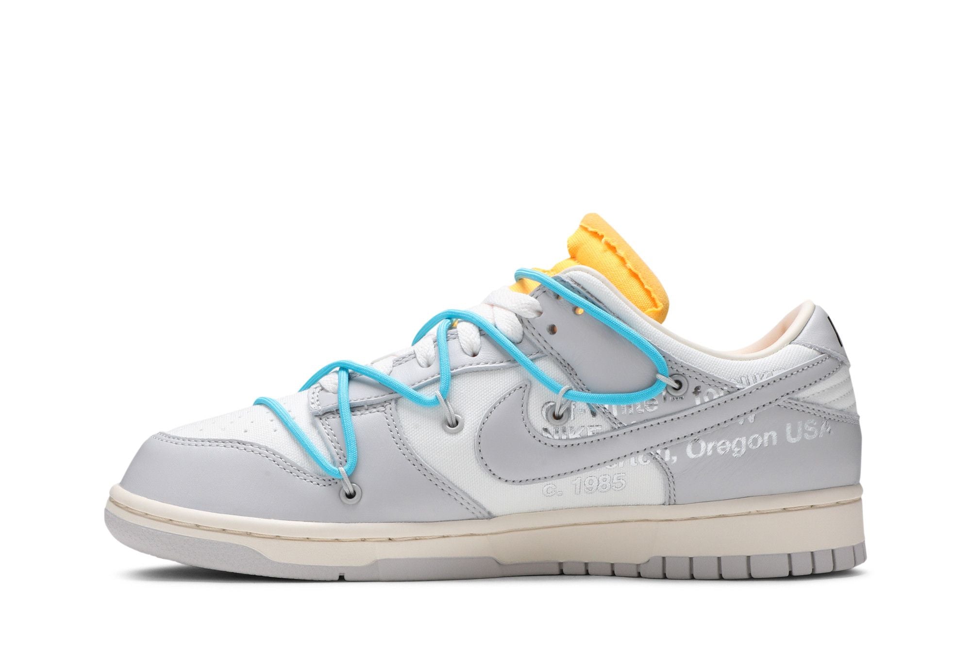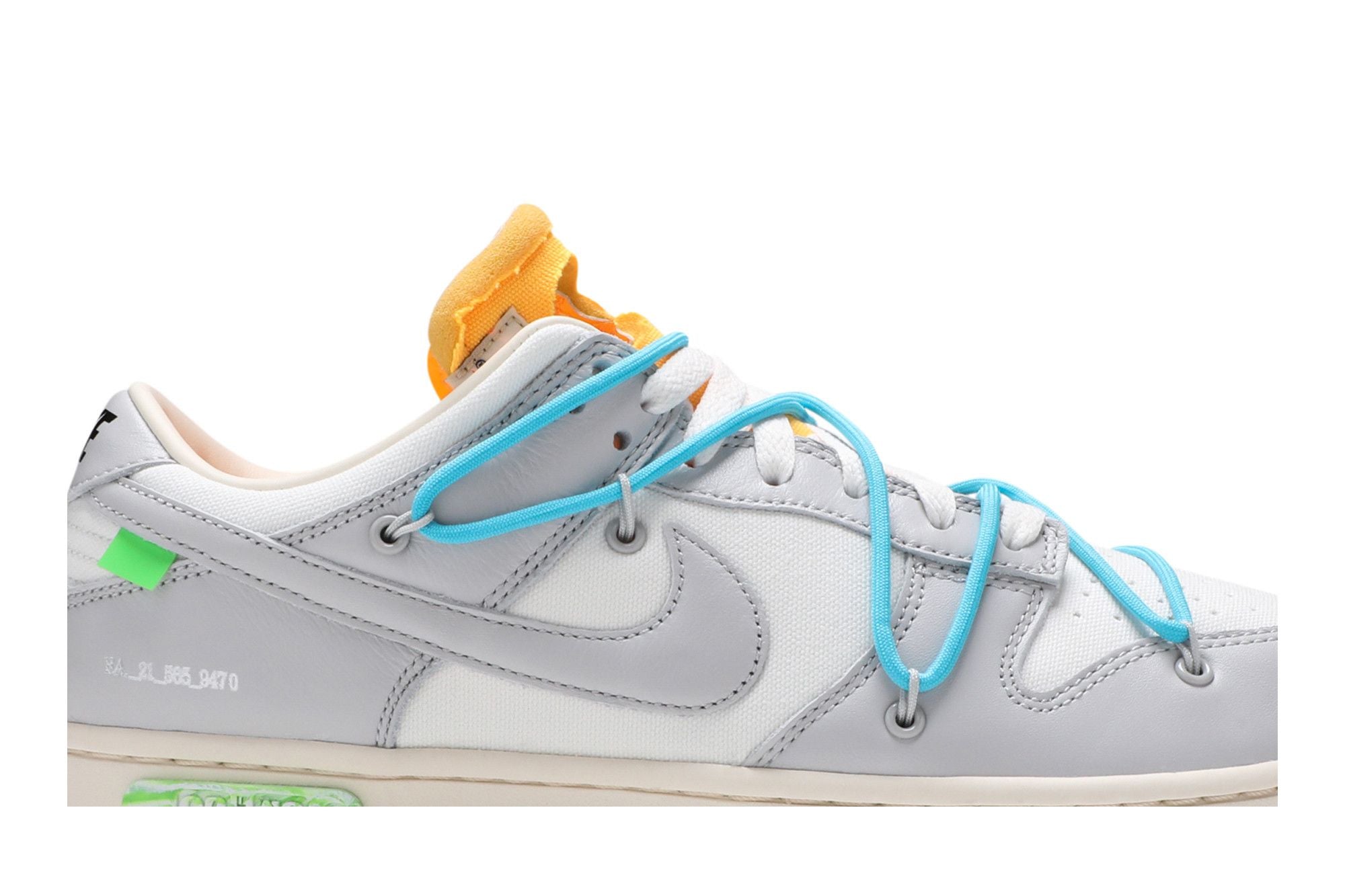 The Dunk Low Off-White Lot 2 adopts the classic silhouette with an upper made with a mix of materials, including leather, suede and mesh, for durability and breathability. The shoe features a padded tongue for comfort. See all the specs on Nike.