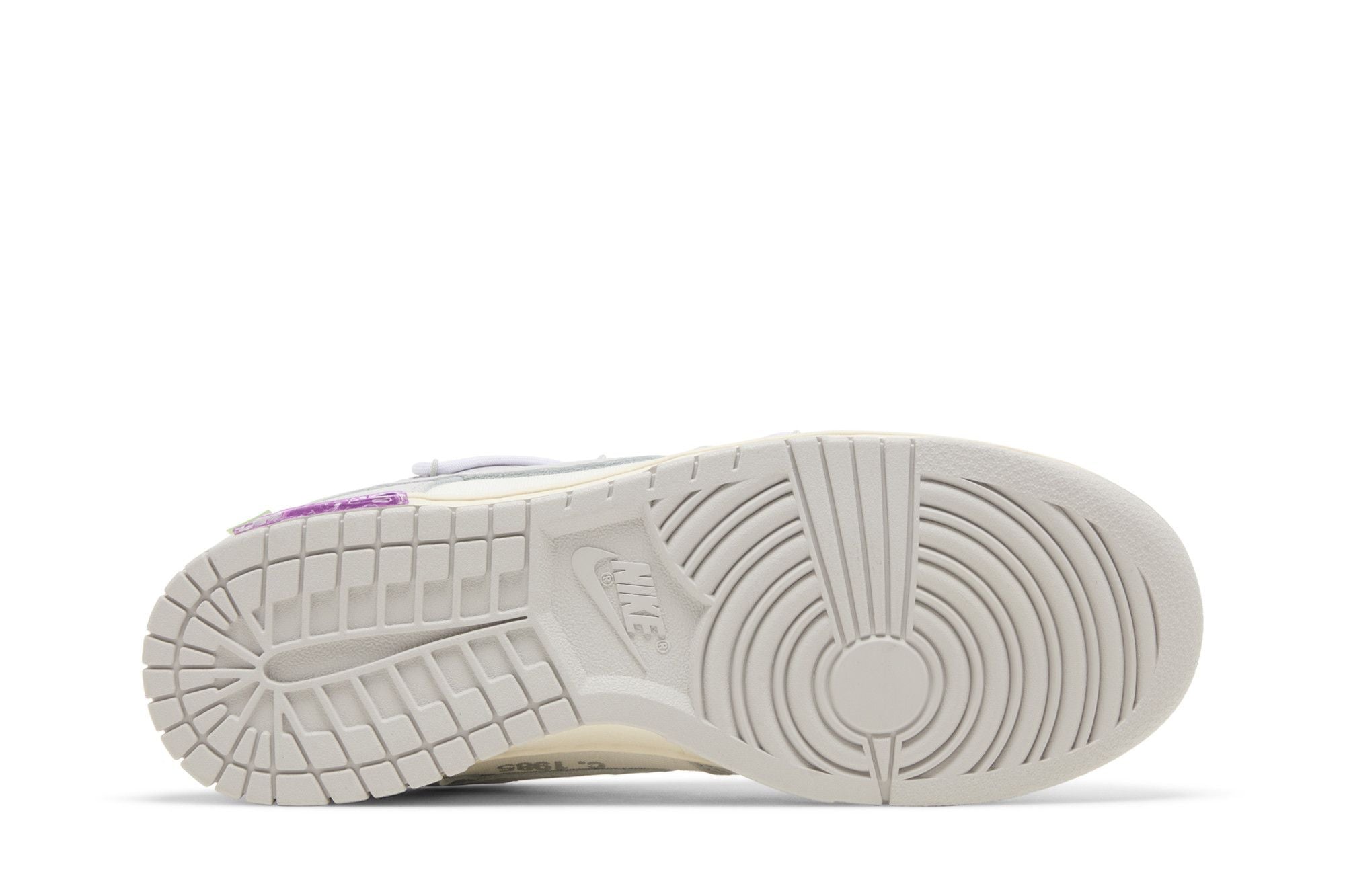 The Dunk Low Off-White Lot 3 features a low-top design featuring the combination of materials and distinct elements of the Off-White brand. The upper is made of white leather, which gives the shoe a clean and premium look. The soft grey canvas overlays add texture and depth to the design, creating a subtle contrast to the white base. See all the specs on Nike.