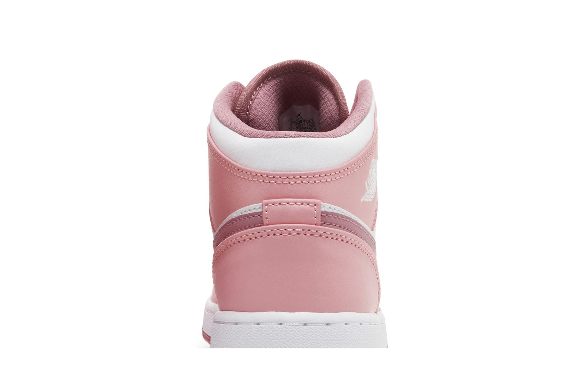The Air Jordan 1 Mid Valentine's Day features a white leather main surface, accompanied by pastel pink leather inserts that harmonize with the Jumpman logo on the tongue. A Swoosh symbol to the side displays a slightly bolder hue that coordinates with the outsole and lining. Check out all the specs on Nike.