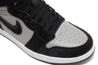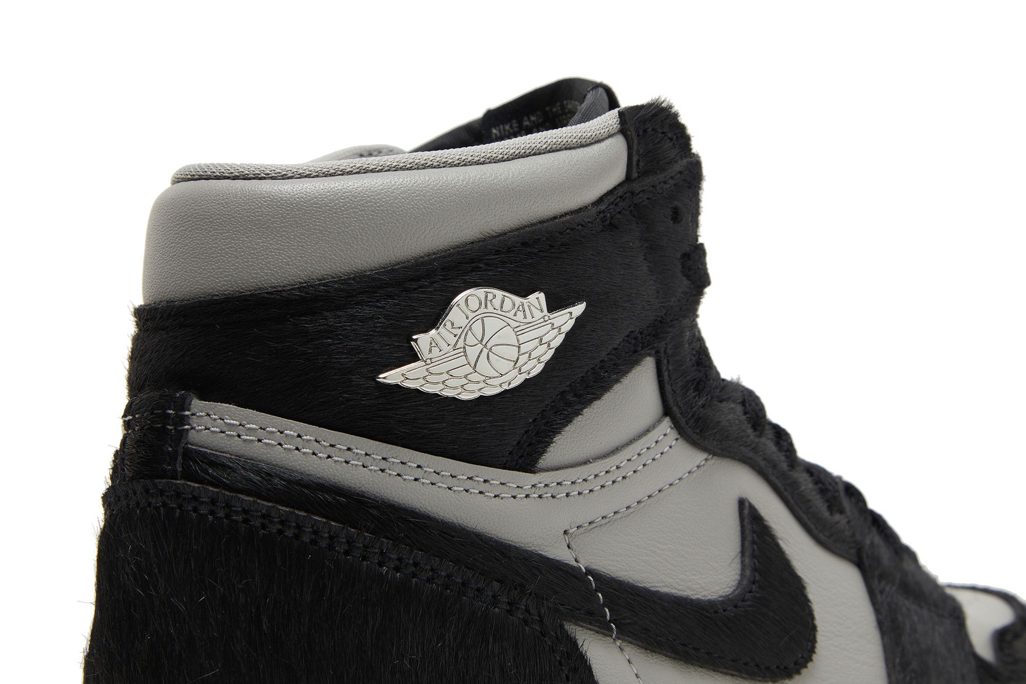 The Air Jordan 1 Retro High OG Twist 2.0 features a pearl grey leather base accented with shaggy black horsehair (faux fur) overlays. A metallic Jordan Wings logo adorns the collar and adds a premium look to the high-top. See full specs on Nike .