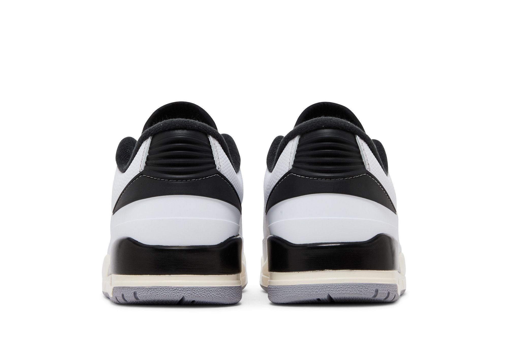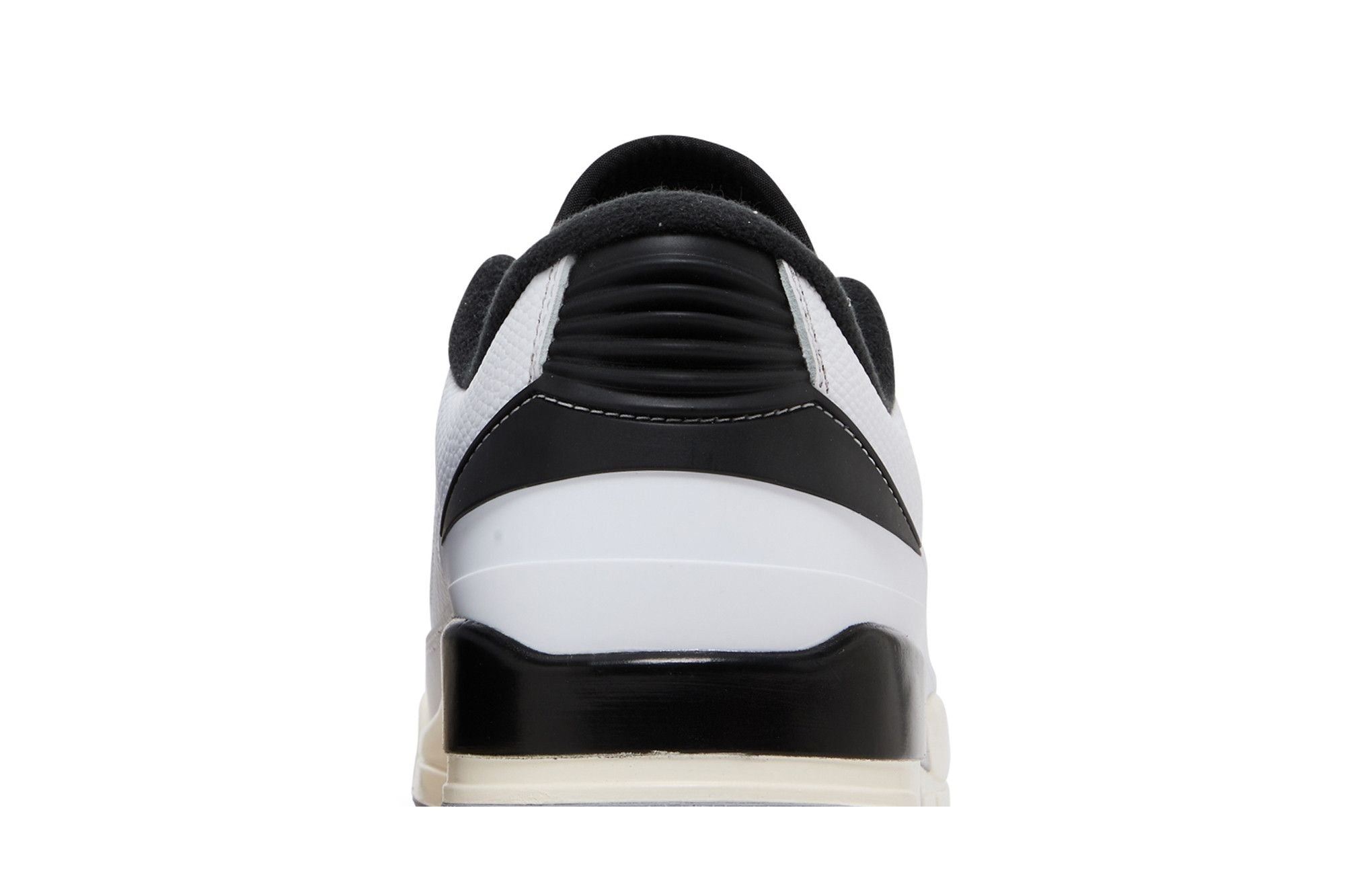 La Jordan2/3 White Black è una sneaker elegante e versatile che combina l'upper della Jordan2 con la ferramenta della Jordan3. Presenta un design low-top con una base in pelle bianca liscia arricchita da sovrapposizioni in pelle bianca con texture simile a quella dei rettili. La cucitura decorativa dinamica percorre l'upper ed è accompagnata dalla fodera nera lungo la sovrapposizione del pannello laterale. Le perforazioni intorno alle staffe degli occhi migliorano la ventilazione e il comfort. Il tallone in TPU nero offre stabilità al piede e si abbina alla fodera della lingua, al rivestimento della calza e alle solette branded. La midsole in schiuma con un tocco di nero contiene un'unità d'aria visibile per un'ammortizzazione reattiva. La suola in gomma grigia, bianca e nera completa la costruzione classica di questa sneaker. Il logo Wings nero e grigio sulla lingua è un tocco distintivo che rende questa Jordan2/3 immediatamente riconoscibile.
