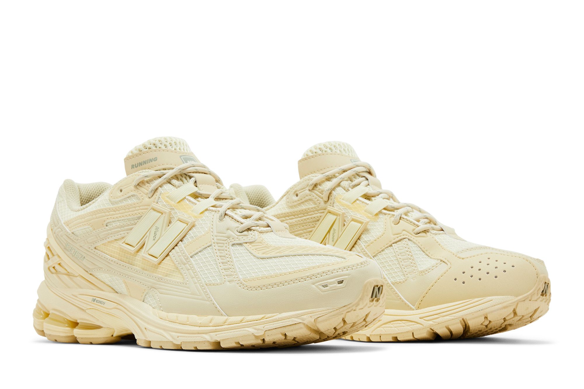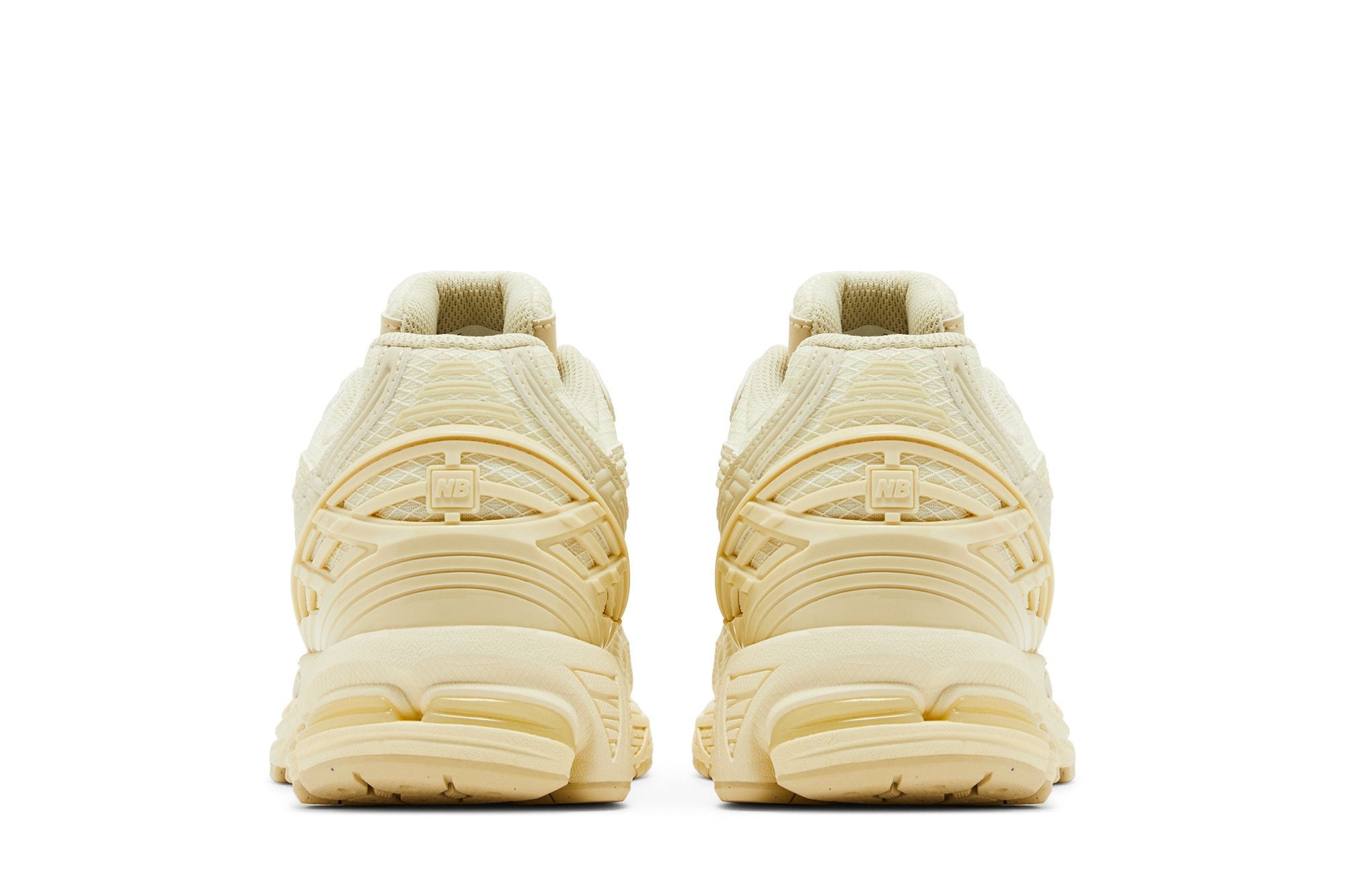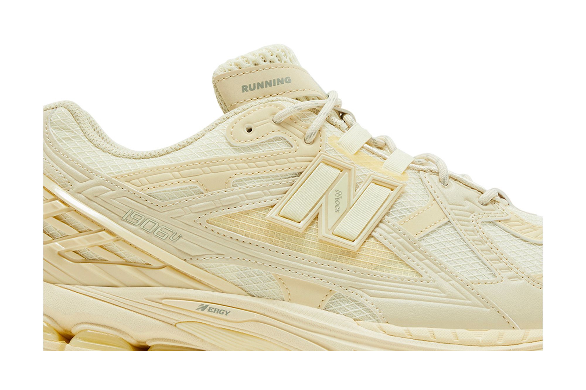 The New Balance 1906U Butter Yellow features a yellow/beige mesh base layer that sits atop a combination of leather overlays, introducing a tactile contrast to the overall monochrome design. To complete the overall aesthetic, the sneaker is finished with a foam midsole.