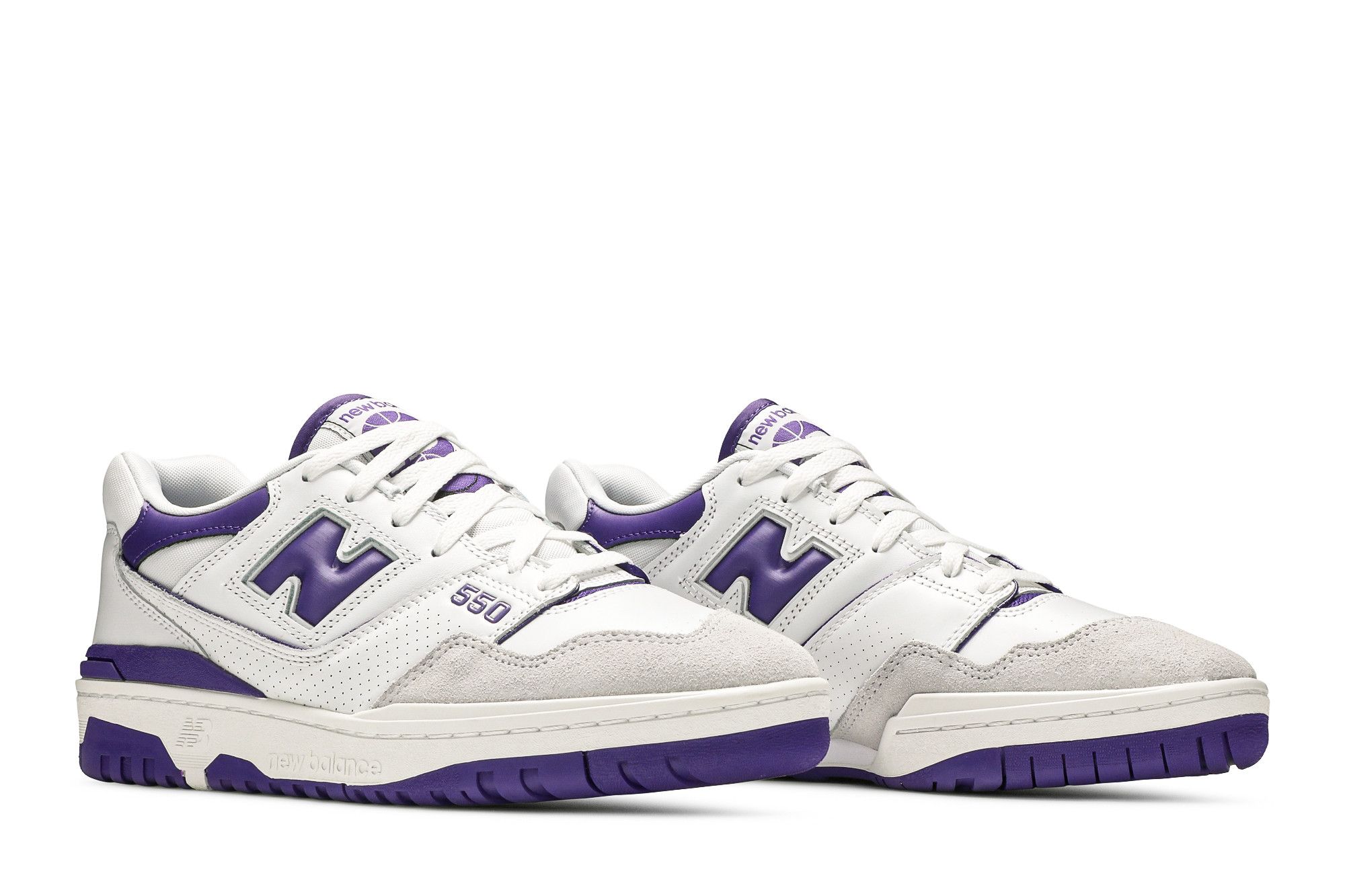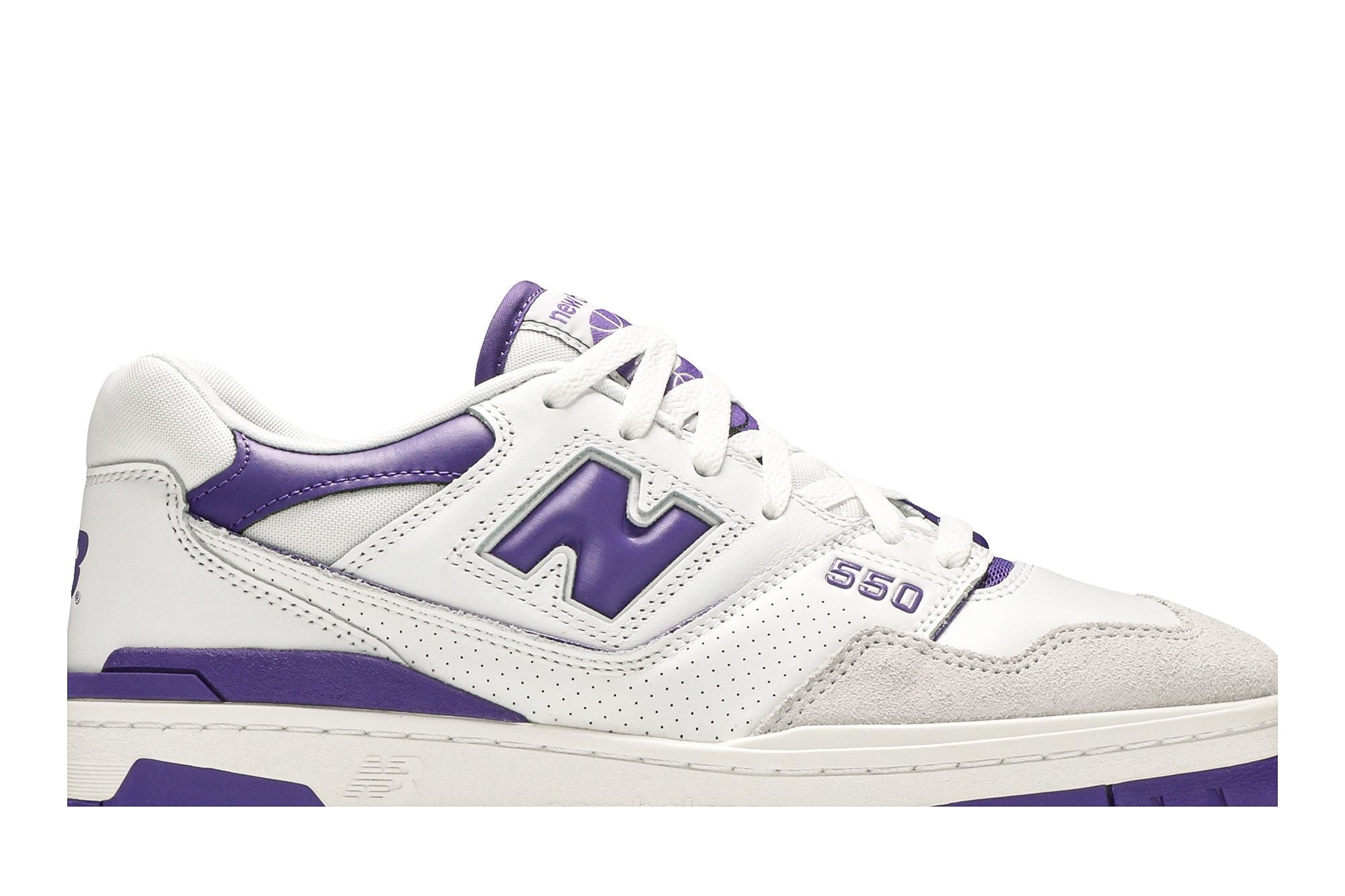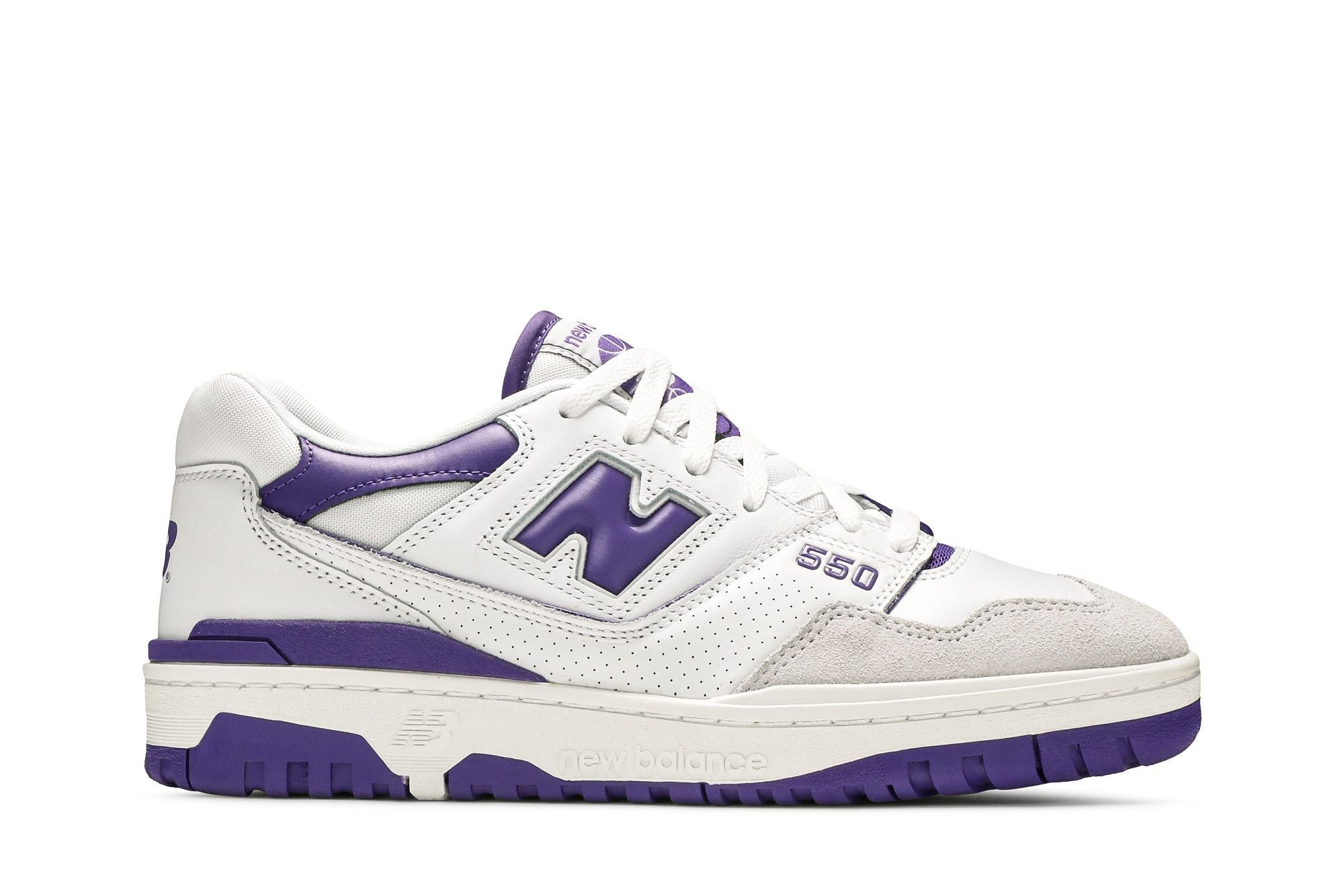 The New Balance 550 White Purple consists of a base that combines smooth leather, suede and perforated leather. In a nod to the retro aesthetic, the inserts oscillate between white and off-white to accommodate purple accents, particularly on the logos. See all the specs on New Balance.