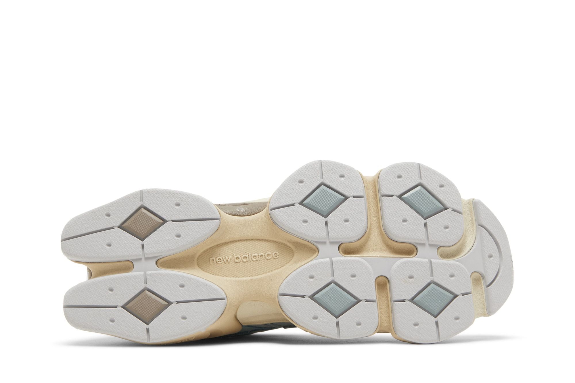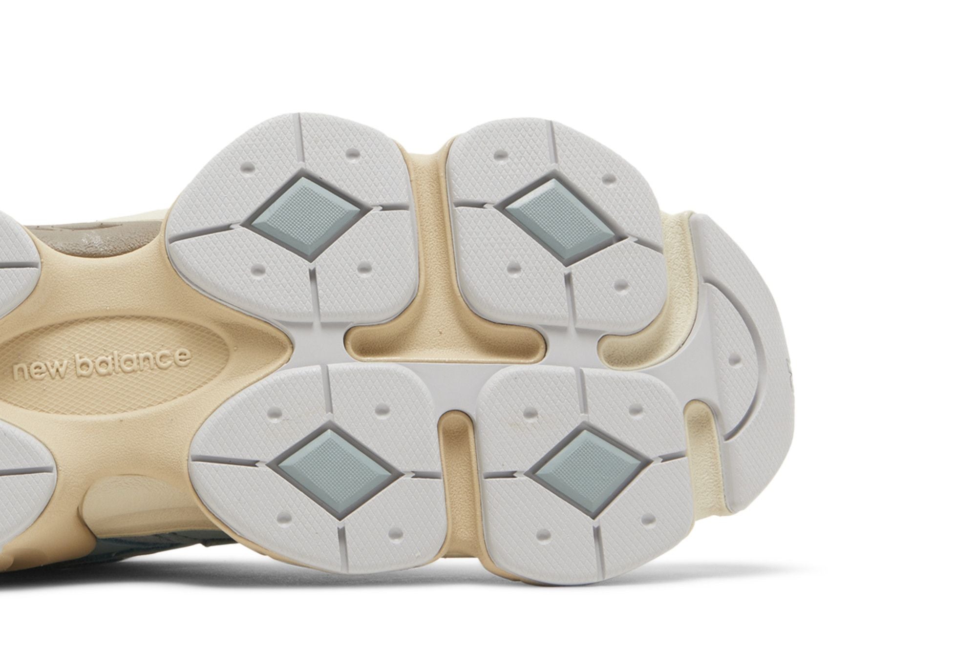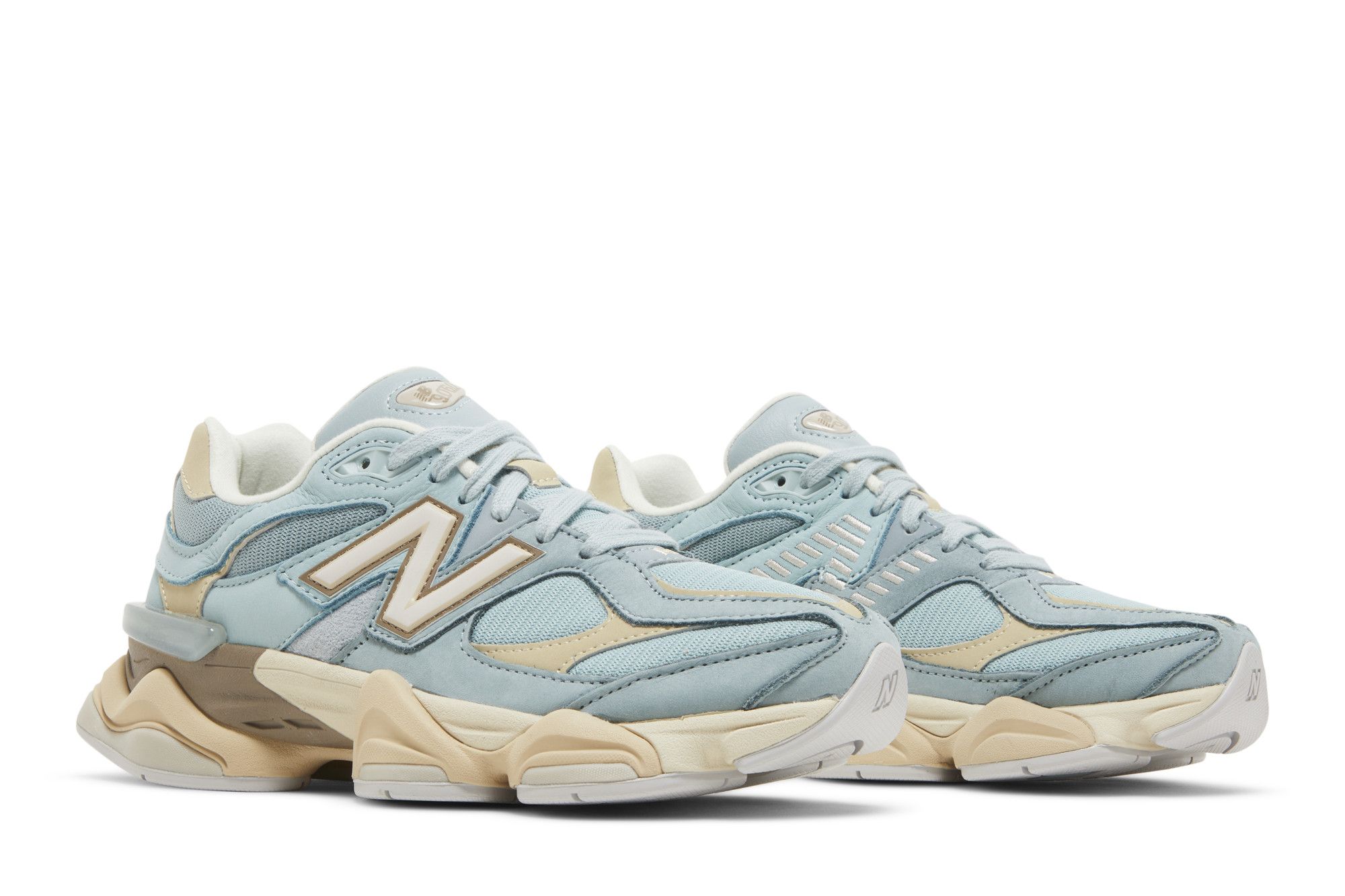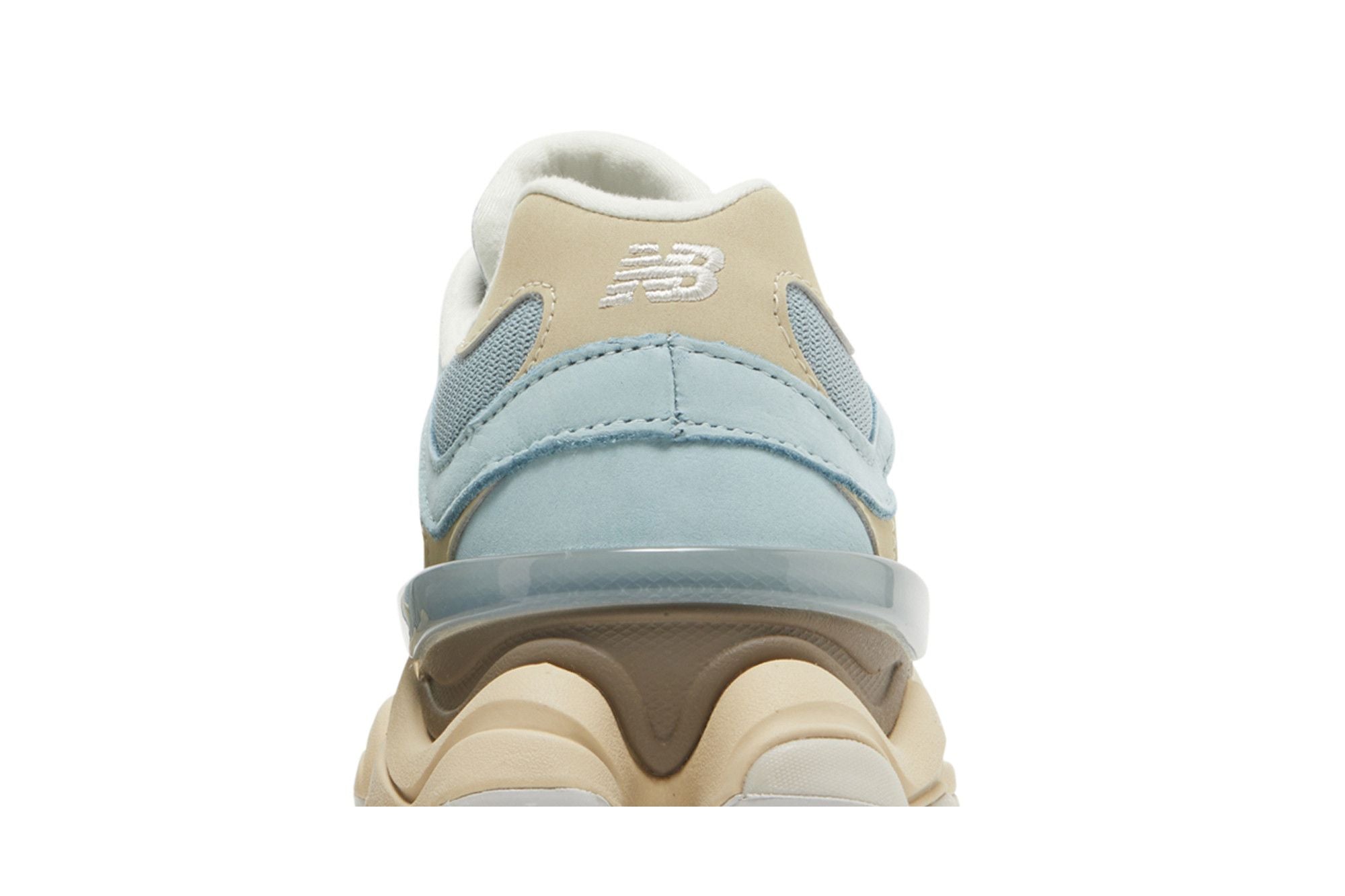 The New Balance 9060 Blue Haze features a light blue mesh base accompanied by light blue and cream nubuck overlays. The thick sole is divided between cream, light blue and brown. See all the specs on New Balance.