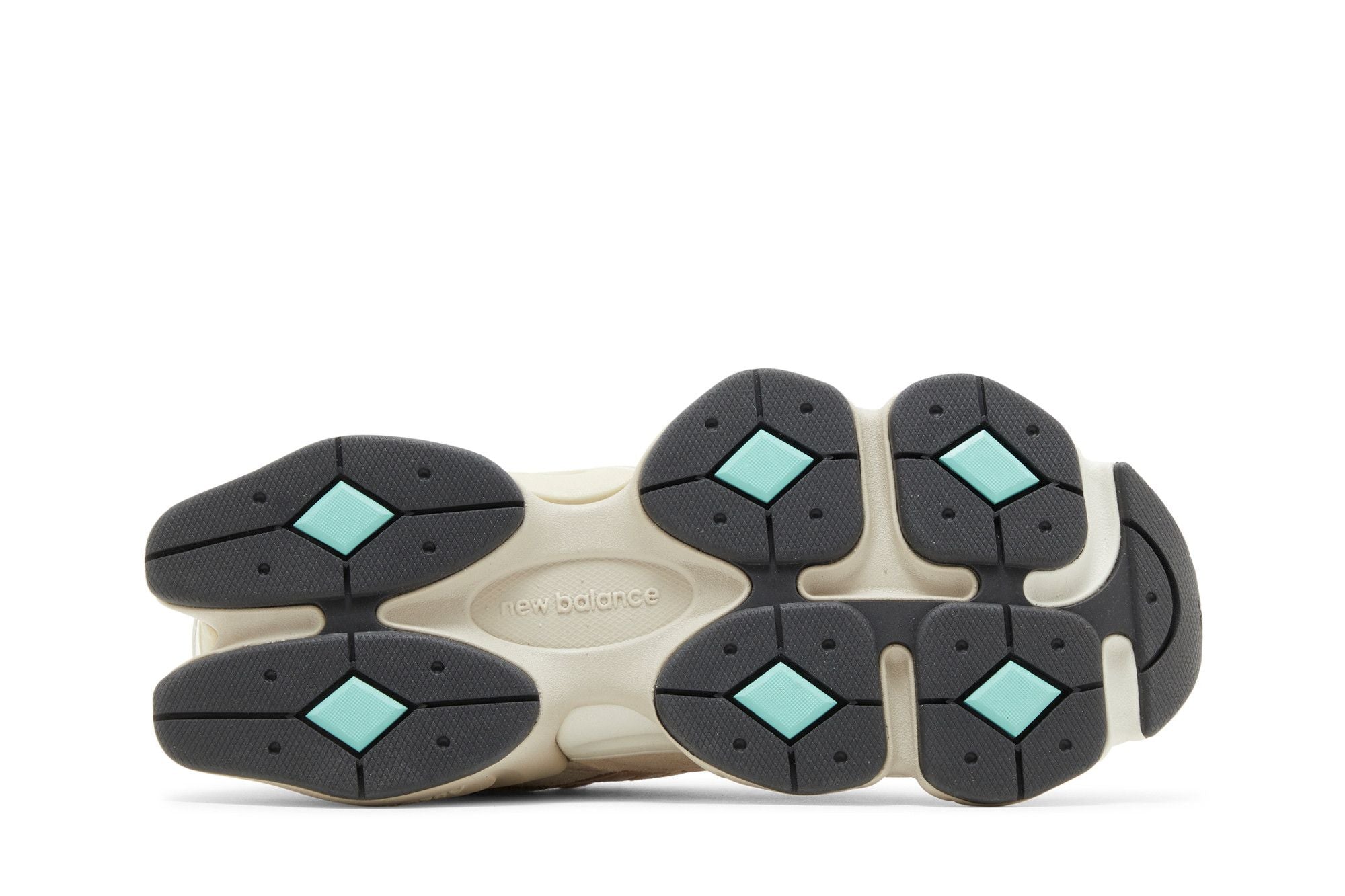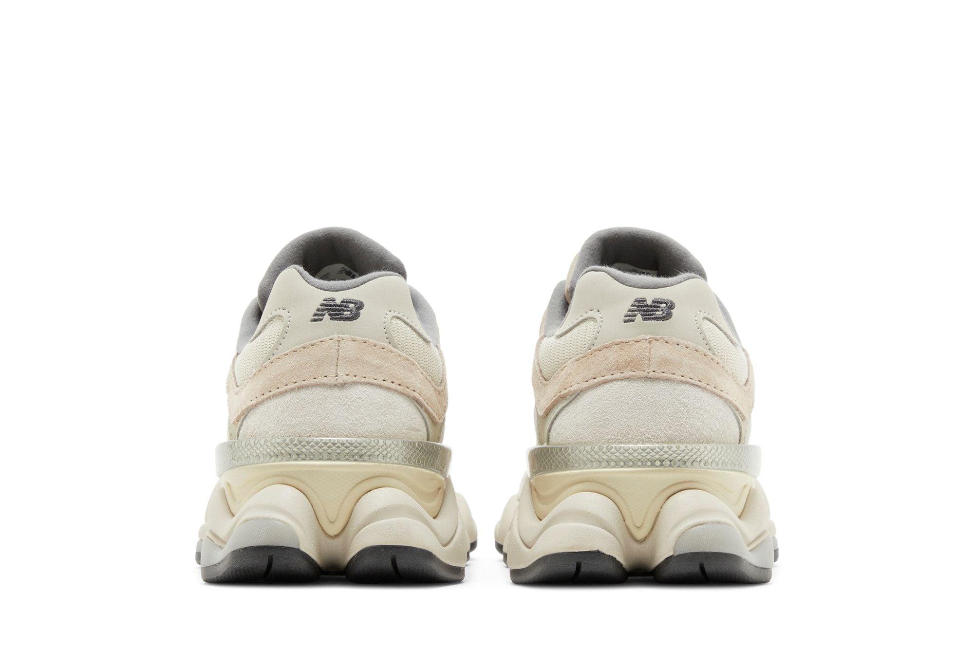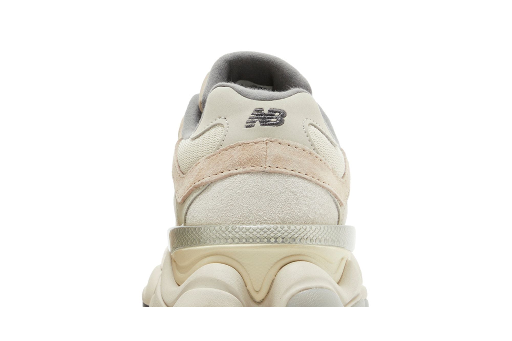 The New Balance 9060 Sea Salt features a premium grey mesh base. The entire build is accented with beige brushed suede in the style of a . Its standout feature is its chunky ABZORB outsole. White laces complete the edgy look. See full specs on New Balance .
