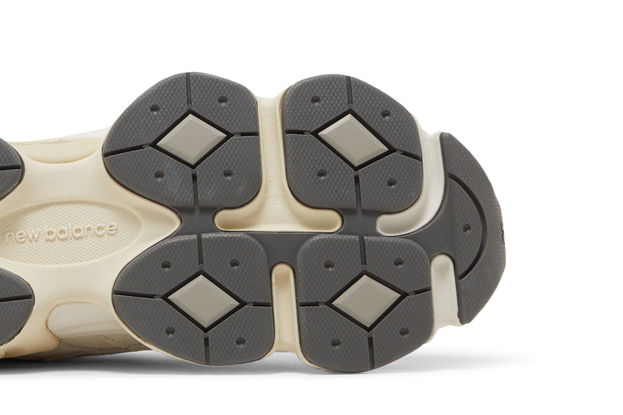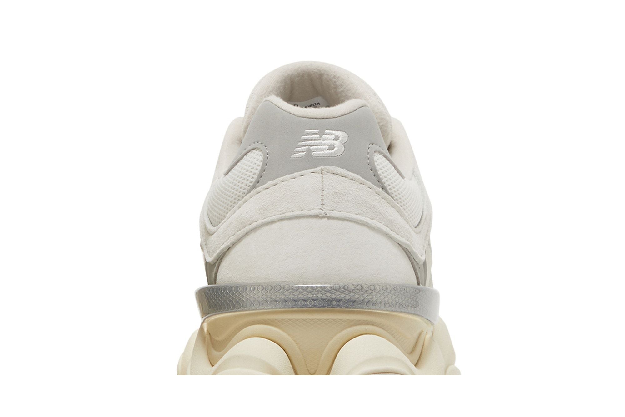 This New Balance 9060 Sea Salt White features a White mesh base, accompanied by White and Gray leather overlays. The lateral "N" is in gray leather while the thick ABZORB sole features shades of beige. See all the specs on New Balance.