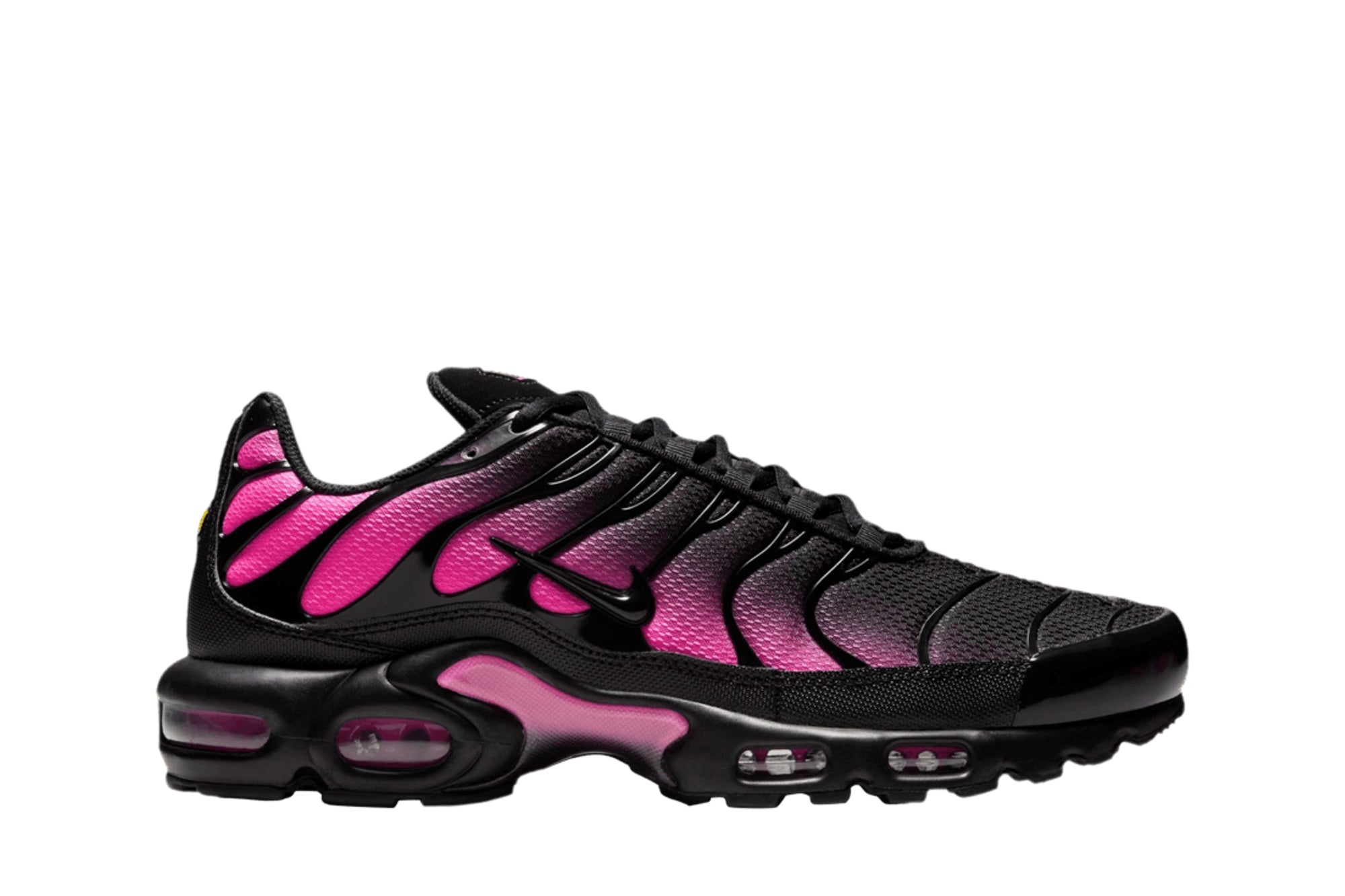 The Nike Air Max Plus Black Hyper Pink is a striking addition to the iconic Air Max line. This sneaker features a sleek black upper with hot pink accents, creating a bold and modern aesthetic. The Nike Air Max Plus's wavy TPU inserts add texture and depth to the shoe, while also offering enhanced durability and support. Underfoot, the full-length Air Max cushioning system provides superior comfort and responsiveness with every step. The black outsole is complemented by hot pink accents, further emphasizing the sneaker's dynamic color scheme. A sturdy rubber outsole provides excellent traction on various surfaces, making the Air Max Plus Black Hyper Pink suitable for both everyday wear and light athletic activities.