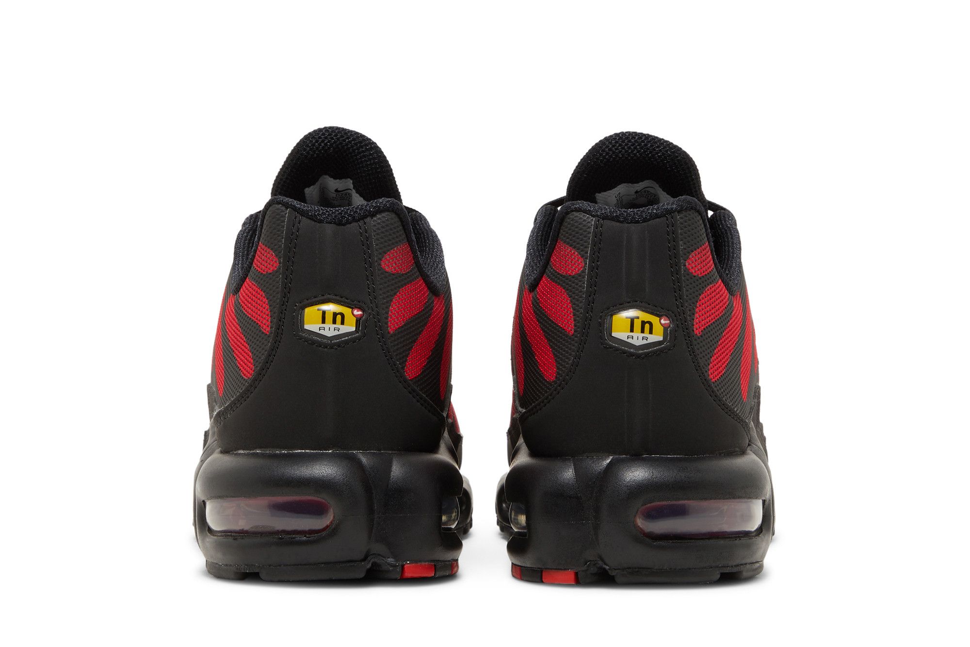 The Nike Air Max Plus Bred Reflective is a modern interpretation of Nike's Air Max design, featuring a red and black color scheme and reflective details on the tongue, toecap, sides, and heel. The upper is made of breathable mesh to keep feet cool and dry. The shoe features rippled inserts and a grooved rubber outsole for increased traction on various surfaces, and incorporates Nike's Air Max technology in the heel for responsive cushioning.