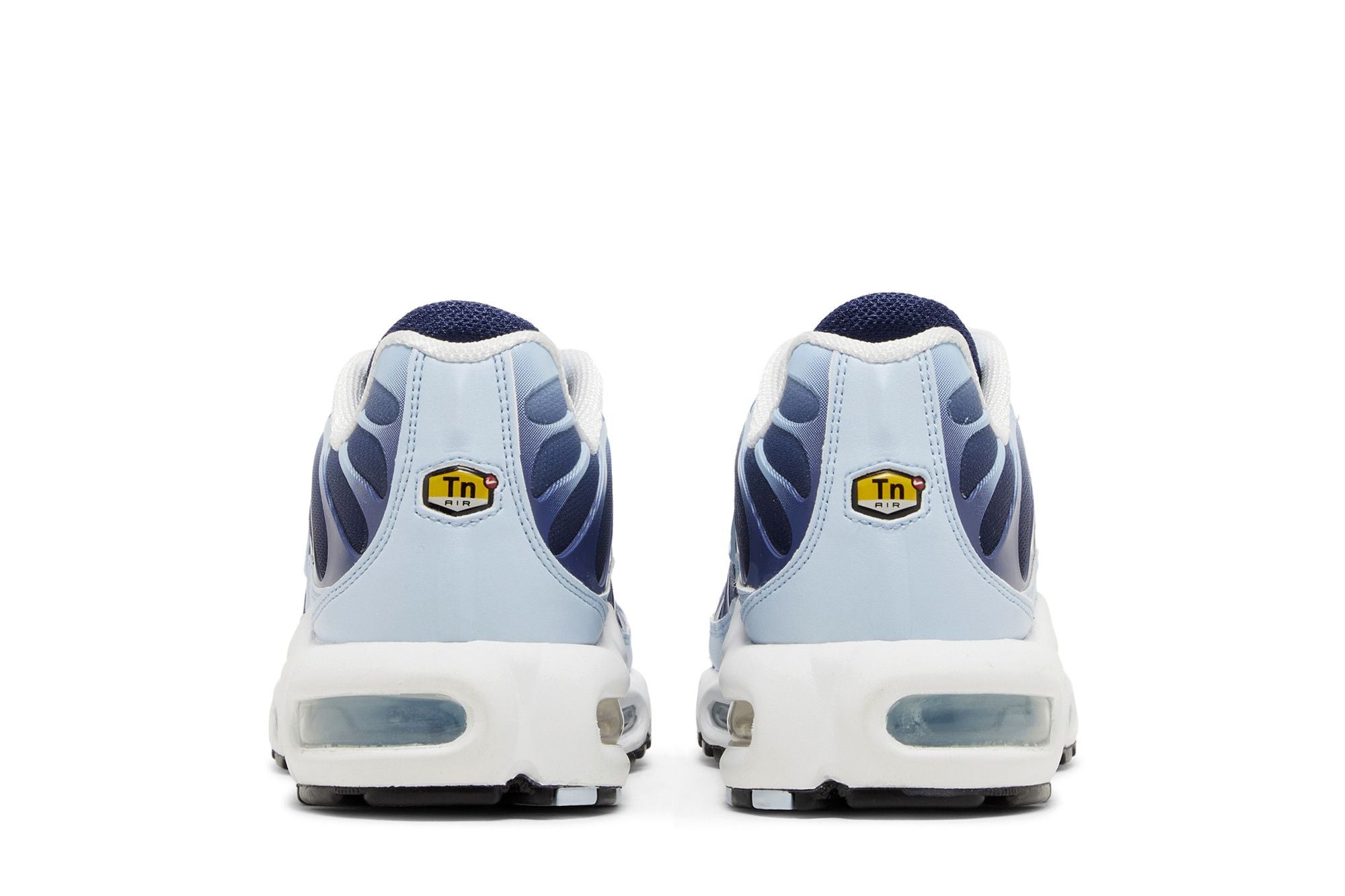 The Nike Air Max Plus Celestine Blue features a unique visual impact thanks to the color combination of white, University Blue, Deep Royal Blue, and Ice Blue. Inspired by Sean McDowell's designs, this version features a color gradient and wavy TPU lines on the upper. The color gradient transitions from Ice Blue to Deep Royal Blue from the toe to the heel. The TPU lines form a structure that supports the breathable mesh upper and creates a wavy design. A transparent TPU toecap protects the foot area and adds brightness. Visible air units in the heel and forefoot complete the design. The TPU plate in the midfoot offers stable support thanks to its unique shape.