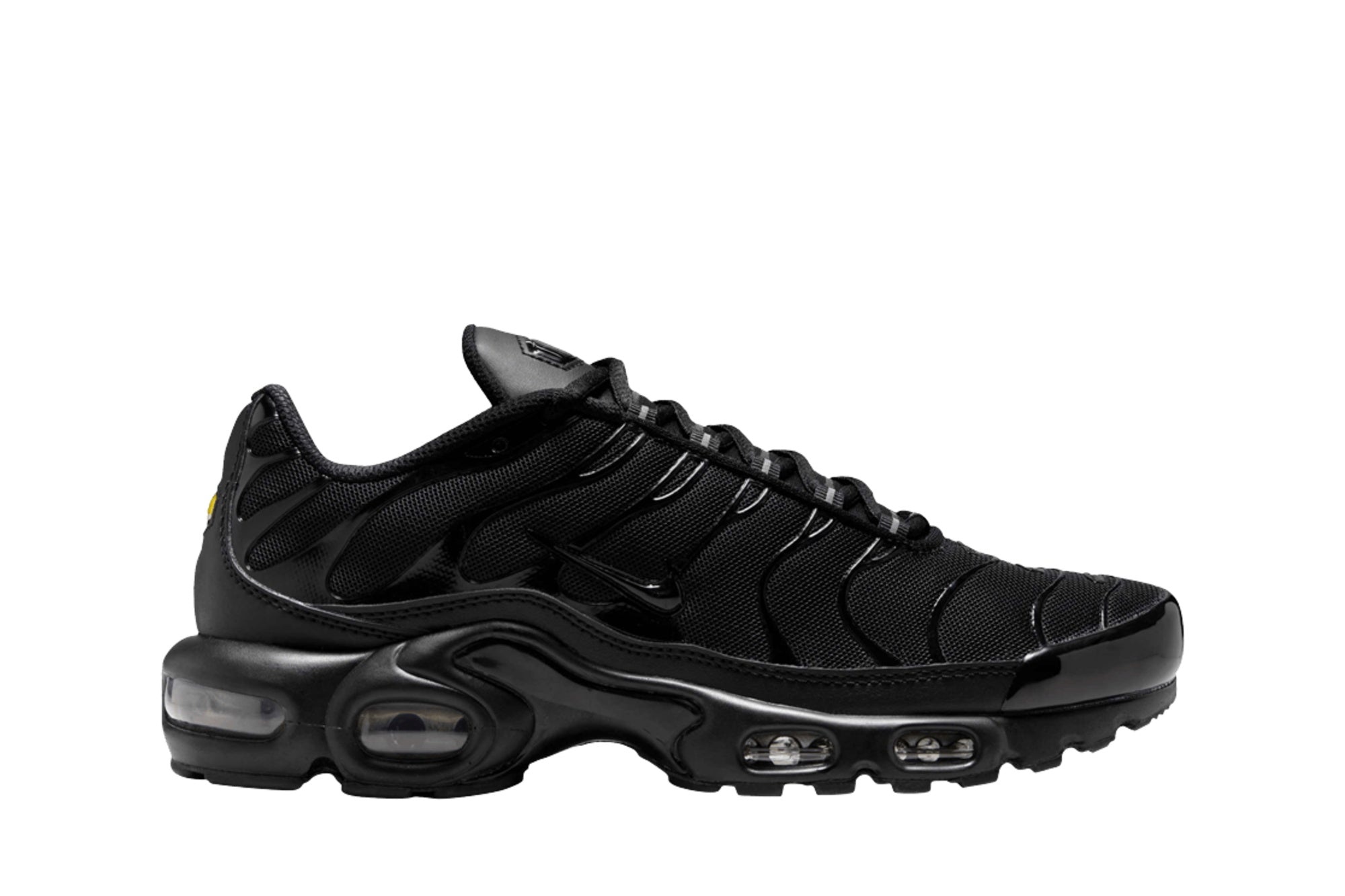 The Nike Air VaporMax Plus is a sneaker with a dynamic and modern aesthetic. Made of black synthetic material, it features a mesh upper with leather inserts. Its black rubber sole is equipped with airborne technology for optimal comfort and cushioning. The design is enhanced by details such as black laces and a yellow rear logo. The Nike Air VaporMax Plus is a stylish and versatile choice for those seeking a sporty and contemporary look.