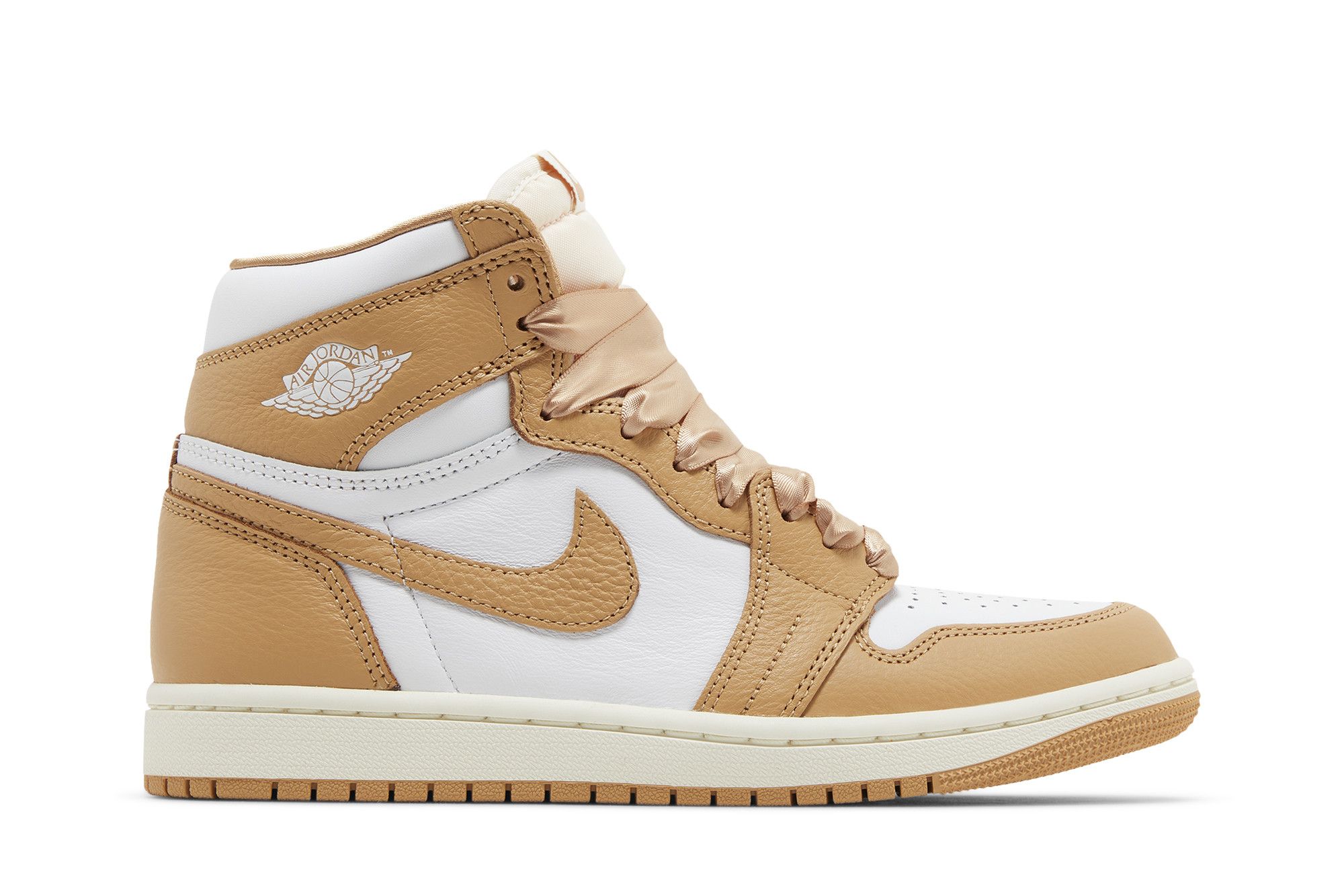 This Air Jordan 1 Retro High OG Praline features a White leather base, accompanied by Caramel leather overlays. Satin laces add a touch of originality to the silhouette. See all the specs on Nike.