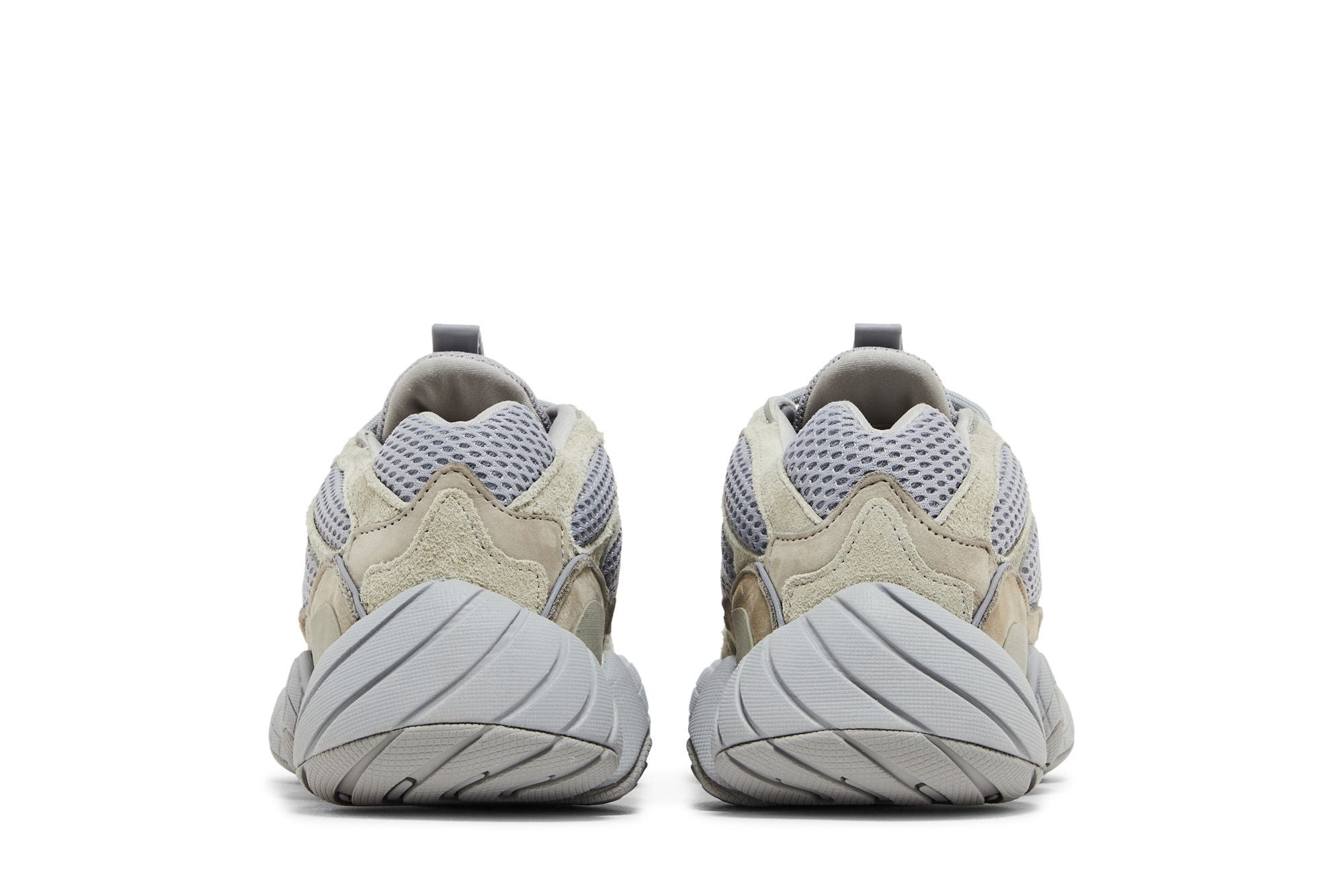 The adidas Yeezy 500 Stone Salt stands out for its unique design, which combines comfort and innovation. Its upper is made of a lightweight and breathable grey fabric, with high-quality leather and suede inserts that create a wavy effect in shades ranging from beige to grey. The abstract grey rubber insole offers comfort and traction, while the adiPrene+ midsole guarantees excellent cushioning and shock absorption. With the addition of Ortholite footbeds, the adidas Yeezy 500 Stone Salt offers unparalleled comfort.