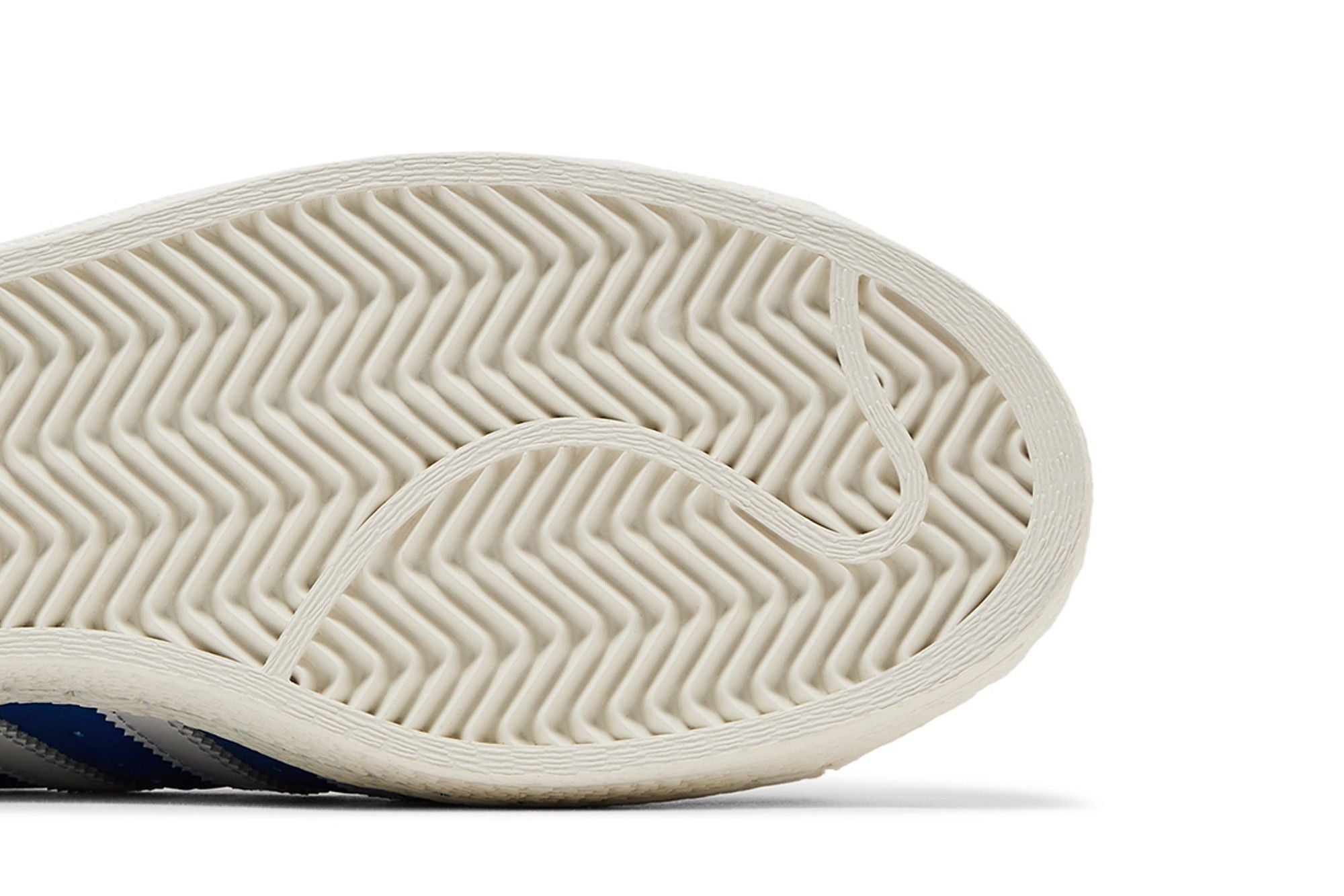 La adidas Superstar Vintage Bape Blue White è una collaborazione d'effetto che unisce il design classico alla moda streetwear. Questa iconica silhouette presenta un upper in pelle pregiata di colore bianco, valorizzato dal caratteristico motivo camouflage blu di Bape sulle tre strisce e sulla linguetta posteriore. L'appello senza tempo della scarpa è accentuato dalla suola in gomma off-white ispirata al vintage, che offre un tocco di richiamo all'eredità della Superstar. La cura dei dettagli è evidente in ogni particolare, dalle tre strisce perforate al marchio Bape e adidas in oro sul lato. La punta a guscio, caratteristica della linea Superstar, rimane intatta, offrendo sia stile che protezione.