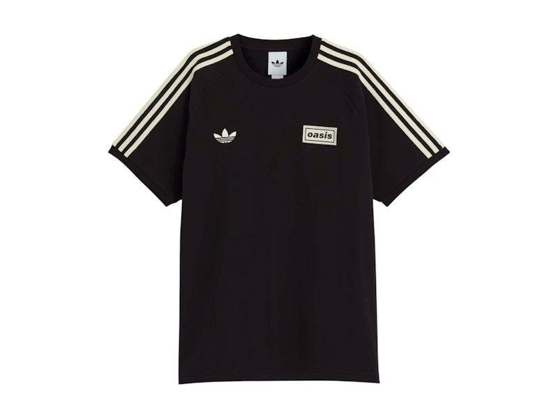 Le t-shirt adidas x Oasis Tour 3-Stripes noir affiche un look moderne et sportif. Confectionné dans une matière de haute qualité, il arbore un design épuré avec trois bandes beiges sur les manches et le logo adidas sur la poitrine gauche, tandis que le logo Oasis est sur la droite. Un petit logo au dos ajoute une touche de style. Disponible en noir, ce t-shirt polyvalent est idéal pour de nombreuses occasions.