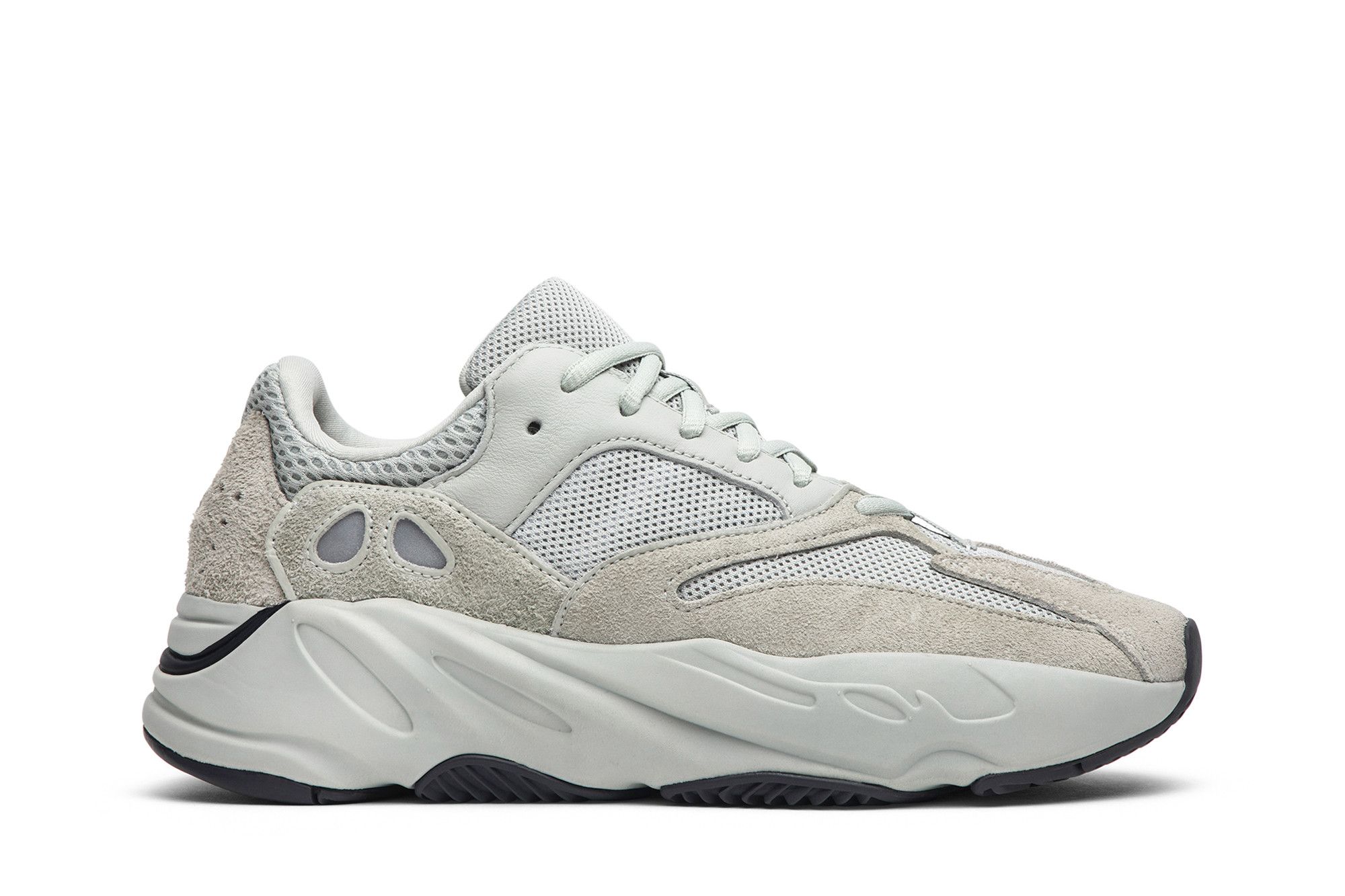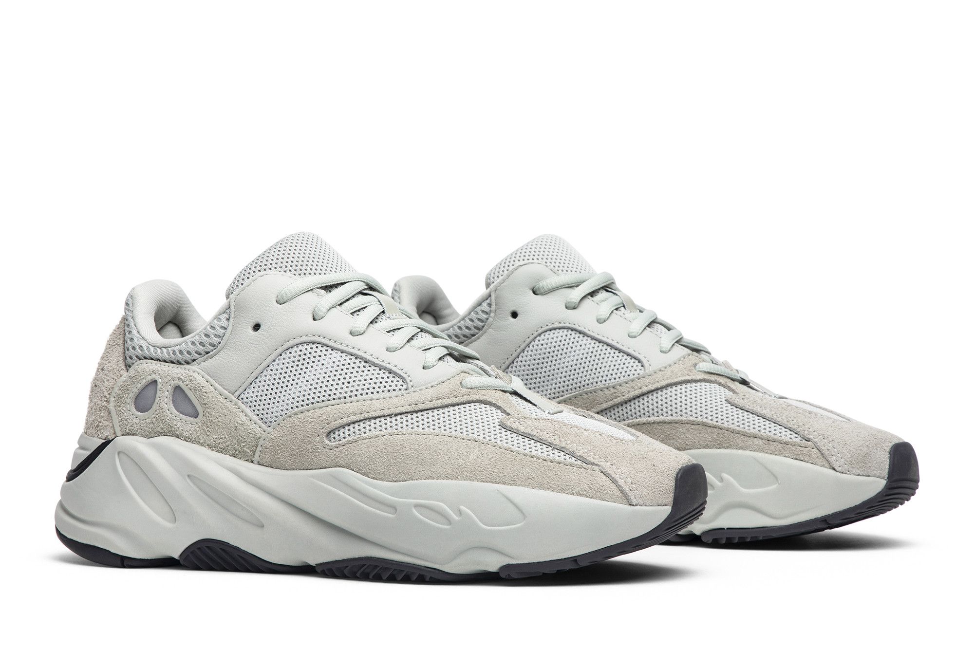L'Adidas Yeezy 700 Salt est habillée d'une tige monochrome, mélangeant du mesh, du synthétique et une finition en daim. Le tout adopte des tons blancs et gris cassés. Une semelle en caoutchouc d'un gris plus foncé souligne le design avant-gardiste de ce modèle ! Vérifiez les spécifications du produit sur Adidas