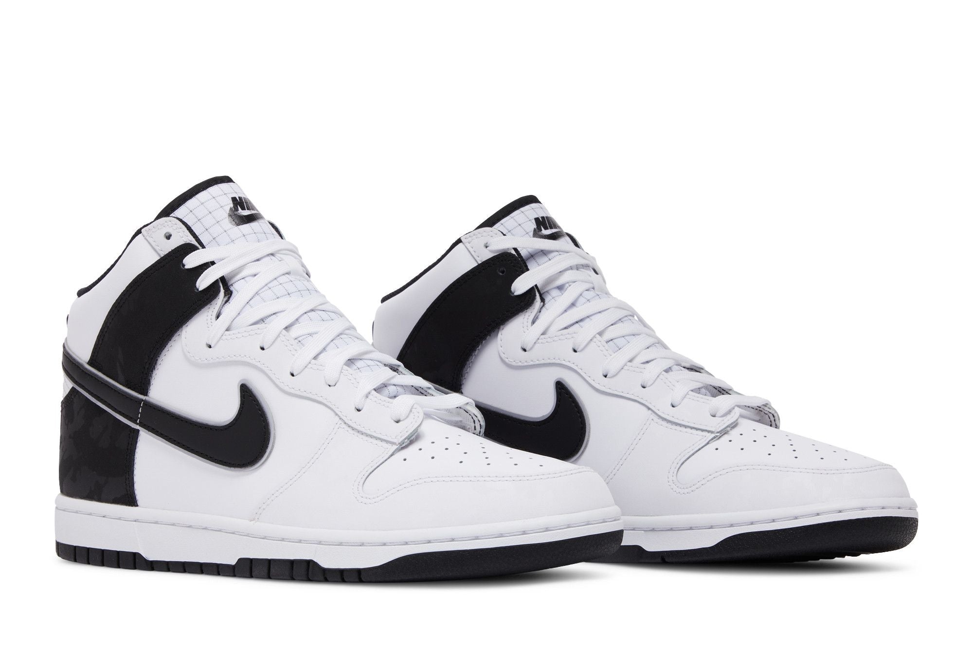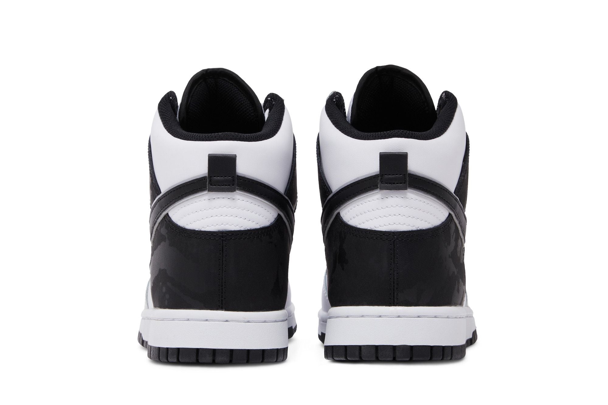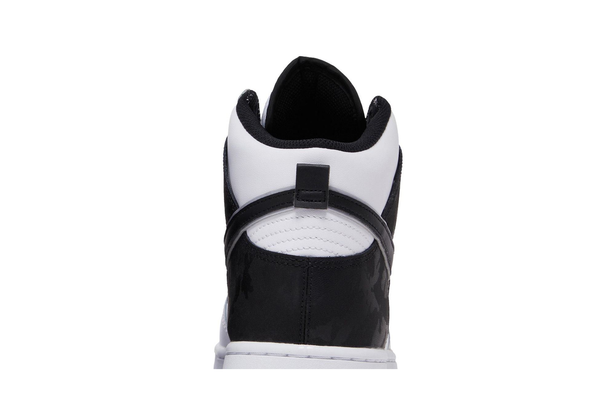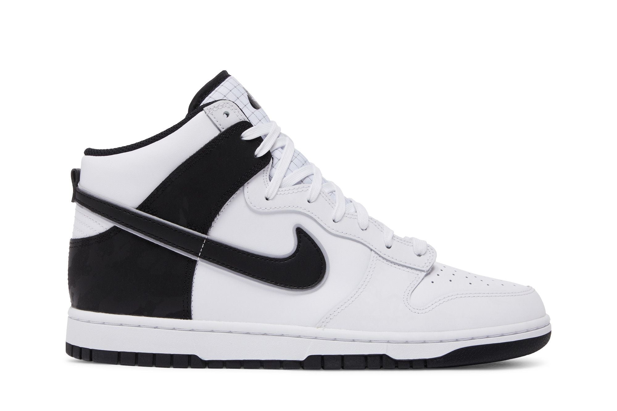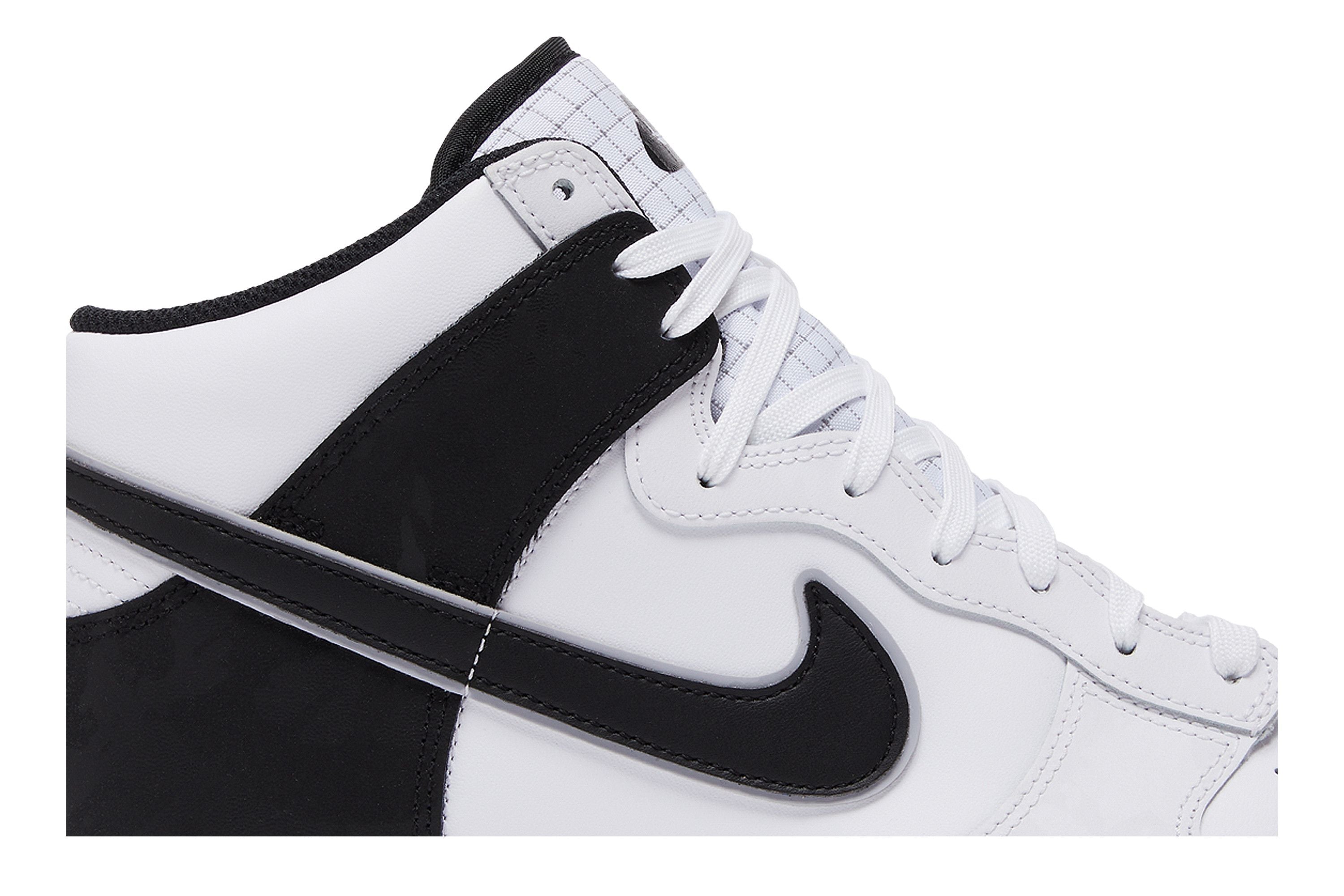 La Dunk High White Black Camo possède une structure en cuir avec une combinaison d'inserts blancs et noirs, avec motif camouflage sur la partie noire et sur le swoosh. Voir toutes les spécifications sur Nike .