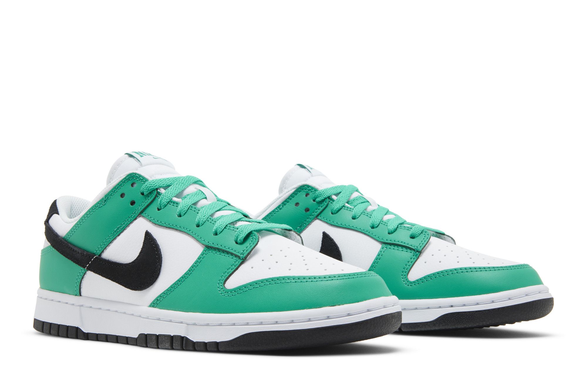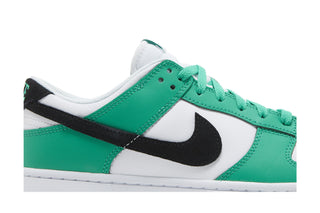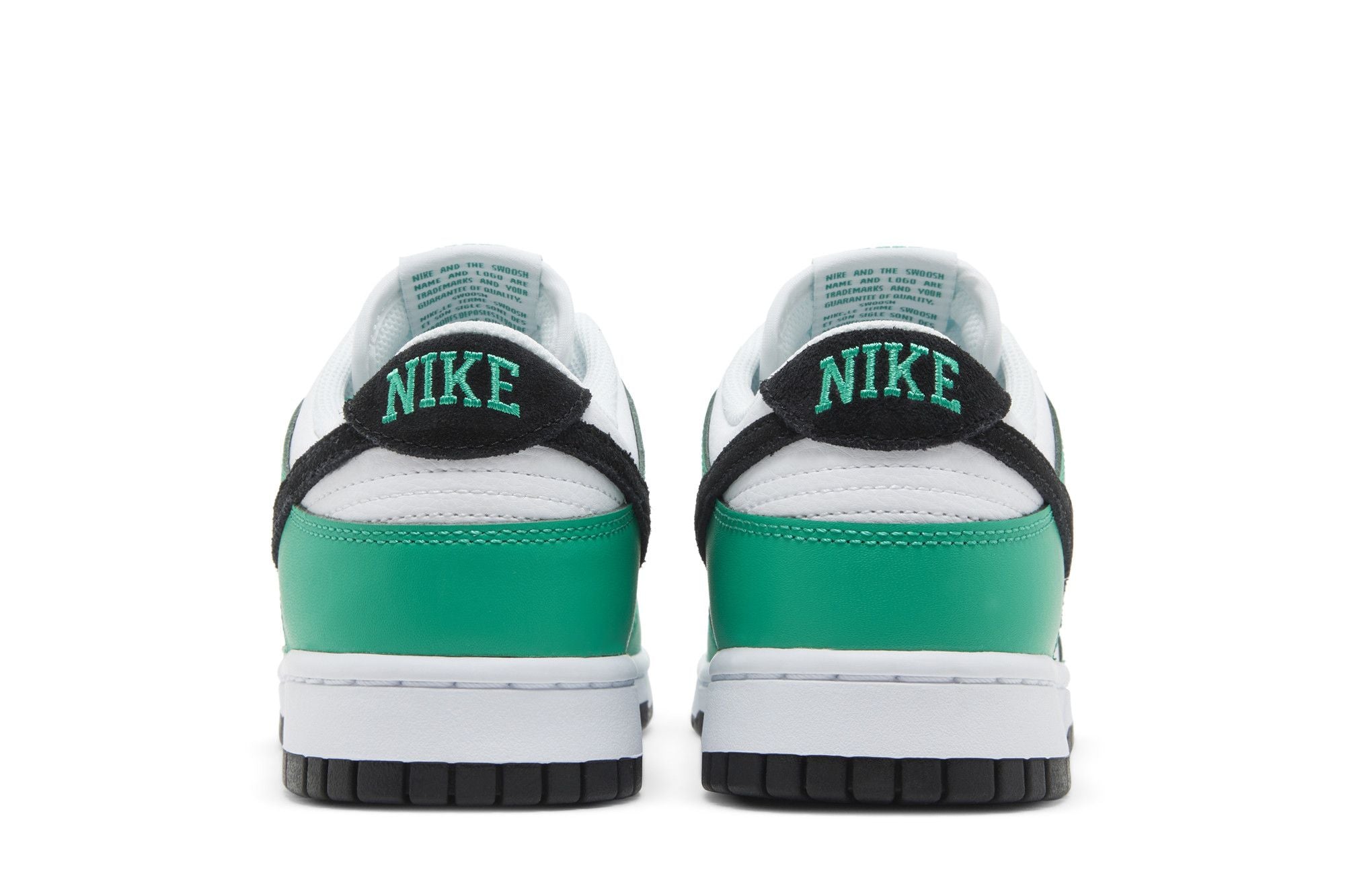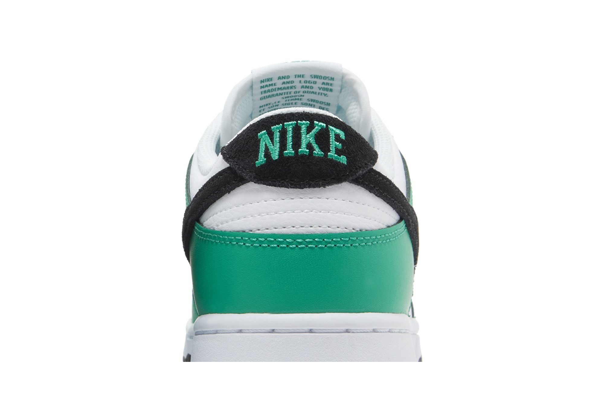 La Nike Dunk Low Celtics présente une tige en cuir blanc, enrichie d'empiècements en cuir vert et d'un Swoosh en daim noir. Un emblème vert brodé sur le talon ajoute une touche rétro, assortie à l'étiquette de la languette. Voir toutes les spécifications sur Nike .