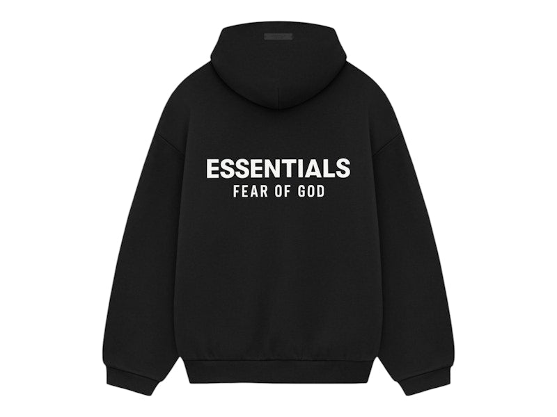 Le sweat à capuche polaire Fear of God Essentials (AH24) noir est un sweat-shirt polyvalent entièrement noir. Il arbore le logo Essentials Fear of God blanc sur le devant de la poitrine, tandis que le même logo est plus grand et positionné au centre du dos. La capuche est ornée d'un patch logo en caoutchouc. Les poignets et l'ourlet élastiques maintiennent la chaleur. Fabriqué en coton pour plus de confort et de chaleur.