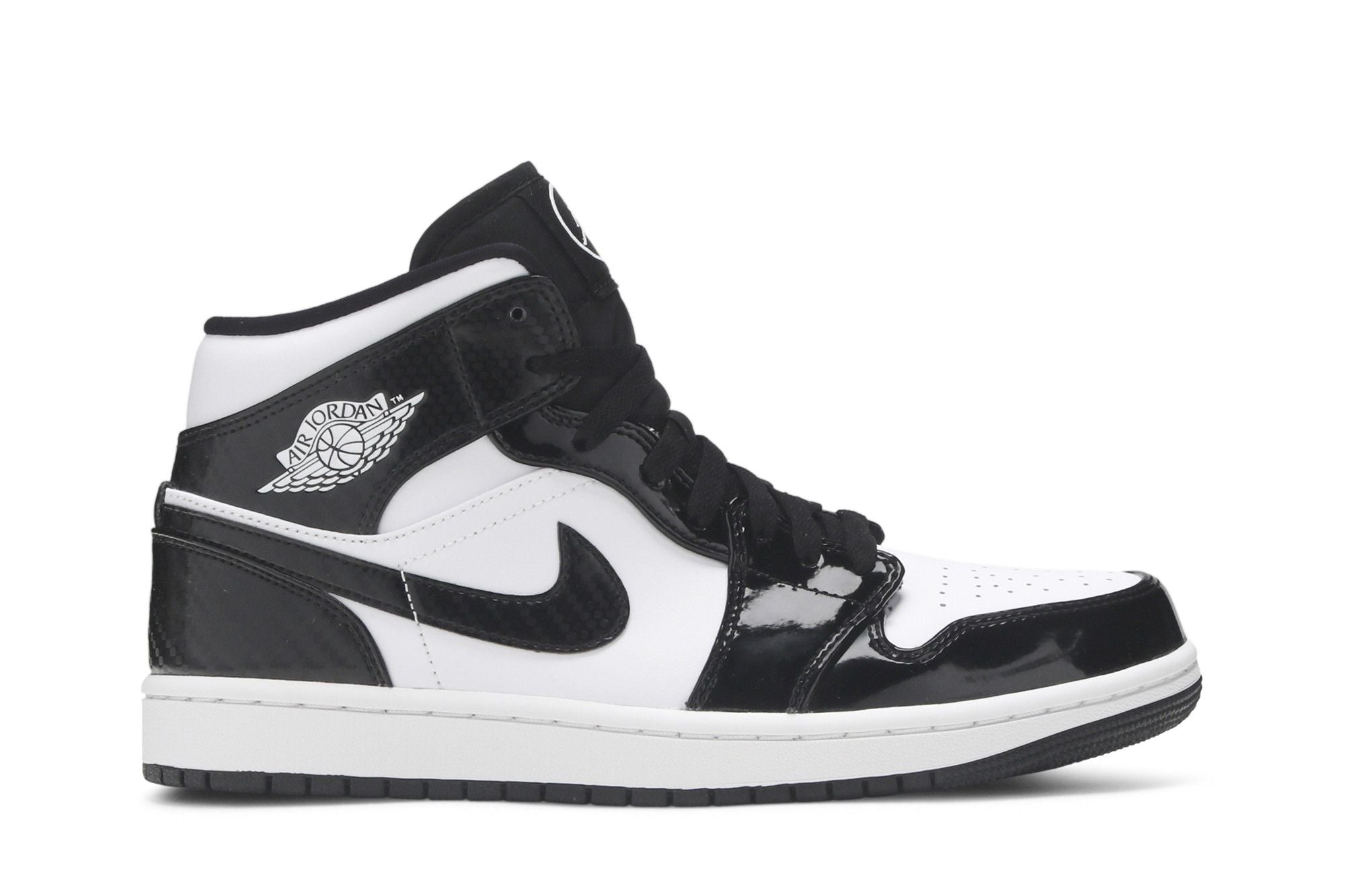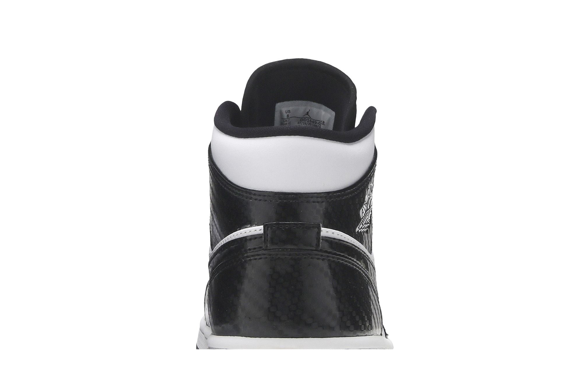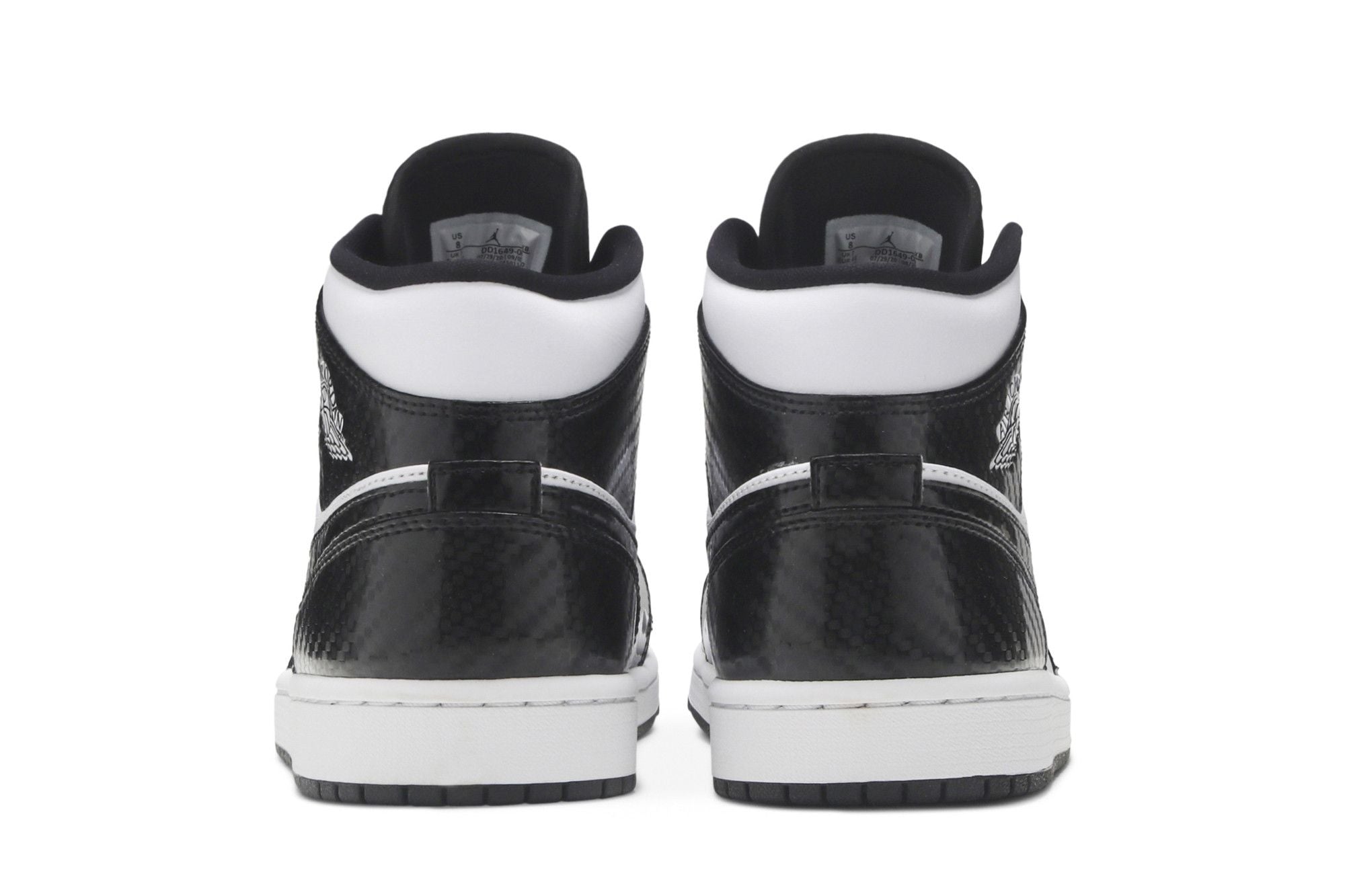 La Jordan 1 Mid Carbon Fiber (2021) présente une tige en cuir blanc, enrichie par des empiècements en cuir verni noir. La couleur continue avec le logo Jordan Ali blanc. Une équerre blanche associée à une aura n'aura pas finalisé la silhouette de Peter Moore. Voir toutes les spécifications sur Nike .