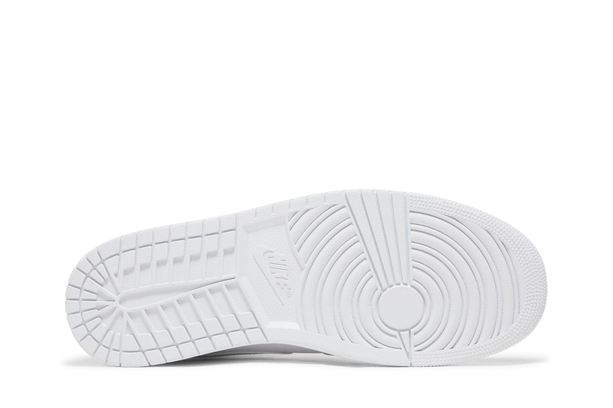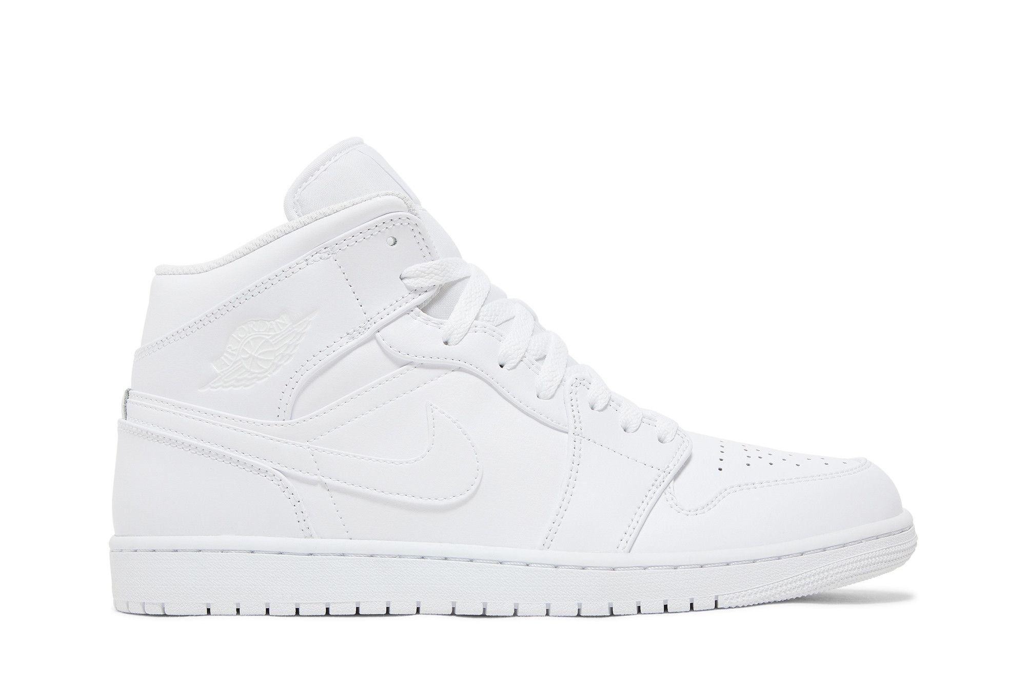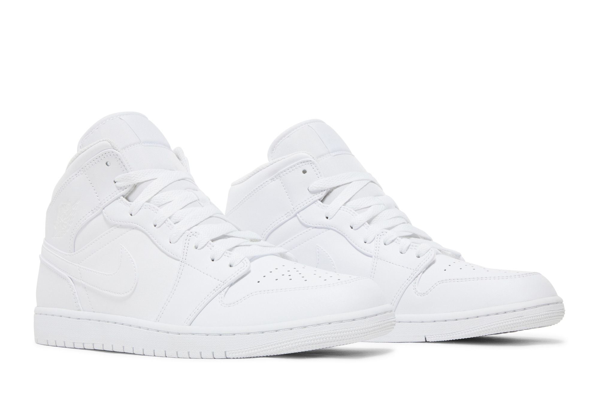 La Air Jordan 1 Mid Triple White possède une tige monochrome et est entièrement réalisée en cuir blanc. On retrouve le branding habituel avec le swoosh sur les côtés et le logo Wings ton sur ton. La semelle est blanche. Voir toutes les spécifications sur Nike .