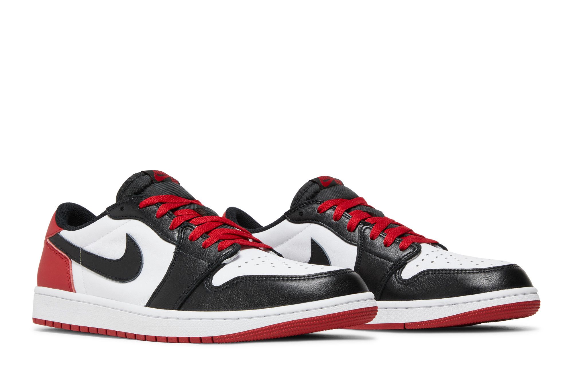 La nouvelle Jordan 1 Retro Low OG Black Toe (2023) rend hommage au design classique, en restant fidèle à la version originale avec sa palette de couleurs blanc, noir et rouge universitaire. La sneaker est confectionnée avec une base en cuir blanc de première qualité, complétée par des empiècements noirs élégants et des Swooshes emblématiques, dégageant un style intemporel. Les talons et la semelle extérieure rouges sont associés à des languettes de marque Nike Air. Voir toutes les spécifications sur Nike .