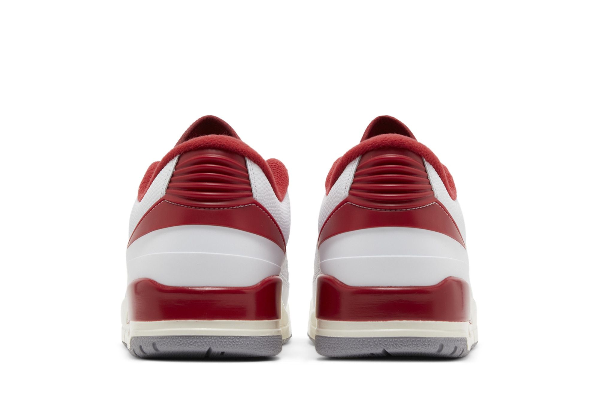 La Jordan 2/3 White Varsity Red est une chaussure de basketball hybride qui associe des éléments de baskets historiques du catalogue Jordan. Confectionnée en cuir blanc avec des empiècements et des renforts en cuir texturé lézard Varsity Red, elle arbore un design qui s'étend jusqu'à la doublure du col. Parmi les autres détails Varsity Red, on retrouve le logo Air Jordan Wings imprimé sur la languette et un empiècement au talon. La languette rembourrée et le garde-boue sont confectionnés en cuir blanc de première qualité. Les perforations forment une ligne qui enveloppe la tige, assurant ainsi une respirabilité optimale.