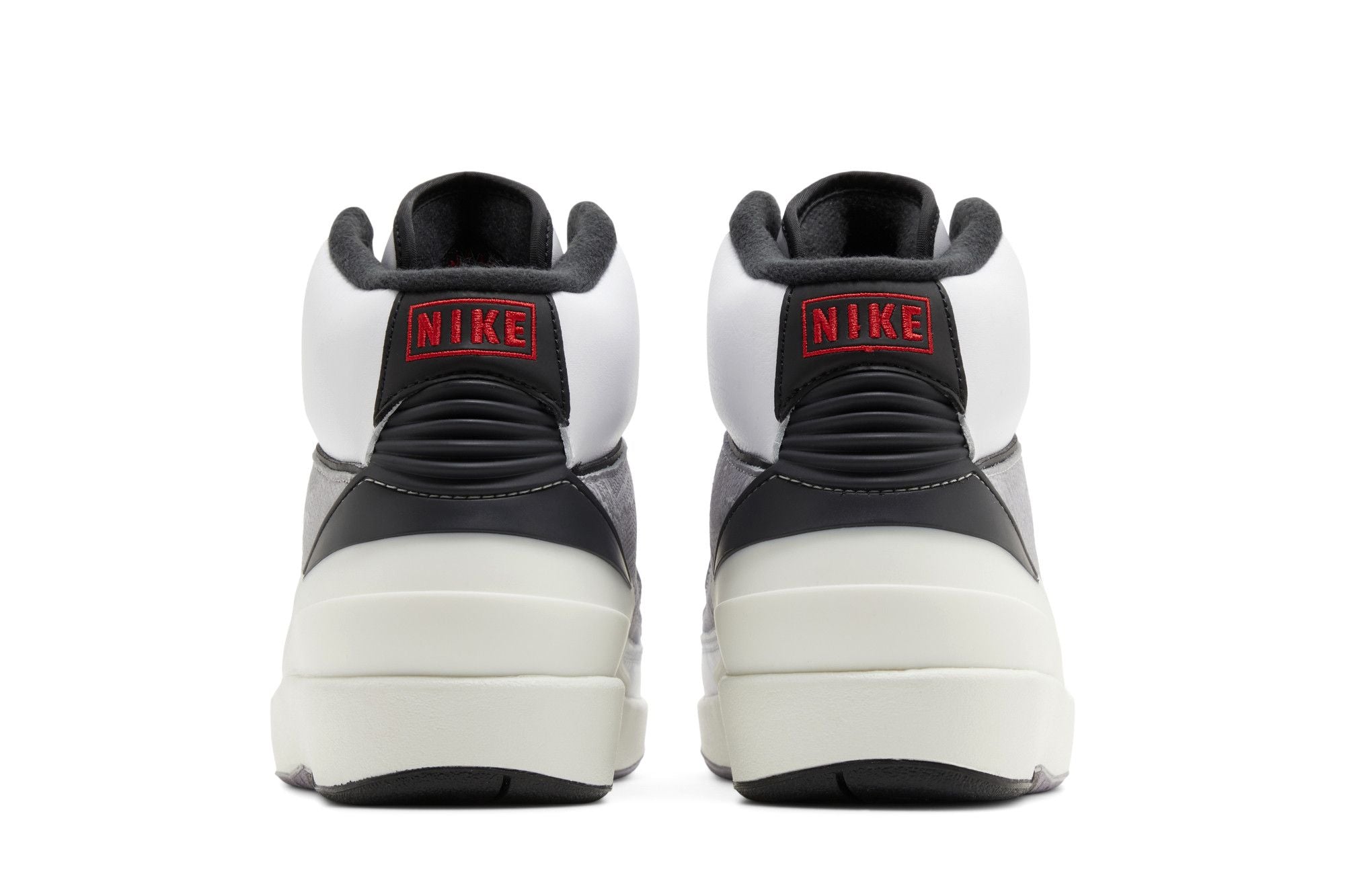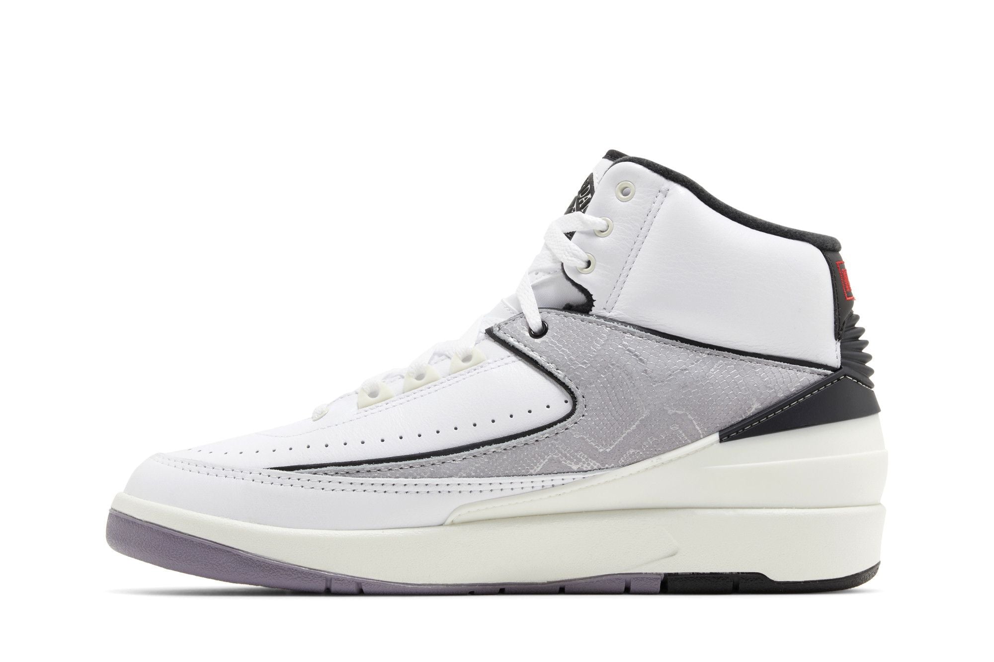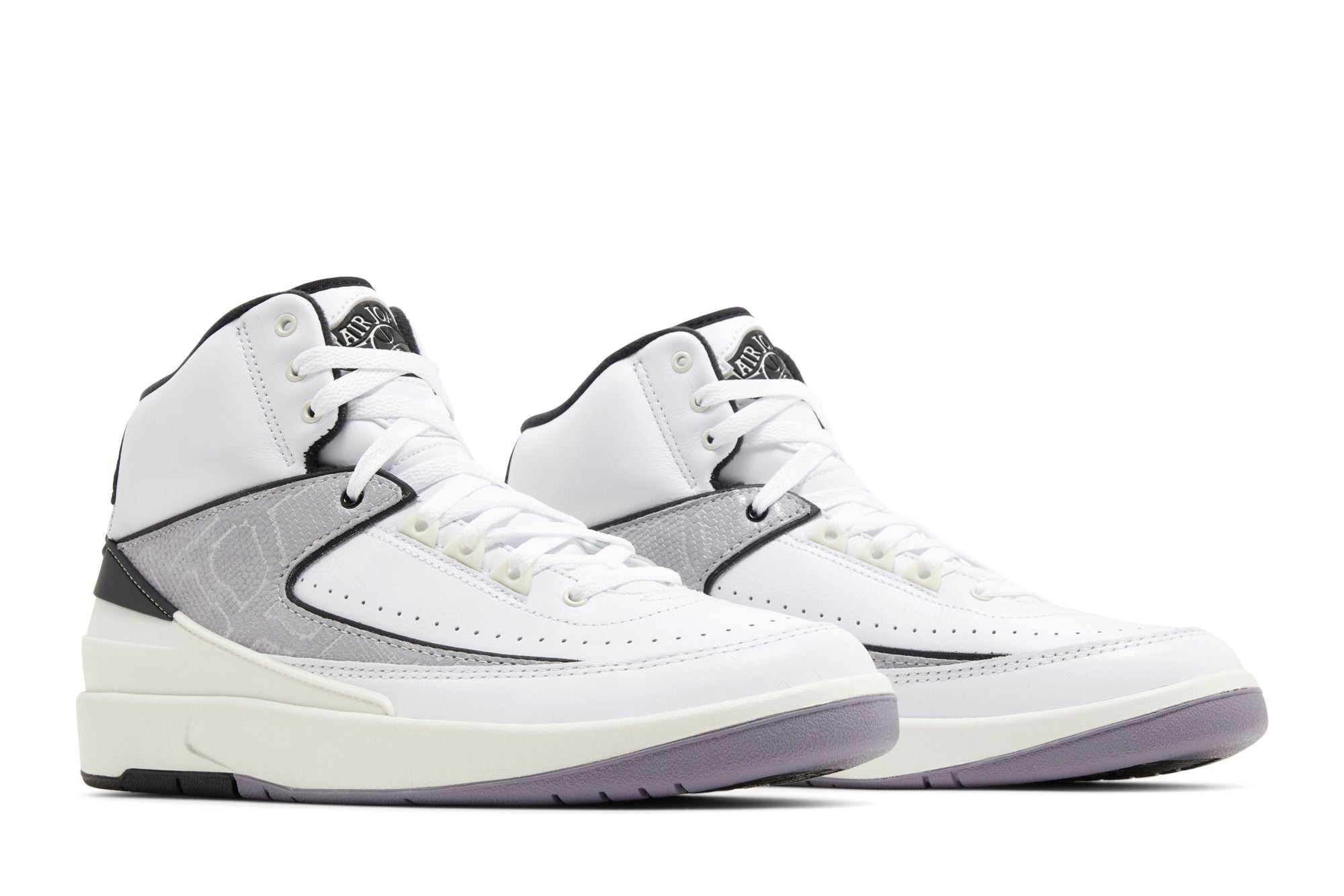La Jordan 2 Retro Python est une silhouette montante de la collection Jordan 2 Retro, dont les couleurs s'inspirent de la Nike Air Python, sortie en 1987. Cette version allie modernité et nostalgie, avec une tige blanche surmontée d'un revêtement gris ciment inspiré du Python. La tige présente des perforations d'air au niveau de la pointe et du médio-pied. Des touches de noir ornent le contrefort renforcé, la doublure intérieure et le logo Jordan Wings sur la languette. Une semelle extérieure noire, Sail et Cement Grey complète le design, avec le logo Nike Fire Red sur le col du talon. Le détail le plus distinctif est le revêtement du médio-pied orné d'un motif python gris.