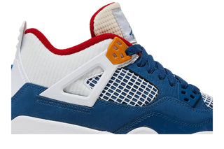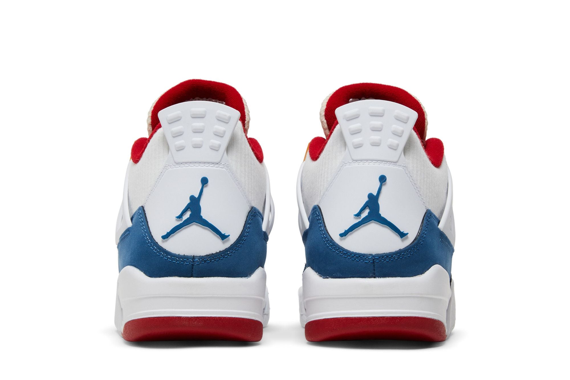 Cette Jordan 4 Retro Messy Room présente une tige construite avec un mélange de matériaux, notamment du cuir verni, du nubuck et un col en velours côtelé. Des accents blancs mettent en valeur le col côtelé, la languette du talon, la maille et une partie des ailes de support, tandis que le rouge est présent sur la doublure et la semelle extérieure en caoutchouc. Voir toutes les spécifications sur Nike .