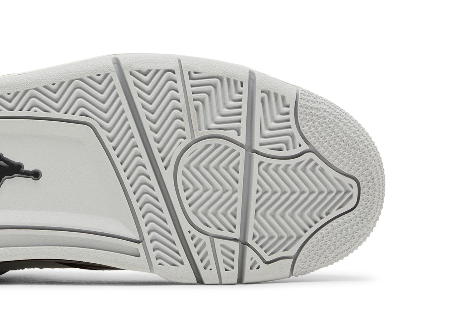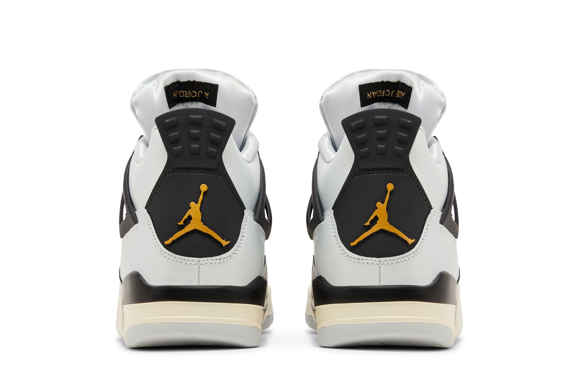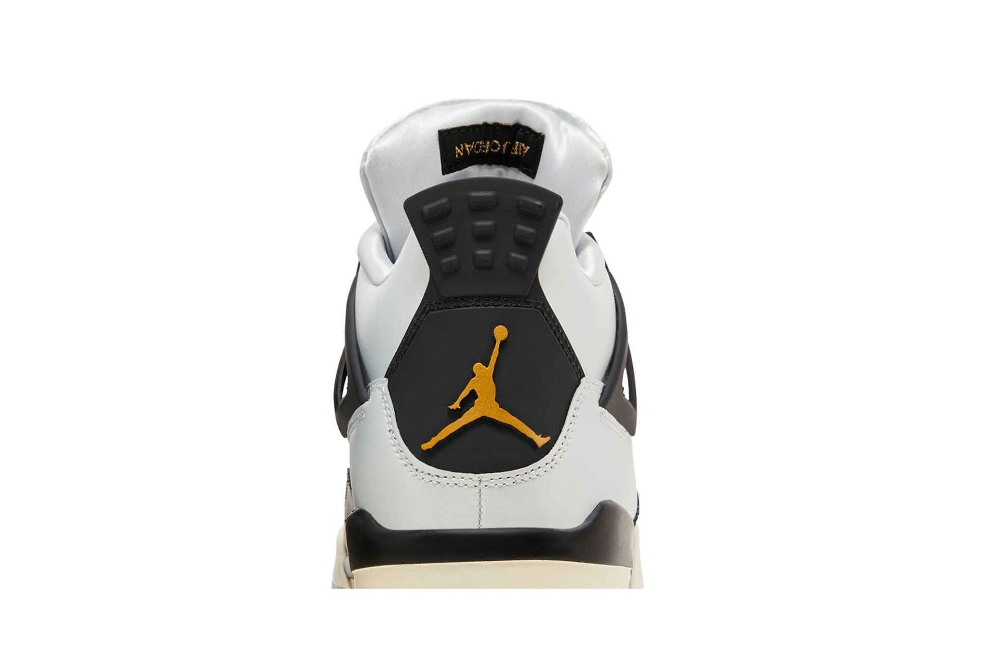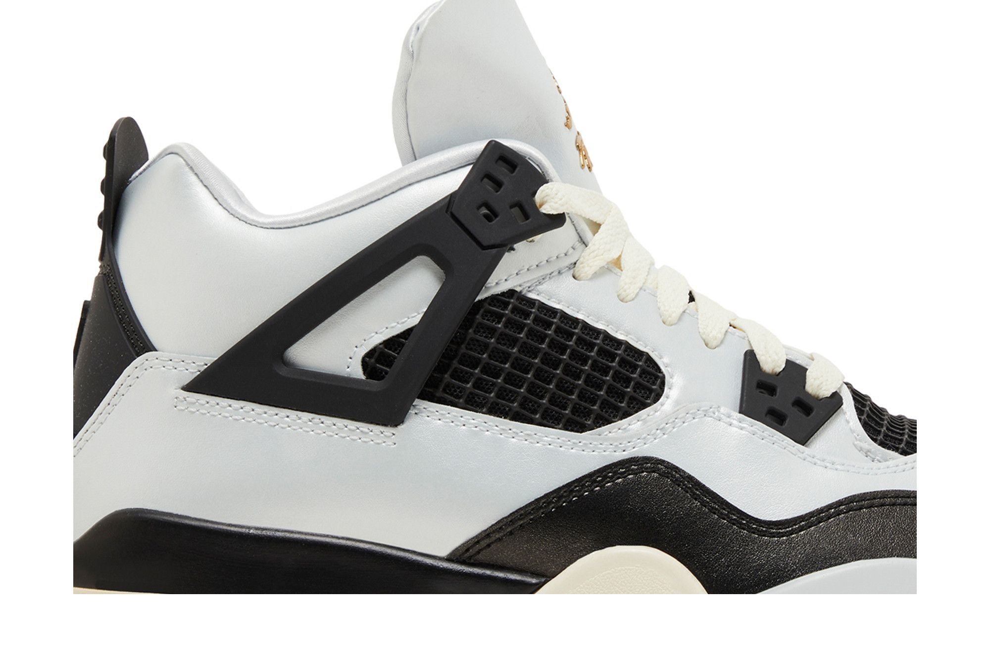Cette Jordan 4 Retro Platinum Gold présente une base en cuir Platinum White qui sert de toile de fond aux accents noirs. Pour donner plus de contraste, les éléments dorés tels que le symbole jumpman sur la langue.